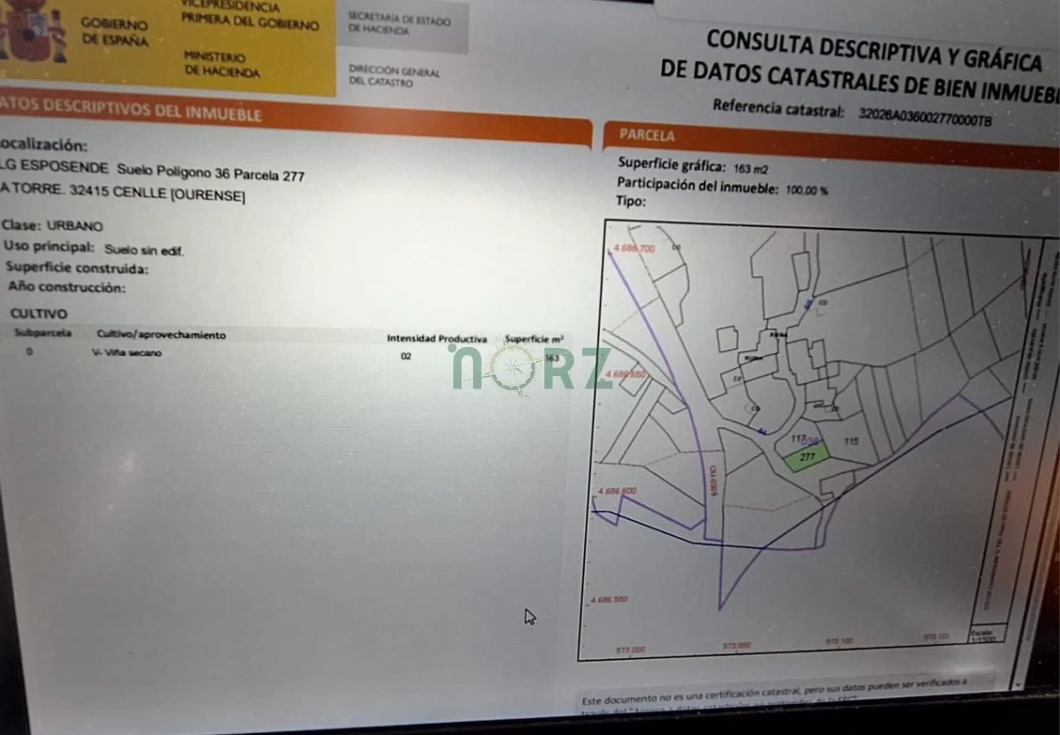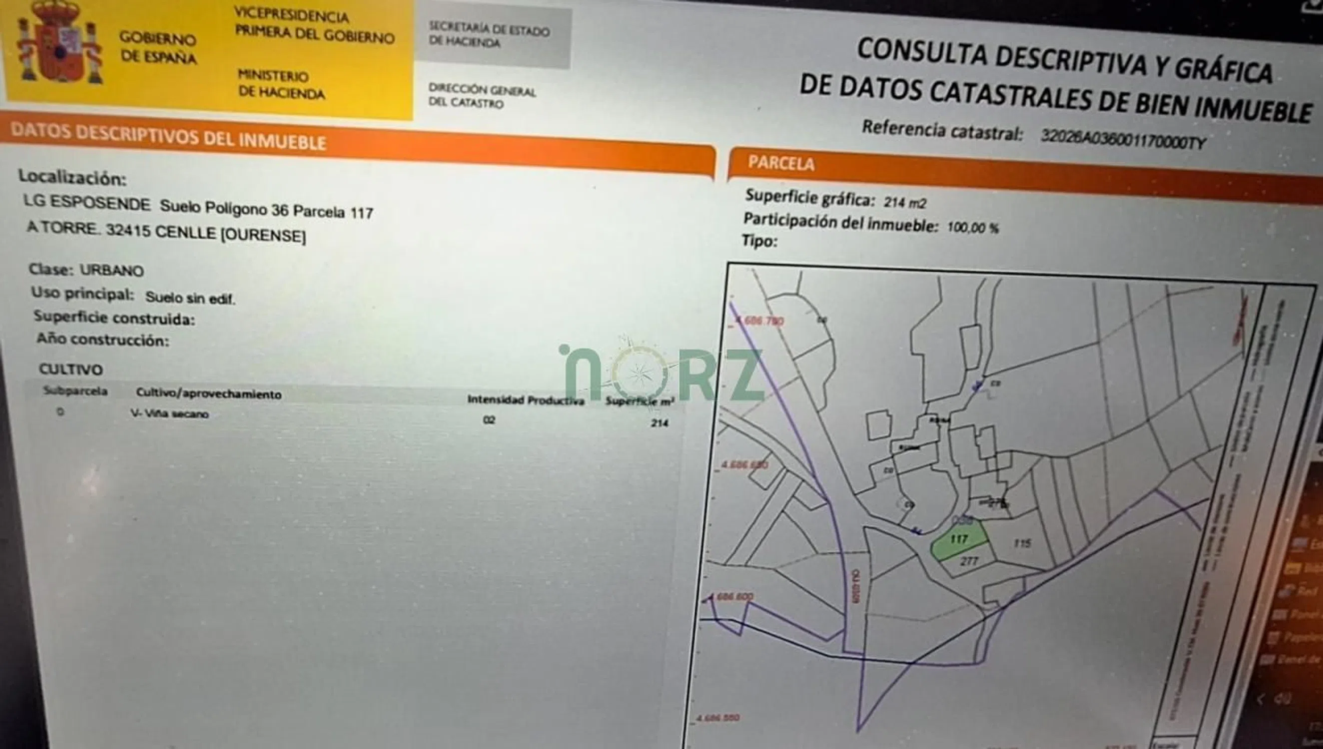 Finca urbanizable hoy con produccion de viñedo son dos fincas urbanizables cerradas por un muro de piedra, con agua cerca. Buen acceso corazon del ribeiro opcion de hacerse con varias parcelas con viñedos urbanizables nuestra oficina está en c/ progreso 123, 1ª planta, oficina 2, ourense (edificio vila rejo), o contáctanos: por teléfono en el o a través de la web síguenos en facebook norz grupo inmobiliario / instagram @norzgrupoinmobiliario.