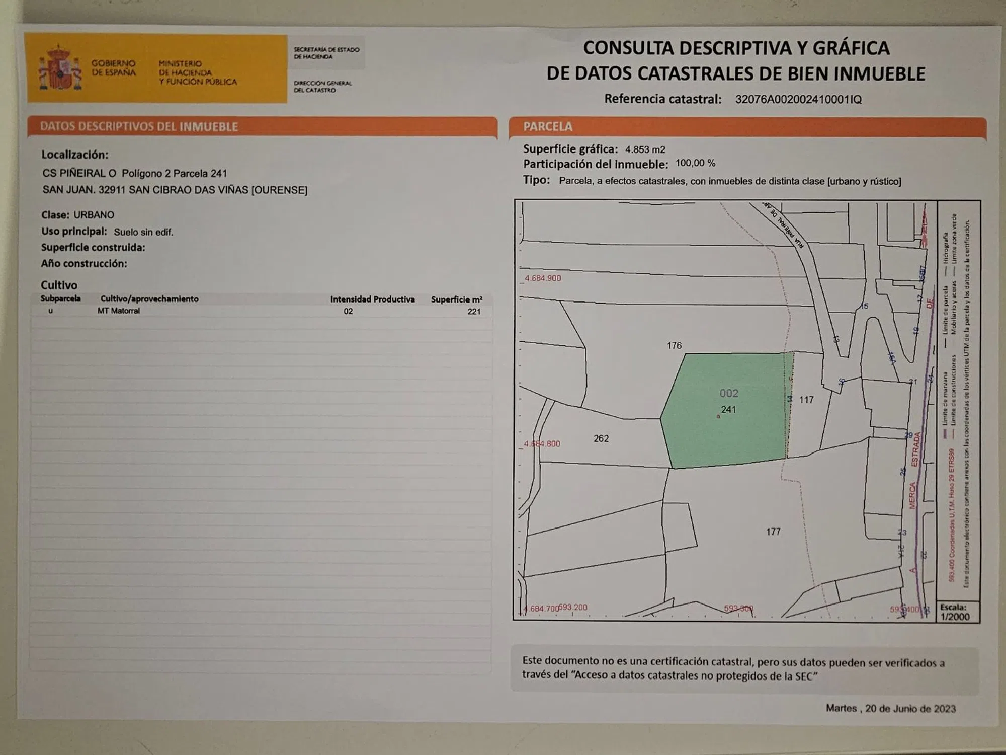 Ourense, San Cibrao das Viñas, Lugar Piñeiral de Abaixo, 28