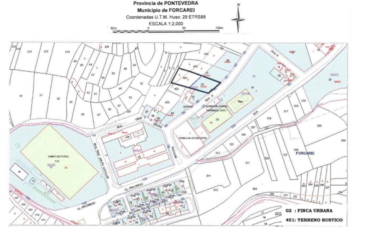 Se vende TERRENO en casco urbano de FORCAREI, con una superficie total de 1.265 m2, de los cuales 581 son de naturaleza URBANA. Dispone de todos los servicios: agua, alcantarillado, recogida de basuras y electricidad. Próximo a centro escolar, centros deportivos municipales, piscina y supermercado.