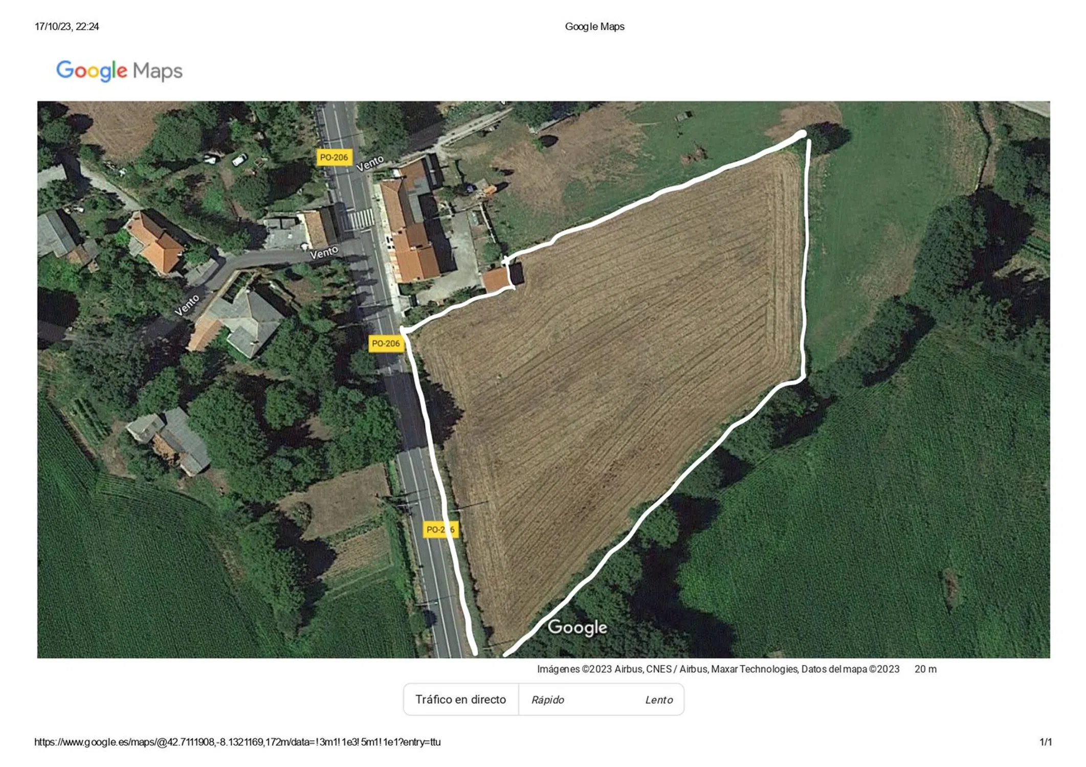 Está situada en O Vento, parroquia de Bermés, a 4 km. de Lalín, provincia de Pontevedra. Finca magníficamente ubicada y susceptible de distintos aprovechamientos para construcción y explotación. La extensión catastral de la finca en total es de 12.951 m2; de ellos, prácticamente UNA HECTÁREA (9.961 m2) es de suelo urbano y dos pequeñas partes en zonas laterales (2.990 m2 en total) son de suelo rústico y labradío. Un frontal da a la carretera PO-206 y dispone de un amplio fondo por su configuración. El tendido de la luz eléctrica pasa por un lateral.