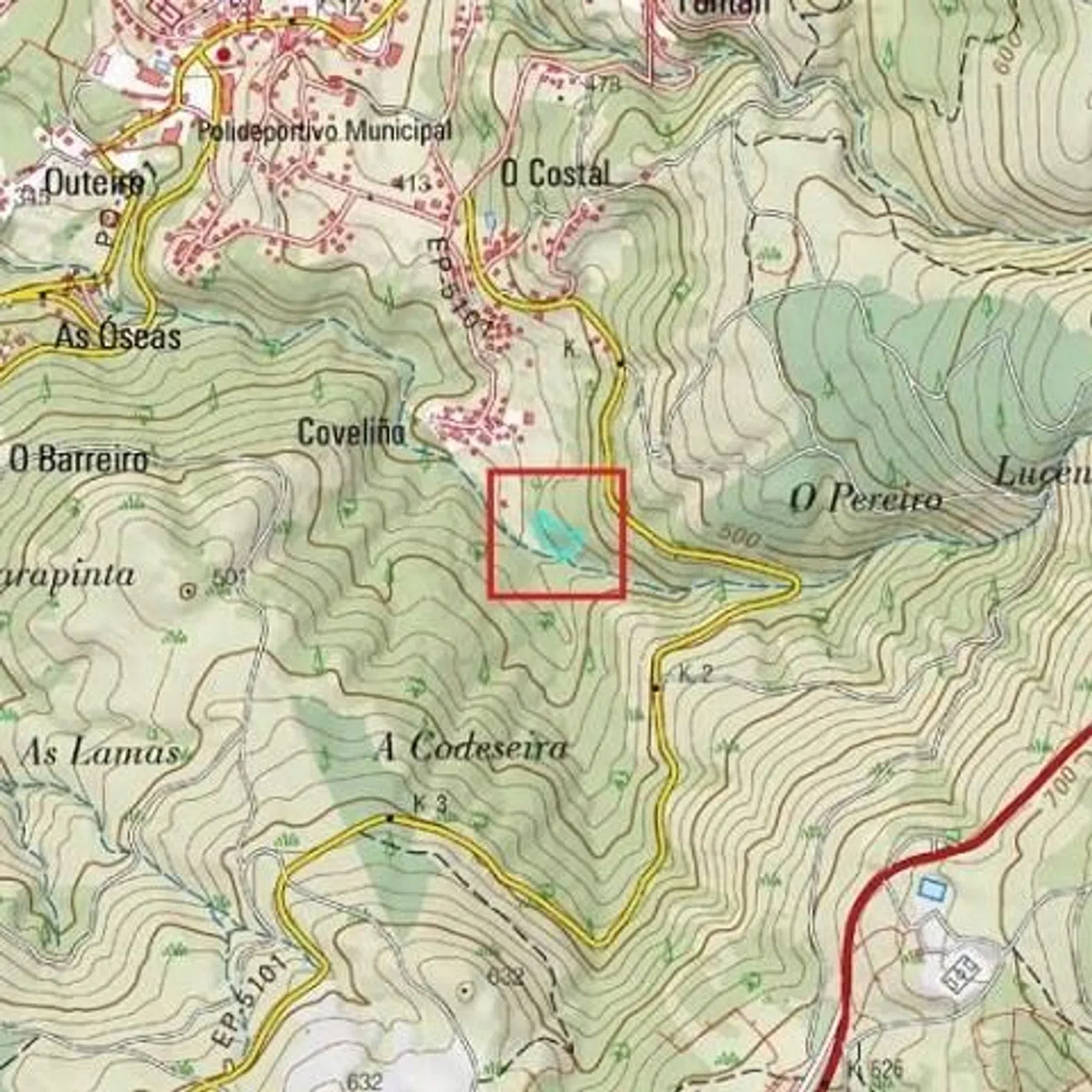100% de la finca registral 8611 sita en Coveliño - Santiago de Covelo, Covelo (Pontevedra) Ref. Catastral: 36013A024004300000WG Superficie registral: 2.937 m2 Superficie catastral: 2.974 m2 Suelo rústico afectado por cauce de agua Algunos de los inmuebles comercializados a través de ABANCA INMOBILIARIA tienen instaladas diversas medidas de seguridad, tales como alarmas, puertas de seguridad, etc? , que no forman parte de la oferta de venta y por lo tanto, no serán objeto de transmisión junto con el inmueble, procediéndose a su retirada, de forma previa a la formalización de la escritura de compraventa.