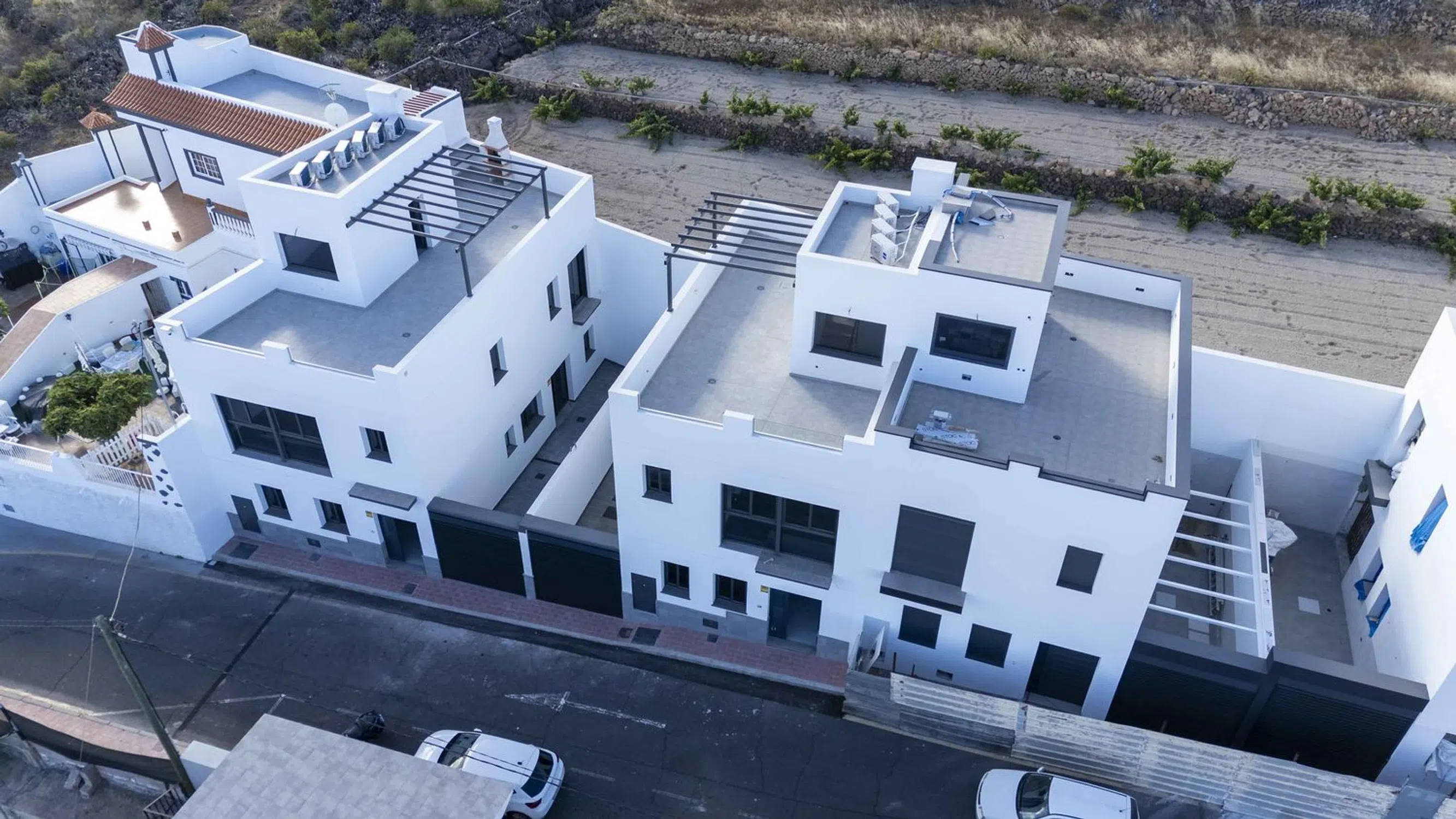 "Viviendas de Obra Nueva con Vistas al Mar y a la Montaña Sur de Tenerife La casa que estabas esperando ya está aquí. Diseño moderno, estancias luminosas, una espectacular azotea privada con vistas abiertas al océano Atlántico y a las montañas. Lo mejor de estas viviendas: Vistas panorámicas al océano y a la montaña desde dormitorio y azotea. Azotea privada transitable, perfecta para crear un chill-out, zona de relax o solárium. Grandes ventanales que inundan la vivienda de luz natural. Materiales de alta calidad y detalles de diseño. Garaje cerrado con puerta automática tipo Hörmann. Vivienda 1 Distribución moderna y funcional: Planta principal con amplio salón-comedor, cocina, espacios de solana y bodega, con la entrada directa desde el aparcamiento. Cocina lista para personalizar (se entrega sin mobiliario, posibilidad de equipamiento completo). 2 baños, uno de ellos con bañera de hidromasaje. Dormitorios amplios, luminosos y con armarios. Azotea privada con vistas despejadas al mar y las montañas. Vivienda 2 Distribución moderna y funcional: Planta principal con amplio salón-comedor, acceso a cocina y jardín. Cocina lista para personalizar (se entrega sin mobiliario, posibilidad de equipamiento completo). 2 baños y un aseo, uno de ellos con bañera de hidromasaje. Dormitorios amplios, luminosos y con armarios. Azotea privada con vistas despejadas al mar y las montañas. Acabados y Equipamiento Premium: Cerramientos de termoarcilla de 25 cm para máxima eficiencia energética. Carpintería de aluminio anodizado y doble acristalamiento. Suelos porcelánicos y escaleras de granito claro. Instalación de aire acondicionado frío/calor. Placa solar para agua caliente sanitaria. Depurador de agua potable. Garaje con puerta automática con acceso directo. El inmueble se vende sin muebles, pero existe la posibilidad de entrega totalmente amueblado y decorado, listo para entrar a vivir. Ubicación y entorno: Ubicado en una zona tranquila y soleada, Residencial Mercedes combina la tranquilidad de un entorno residencial con la cercanía a todos los servicios. Vive rodeado de naturaleza, con paisajes abiertos y el océano como telón de fondo. No pierdas la oportunidad de disfrutar de las mejores vistas, la tranquilidad y el confort en una vivienda de obra nueva.