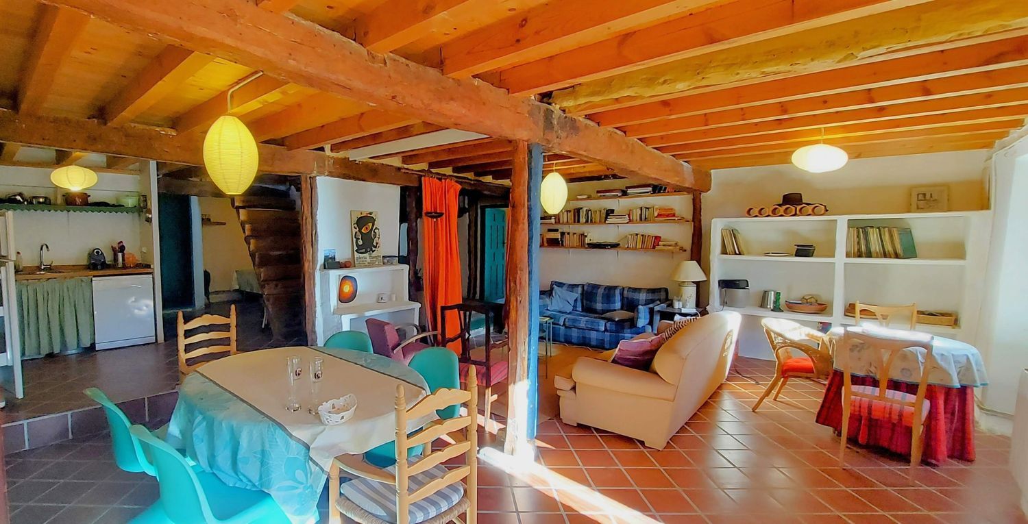 CASA DE PIEDRA REFORMADA, CON JARDÍN Y CON MUCHO ENCANTO. Se ha reformado conservando su estética original, en un equilibrio perfecto entre la actualización de la vivienda con los avances del siglo XXI y la conservación de su esencia de casa segoviana con arquitectura tradicional. Un ejemplo de ello es la gran chimenea de leña, que se ha mantenido toda su morfología, a la vez que se ha adaptado para una moderna estufa de pellets. Se han conservado y restaurado muchos elementos originales, como la viguería de madera, las puertas interiores, algunas ventanas, etc. Gracias a ello, la casa tiene una gran personalidad. El interior es muy acogedor, tiene una gran autenticidad y una belleza muy especial. La distribución se ha optimizado para obtener espacios amplios y aprovechar al máximo la luz natural. En la planta inferior encontramos:- Salón-comedor de gran tamaño, con zona tipo chill out entorno a la antigua chimenea de leña (ahora estufa de pellets)- Cocina dividida en dos zonas y abierta a la zona de comedor- Dos dormitorios, uno de ellos con salida directa al jardín- Baño completo con bañeraEn la planta superior encontramos un espacio único, muy actual, con una zona de salón, una zona de dormitorio y una zona de baño con ducha muy peculiar. Adicionalmente, existen dos cuartos trasteros pequeños, que hacen las veces de armarios empotrados. Los techos son de madera vista en ambas plantas, con la viguería original. El suelo es de gres en la planta inferior y de madera en la superior. La calefacción y el ACS es por caldera de gasóleo, instalada en un cuarto independiente edificado en el jardín. Los muros de piedra de elevado grosor crean un ambiente fresco en verano y fácil de calefactar en invierno. El jardín es muy agradable. Tiene una superficie de 190 m2. Dispone de un porche de 30 m2, que se ha obtenido mediante la rehabilitación de un espacio que antiguamente se destinaba a almacén. Se ha restaurado toda la viguería de madera y mantenido la teja árabe. La valla del jardín es toda de piedra y la puerta de acceso es la antigua puerta carretera, convenientemente restaurada. La casa esta ubicada justo al final del casco urbano, tiene salida directa al campo. Se pueden comenzar rutas en la naturaleza literalmente desde la puerta de casa. La tranquilidad es máxima. El pueblo tiene unas callejuelas pintorescas, con casas de piedra y una iglesia románica. La distancia a Madrid es 130 Km. En el entorno se puede disfrutar de una amplia oferta de actividades para tiempo libre. Es una casa perfecta para segunda residencia o para vivir en un entorno rural con una gran calidad de vida. Tambien es ideal para un alojamiento rural, por sus características, estética y ubicación.No hay muchas casas que reúnan tantas ventajas. ¡VENGA A VISITARLA, LE VA A ENCANTAR!
