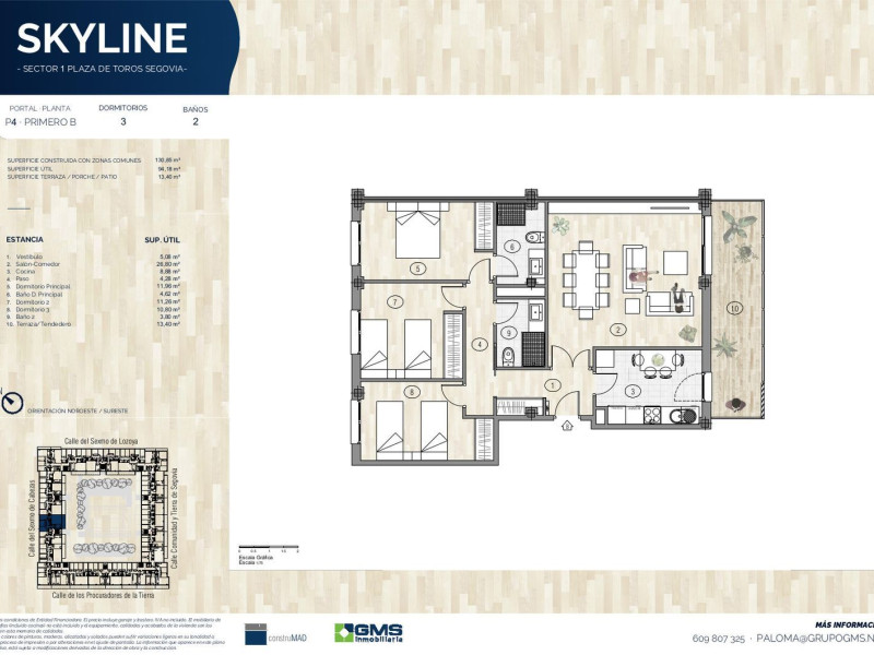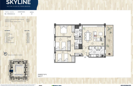 GMS Inmobiliaria, presenta en exclusiva una nueva promoción de viviendas: Skyline Segovia. 50% vendido.Una oportunidad tanto para vivir como para invertir, en la zona con mayor proyección de Segovia y a tan sólo 5 minutos de la estación de Ave Segovia - Guiomar.Skyline Segovia es un conjunto residencial formado por 92 viviendas de 1, 2, 3 y 4 dormitorios, todas ellas con amplias terrazas. Las viviendas incluyen trastero y plaza de garaje en el precio, pudiendo comprar una segunda plaza de garaje por 19.000€ + IVA.Skyline, es un proyecto diferente, por su diseño contemporáneo en el que se ha cuidado el más mínimo detalle y con las más altas calidades.En una ubicación privilegiada, la promoción tiene unas amplias zonas comunes (más de 2.000m²) ofreciendo todo lo que necesitas para el disfrute con los tuyos: piscina, gimnasio, club social, pista de pádel, zonas ajardinadas y área de juegos infantiles.Teniendo la máxima calificación energética, la promoción cuenta con un moderno y eficiente sistema de climatización mediante aerotermia con suelo radiante (frío/calor).Rodeada de todos los servicios: biblioteca, centro cultural, colegio, instituto, ambulatorio, supermercado, farmacia… es una zona única por su proximidad al centro de la ciudad y a la salida hacia Madrid.Licencia de obras solicitada. Entregas a cuenta avaladas.Con la garantía de Construmad. Promotora y constructora.Ponte en contacto con nosotros y te informaremos sin compromiso de este magnífico proyecto residencial donde crear tu nuevo hogar.*Todas las imágenes infográficas carecen de carácter contractual y podrán variar en función de las exigencias técnicas.