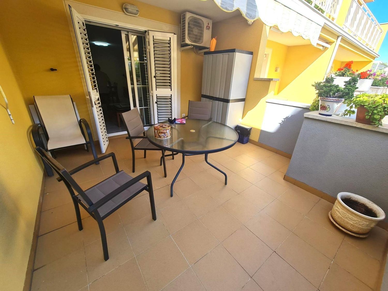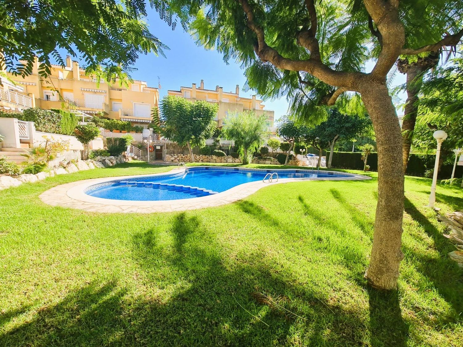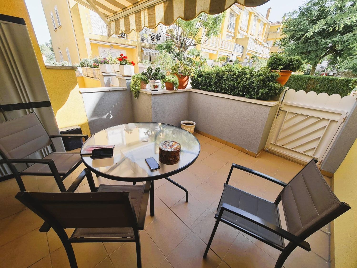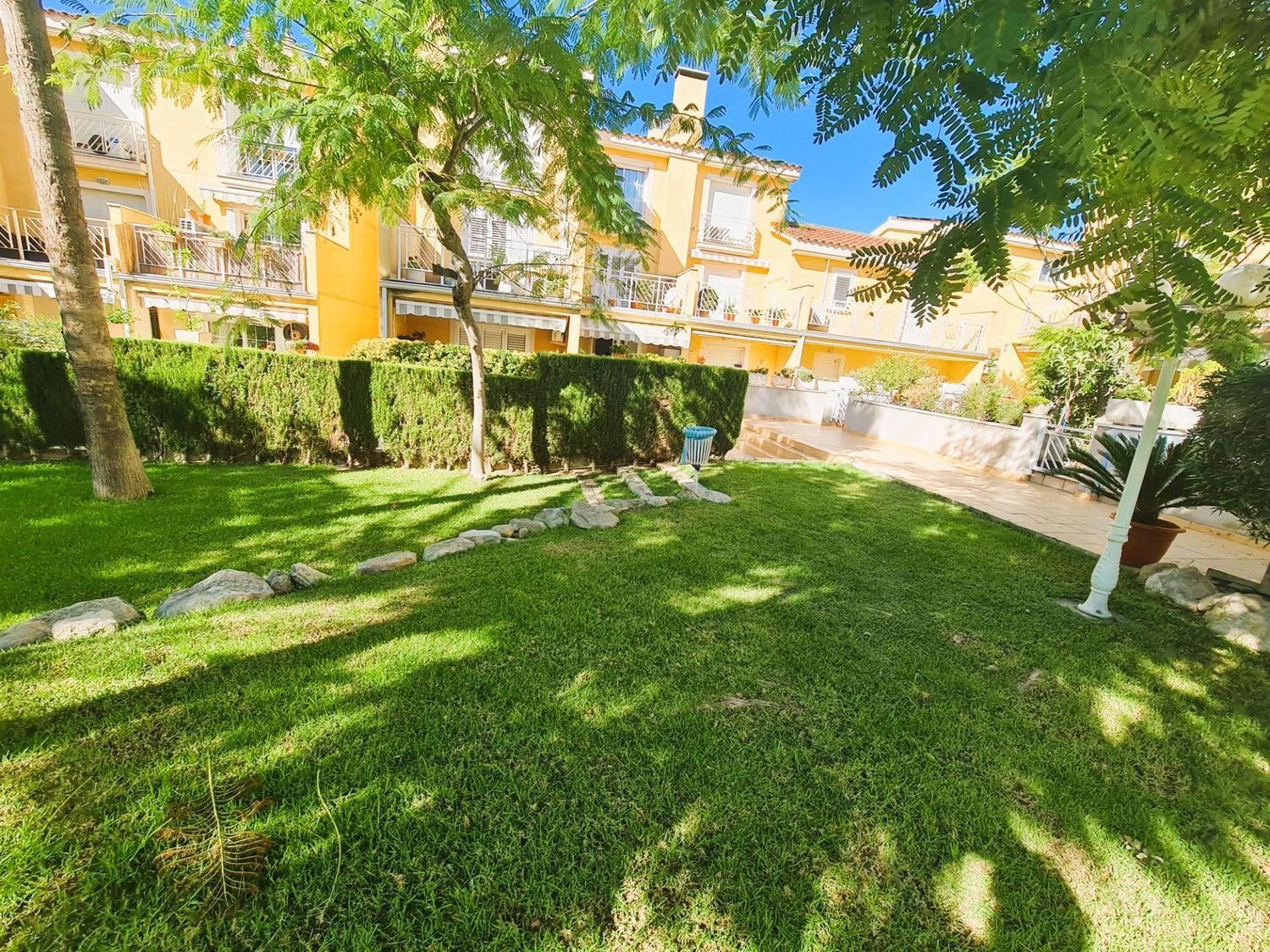 Espectacular chalet adosado en Altafulla. Consta de tres plantas; en la primera planta podemos encontrar una cocina muy amplia, aseo y un gran comedor con salida a una terraza que da a la maravillosa zona comunitaria con piscina.En la segunda planta, encontramos un baño completo con plato de ducha y dos habitaciones dobles, una con salida a una bonita terraza y en la planta superior dos habitaciones más, dobles con un baño completo con bañera. Tiene calefacción, aire acondicionado en el comedor, mosquiteras en todas las habitaciones, toldo en la terraza principal y seis placas solares para toda la vivienda. Amplio garaje para tres coches y un gran trastero contiguo.