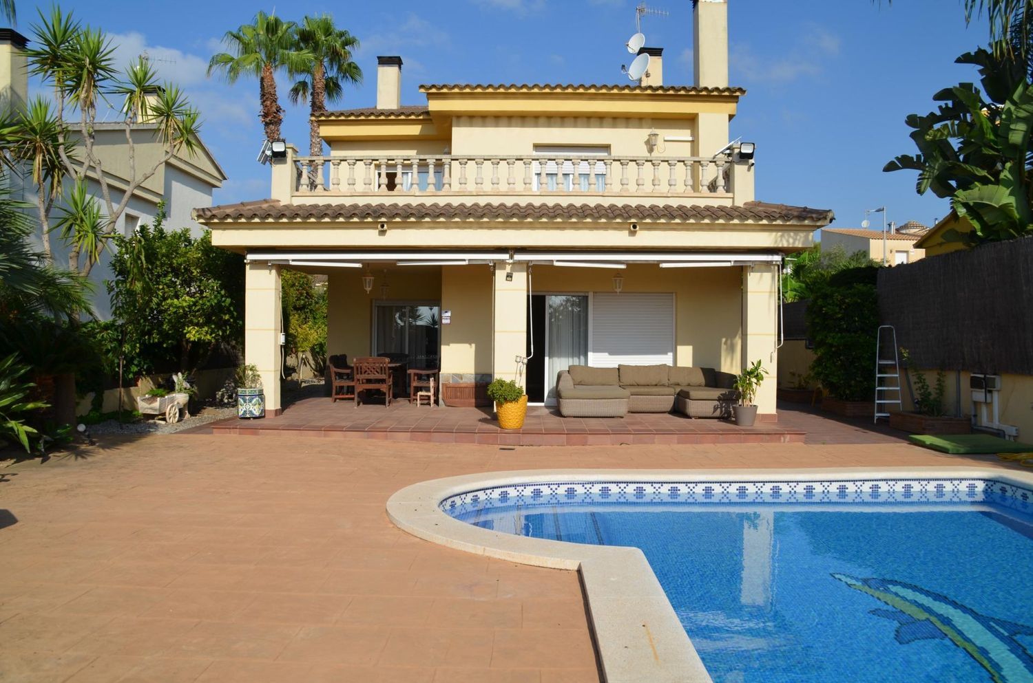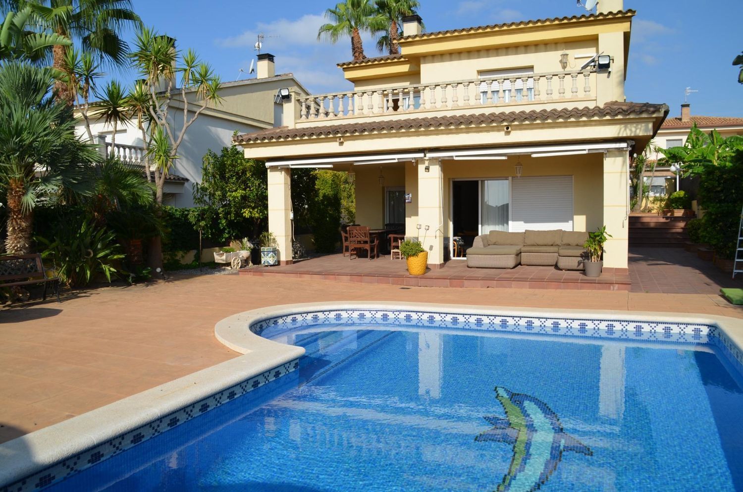 Amplia casa situada en la prestigiosa urbanización de Mas Mel en la localidad de Calafell, con una superficie de 234 m2 construidos y 492 m2 de parcela, se encuentra distribuida en 4 niveles.Al entrar en la vivienda encontramos un amplio recibidor que conduce al garaje para 2 vehículos y 1 baño completo, si bajamos 4 peldaños nos situamos en un amplio salón comedor con chimenea y acceso a la terraza y zona de piscina con barbacoa, cocina totalmente equipada office.En la primera planta nos encontramos un pequeño recibidor que conduce a 2 habitaciones dobles (1 suitte con armarios empotrados) y acceso a una terraza con vistas a la maravillosa piscina, si subimos 4 peldaños desde este mismo nivel de planta encontramos 2 habitaciones dobles con salida a una terraza y 1 baño completo.La vivienda la encontramos equipada con calefacción, ventanas de aluminio blanco climalit, carpintería interior de sapely, suelos de gres.