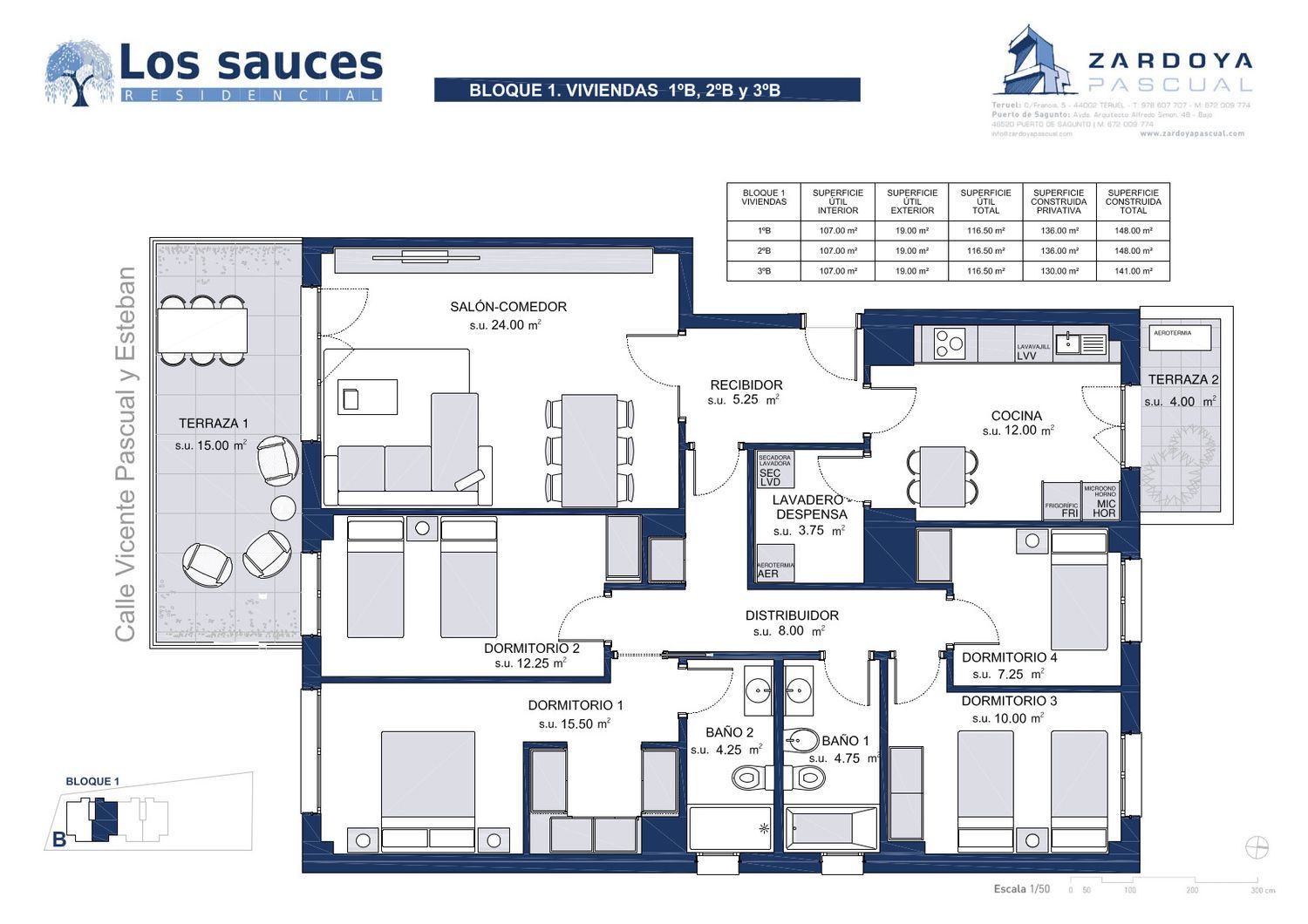 Nueva promoción de viviendas en la zona Ensanche de Teruel, “RESIDENCIAL LOS SAUCES”Ubicado en la calle Vicente Pascual y Esteban de Teruel, LOS SAUCES es un residencial formado por dieciséis viviendas con piscina, el reducido número de viviendas y su exclusiva ubicación en una de las zonas más tranquilas del ensanche, confiere a este residencial un carácter privado e íntimo.Todas las viviendas están orientadas al sur por lo que disponen de sol directo durante todo el día y ventilación cruzada.Destacan como en todas nuestras construcciones la calidad de los materiales y los aislamientos utilizados que junto con el sistema de calefacción por Aerotermia le confieren la calificación energética “A”.Disponemos de viviendas de 4 habitaciones en planta baja, primera, segunda y tercera.El Residencial Los Sauces se encuentra próximo a:•Centros educativos cercanos, colegio La Salle, CEIP La Fuenfresca, IES Segundo de Chomón.•Servicios comerciales, encontrando en las inmediaciones supermercados como Mercadona o Aldi.•Centros deportivos, a escasos 400 metros del Campo de fútbol municipal Pinilla y la piscina climatizada.•Centros sanitarios, situado a 200 metros del Centro de Salud del Ensanche.•Áreas verdes.