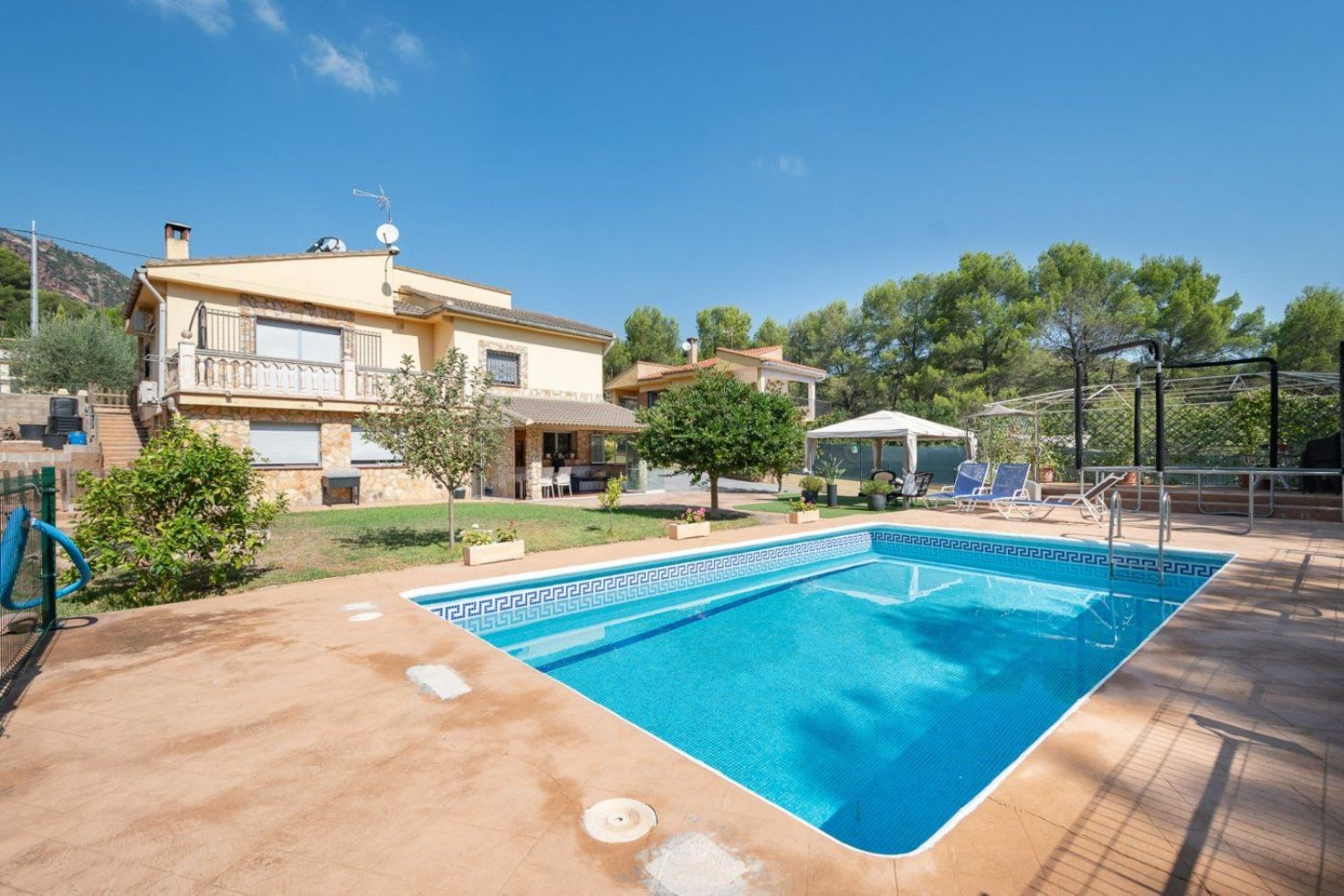 Ponemos a su disposición este maravilloso chalet en la bonita y tranquila población de Albalat Dels Tarongers a 25 minutos da la capital. Su ubicación es excelente al estar al lado de los servicios que necesitas para tu día a día, centros médicos, supermercados, comercios, autobuses y un gran polideportivo con piscina para disfrutar de los días de verano. La vivienda se distribuye en dos plantas, en la planta baja tenemos un gran salón comedor, baño completo, dos habitaciones dobles y una habitación simple además de una cocina completa. En la parte superior nos encontramos con otras dos habitaciones dobles, una habitación simple y otro baño completo. Cocina completa y un hermoso salón comedor desde el cual se sale a una terraza con unas vistas impresionantes. En el jardín encontramos una hermosa piscina junto a un increíble sector donde disfrutar las tardes Consta de amplio lugar para aparcar varios vehículos. La propiedad dispone de un extenso terreno plantado con pinos para disfrutar la naturaleza. Sin duda alguna es muy buena elección de compra. Si usted esta interesado en esta propiedad no dude en ponerse en contacto con nosotros. En el precio del inmueble no están incluidos los gastos de compraventa ni los honorarios de la agencia. El mobiliario que aparece en las fotos no esta incluido en el precio.