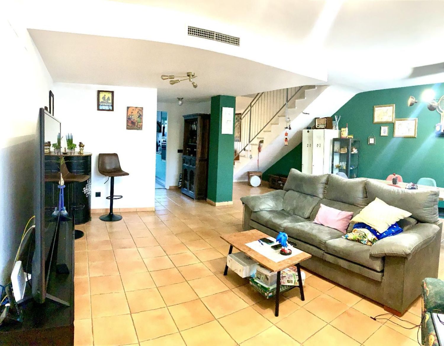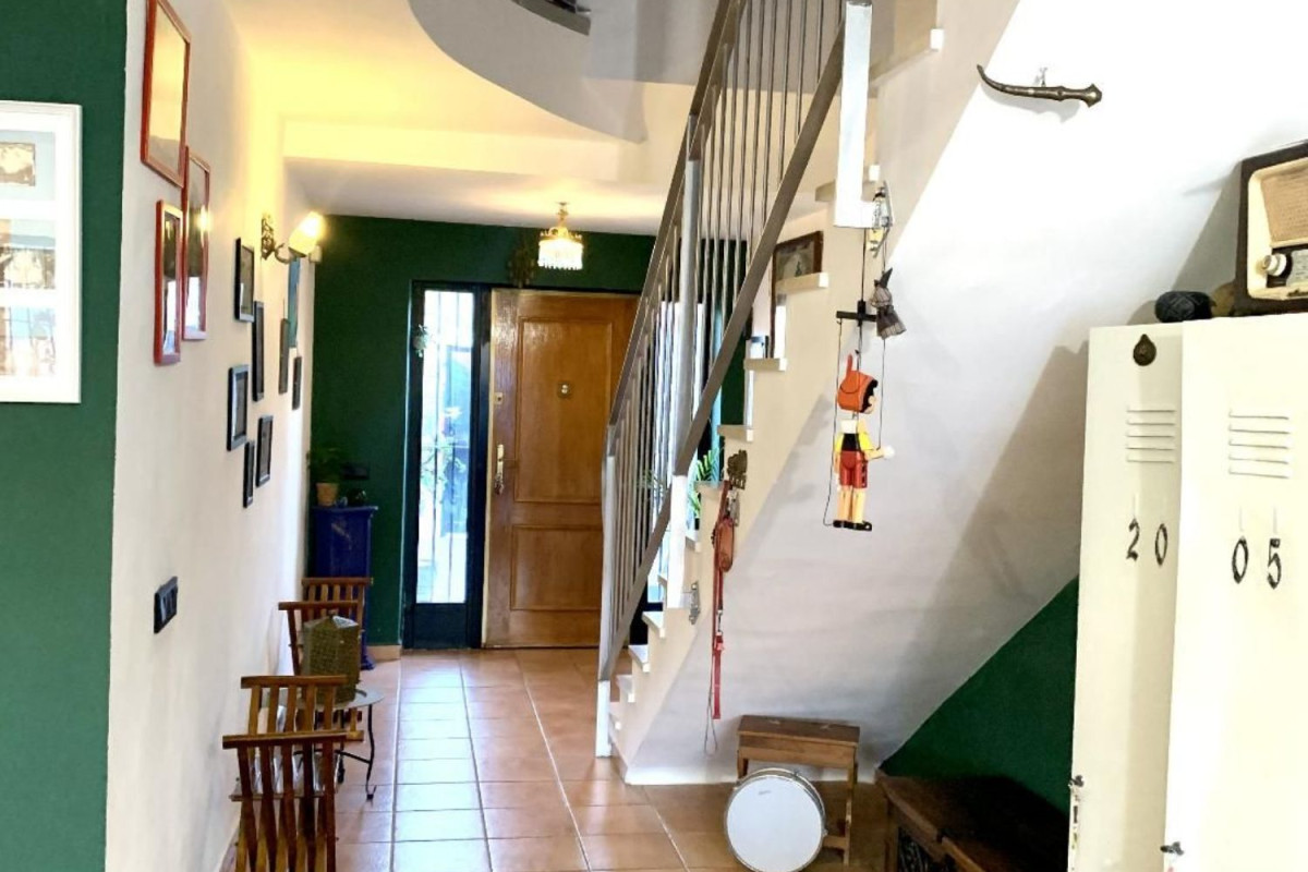 venta chalet de dos alturas con garaje sobre una parcela de 245 m² y construidos 190 m². Desde la entrada vemos el salón amplio con la salida la terraza con barbacoa. Cocina comunica con el salón. Recién reformada con lavandería. Planta baja dispone de un baño con plato de ducha. Pasando el salón entramos al dormitorio. En primera planta 3 dormitorios con armarios empotrados y 1 baño independiente reformado. Pequeño vestidor en el dormitorio principal. La cuarta habitación sin puerta con el techo de madera ( cerramiento de la terraza dada a la habitación). Todas las puertas sustituidas por nuevas puertas de color blanco. Aire acondicionado de frío y calor. Descalcificador. Zona con parque. Metro a 5 min a pie. Mercadona a 3 min. con coche.