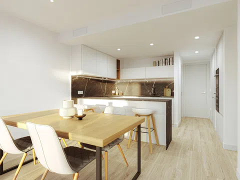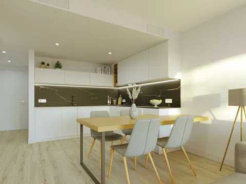 De keuken is volledig uitgerust en voorzien van moderne panelen, terwijl de inbouwkasten volledig zijn afgewerkt. Overal in de woning is LED-verlichting geïnstalleerd voor hogere energie-efficiëntie, en een airconditioningsysteem met koude/warmtekanalen in alle ruimtes zorgt voor maximaal comfort. Met een hoog-efficiënte energieontwerp garandeert het gebouw een comfortabele en duurzame woonomgeving.