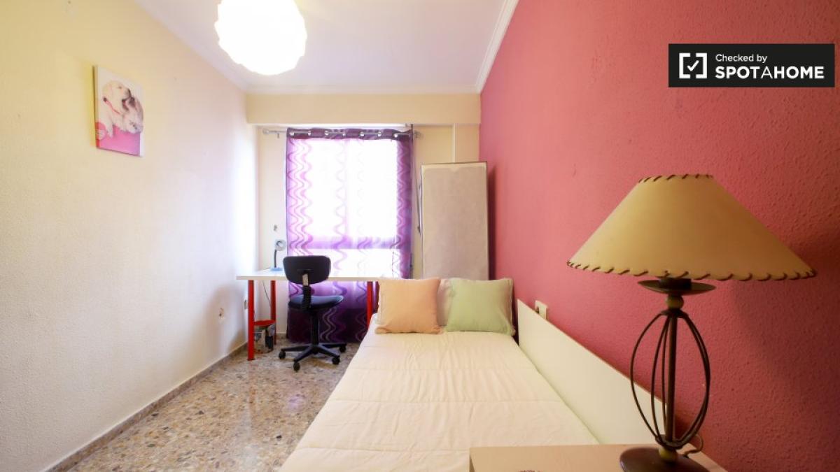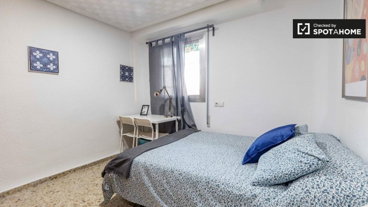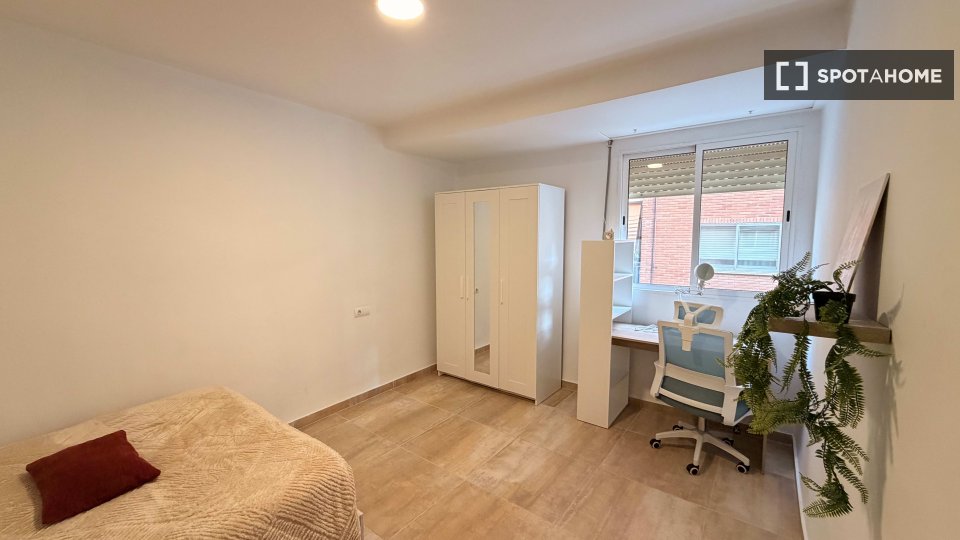 Esta habitación completamente amueblada en un piso compartido de 6 habitaciones se alquila en Torrent, Valencia. El piso cuenta con cocina equipada y balcón o terraza. Es ideal para profesionales y estudiantes, y se admiten parejas. Spotahome ha verificado su estado de alquiler, lo que garantiza un proceso de alquiler verificado.