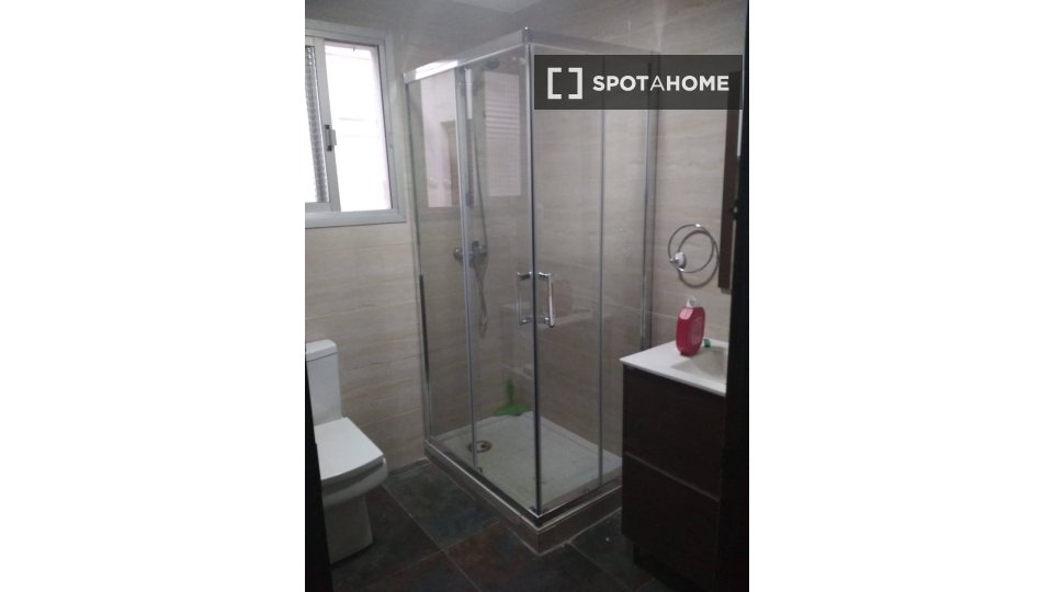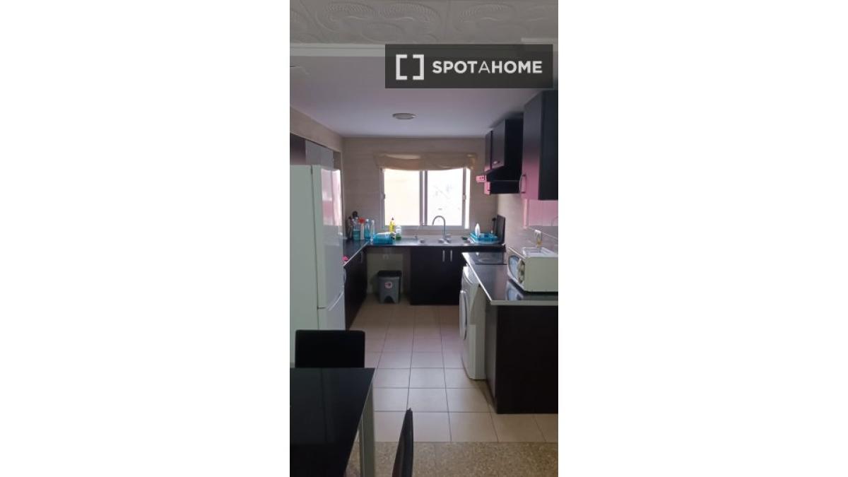 Descubra una cómoda habitación en un apartamento compartido de 5 habitaciones en Moncada. El apartamento está amueblado y cuenta con comodidades esenciales como horno, lavadora y cocina equipada. Hay aire acondicionado en cada unidad. Para su comodidad, incluye wifi.