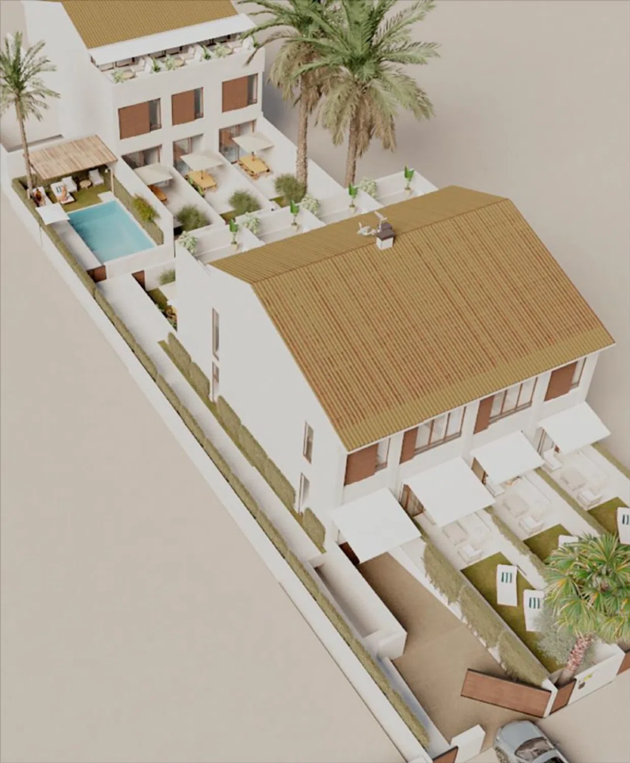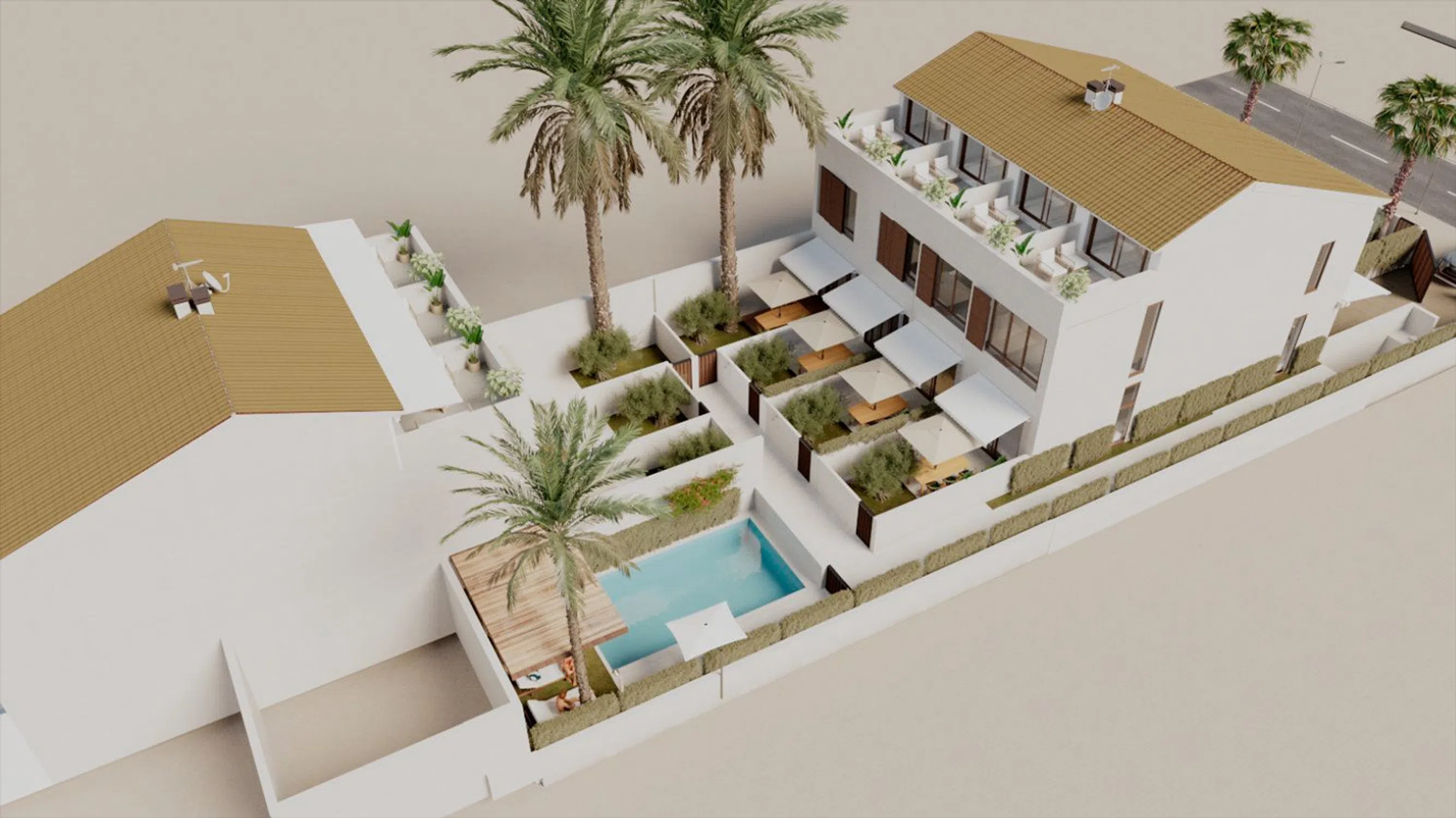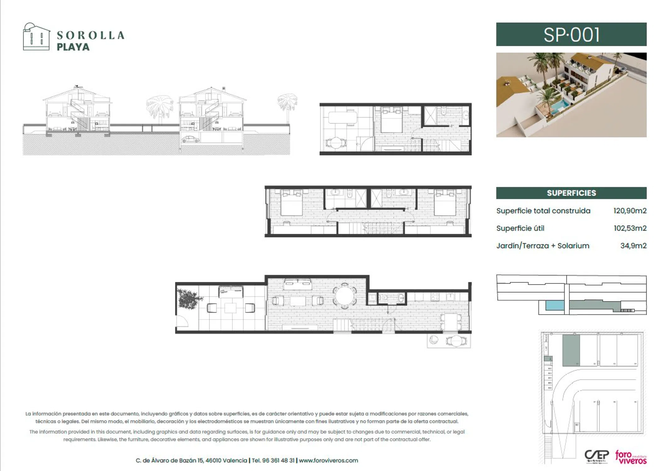 Sorolla Playa se compone de 7 exclusivas viviendas, en la playa de la Malvarrosa, diseñadas para proporcionar confort y distinción a sus propietarios. Cuentan con 3 dormitorios, 3 baños, un aseo, terraza, jardín y solárium. Dispone de instalaciones premium: garaje subterráneo con preinstalación de cargadores eléctricos, parking para bicicletas, zonas comunes y piscina. Sorolla Playa es un conjunto residencial de alta calidad con estética vanguardista y elegante. Sorolla Playa se encuentra en la conocida Playa de la Malvarrosa, una ubicación privilegiada que combina la tranquilidad del mar con la cercanía a todo lo esencial. Próxima a ella se encuentran la Playa de la Patacona, un lugar perfecto para pasear o saborear la gastronomía local; el Mercado del Cabañal, idóneo para los amantes de los productos frescos y de calidad; y la Marina Real, un espacio dinámico y exclusivo para el ocio y el deporte. La zona está muy bien comunicada con el centro de la ciudad, las universidades, centros profesionales y con las carreteras de acceso a Valencia. Se encuentra a solo 15 minutos de la Ciudad de las Artes y las Ciencias, a través del carril bici.