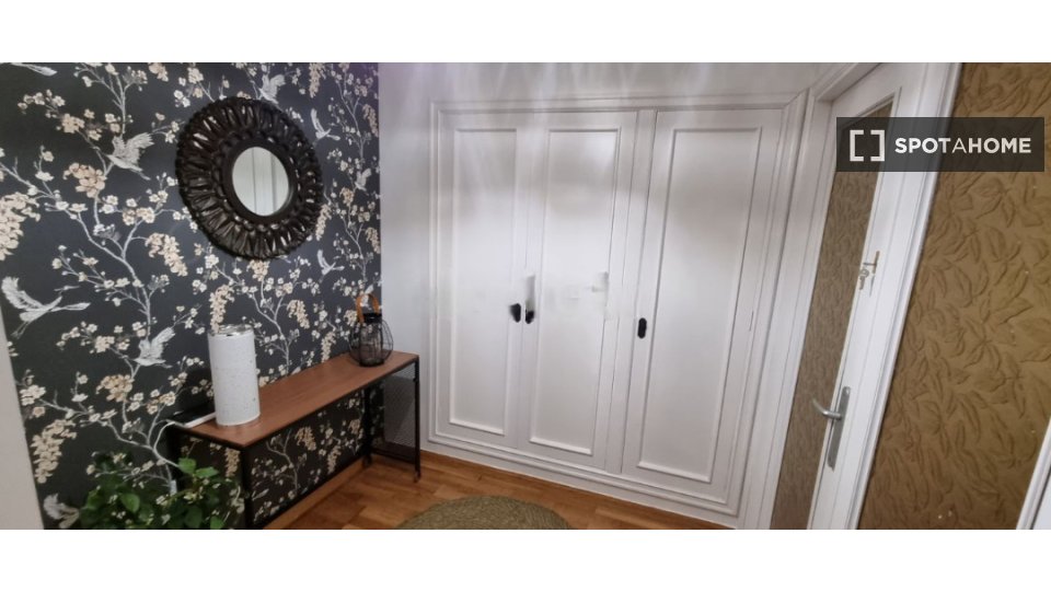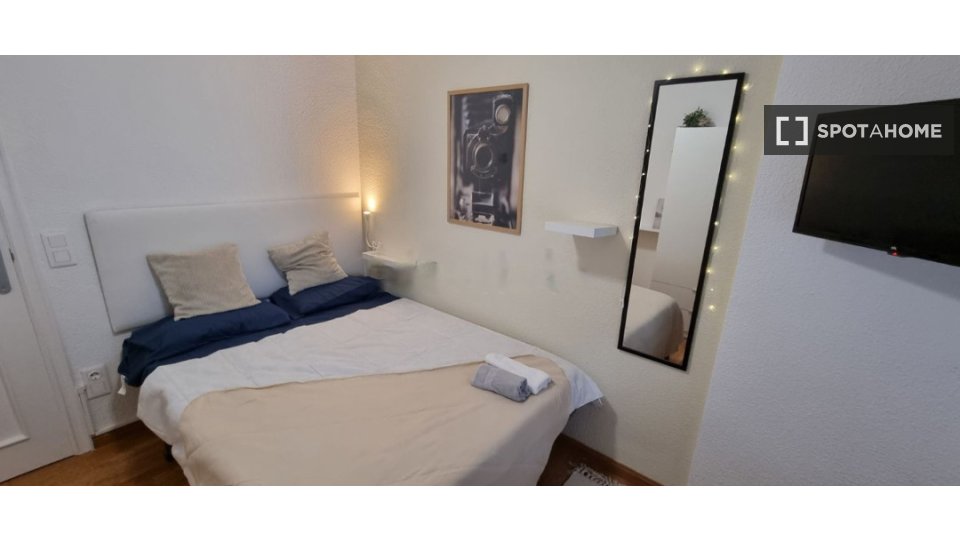 Ofrecemos habitación amplia y luminosa, compuesta por cama de matrimonio, ventilación y calefacción individual y programable, Smart Tv y wifi de alta velocidad en un piso de 4 habitaciones, con dos baños.