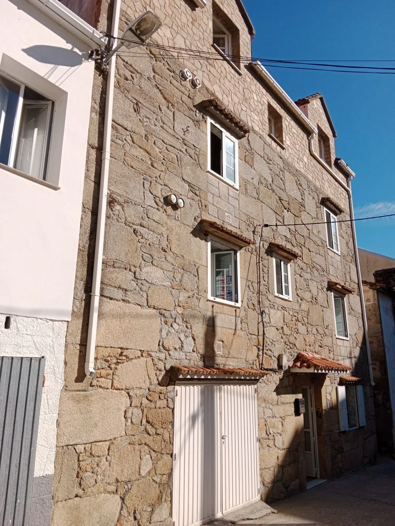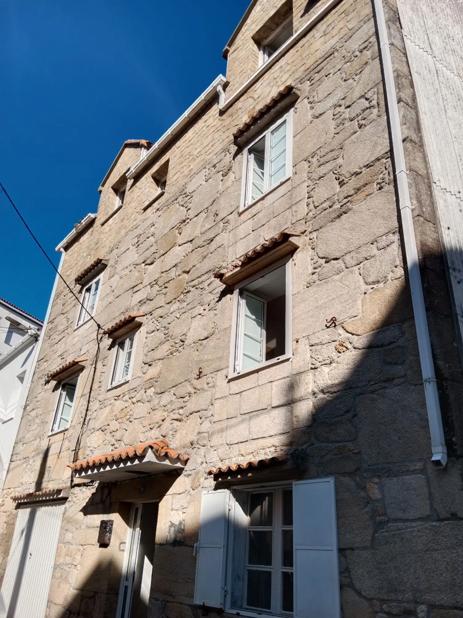 Se vende casa de piedra en Laxe con vistas al mar. Compuesta de un bajo con garage, primer piso y segundo piso (Dúplex) y ático. Tiene conexión de agua y luz en todas las plantas, se podrían hacer cuatro viviendas independientes. Casi 400 m2 útiles en total. Necesita algo de reforma.