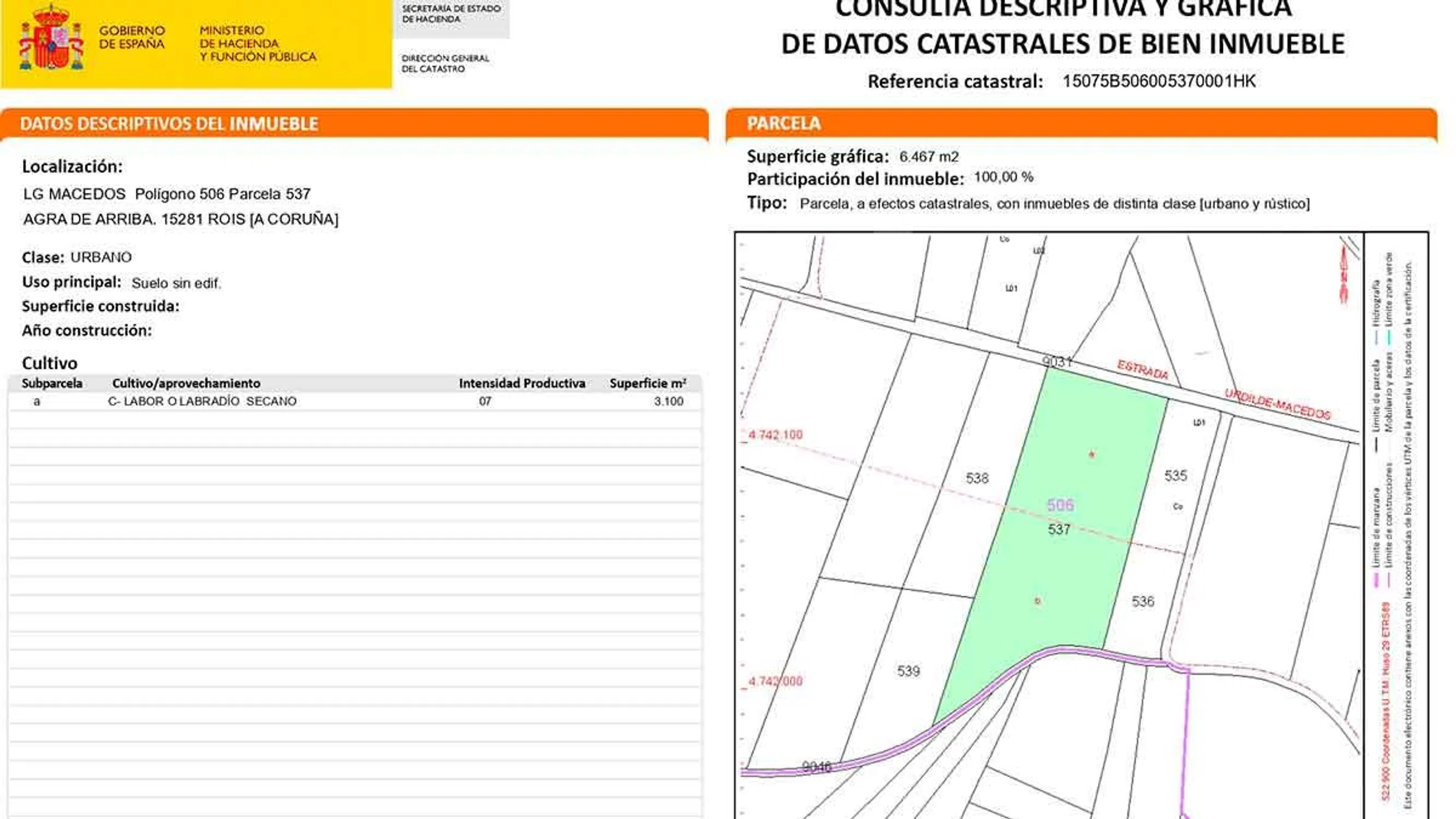 Suelo rústico de unos 6.467, 00 m2 en venta en Rois (A Coruña). Contacta con nosotros para obtener más información).