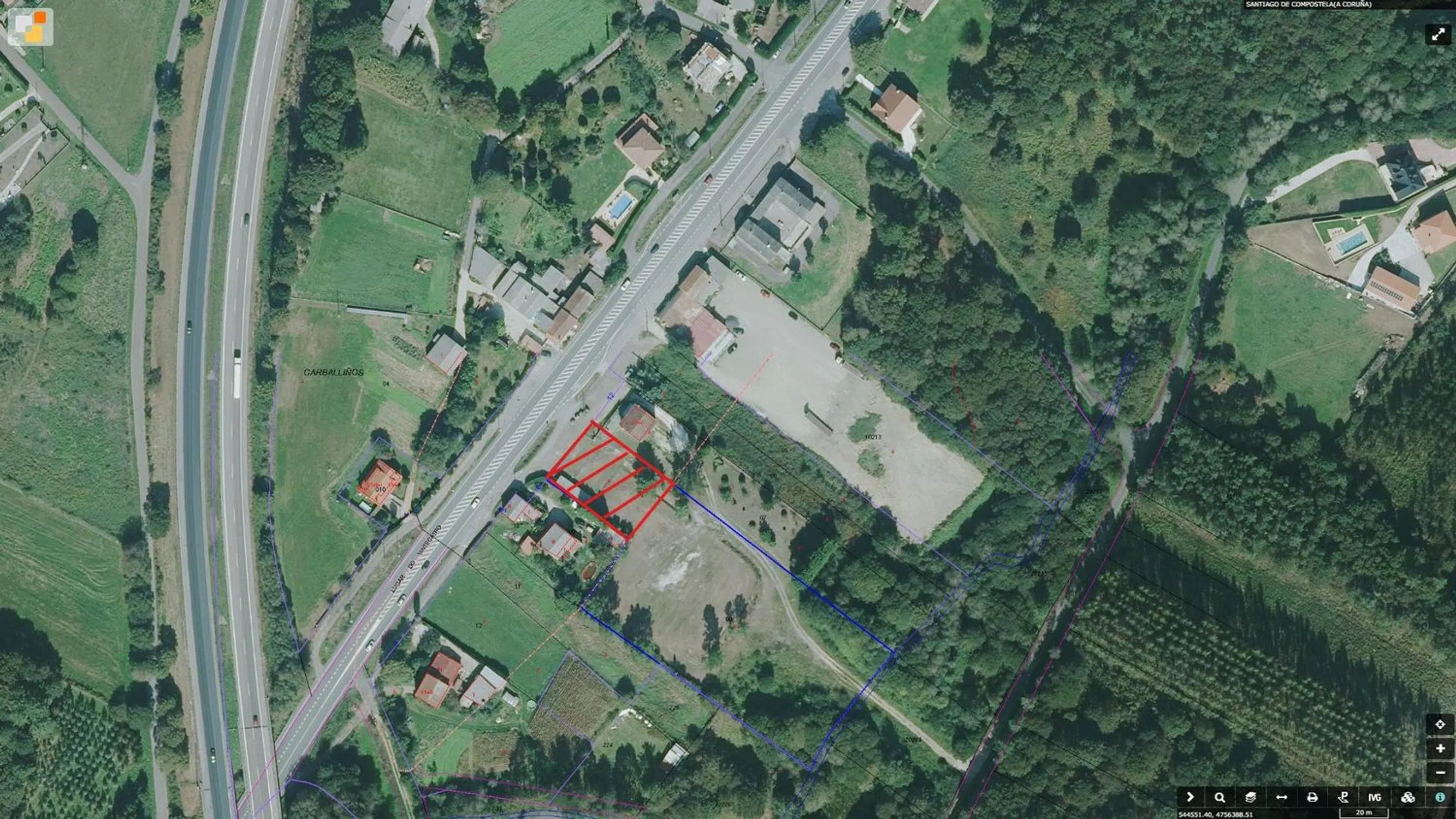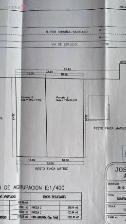 Se vende parcela de 1.316m² próxima al núcleo urbano de Sigueiro aunque enclavada todavía en el Ayuntamiento de Santiago. El solar, edificable, está situado a pie de carretera y dispone de parada de autobús en la misma puerta. Posibilidad de segregar y vender por separado según el plano adjunto.