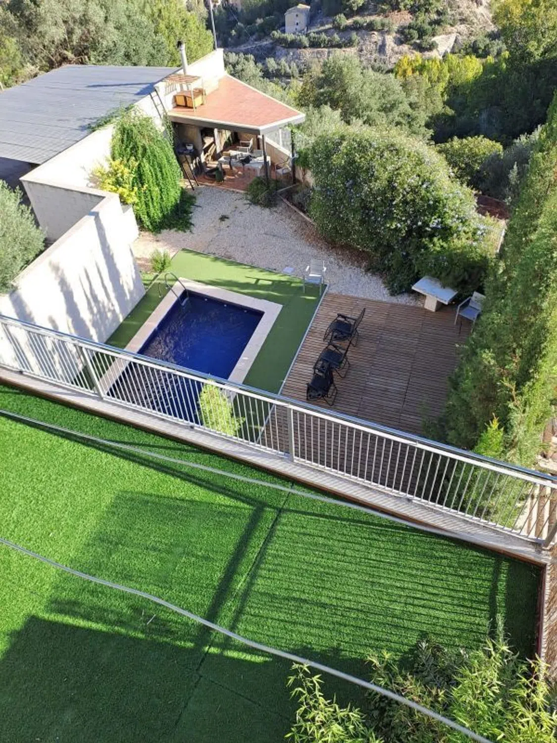 Se vende este bonito chalet con vistas inmejorables a la montaña. Ubicado en la zona alta de Alcoy, a 10 minutos caminando al centro. Consta de 4 dormitorios, 2 baños completos, comedor cocina. Construido en 2009, propiedad moderna y en muy buen estado. Gran porche con vistas a la piscina y a la montaña y balcón terraza en la planta de arriba. Tiene piscina privada, zona de barbacoa, parking y un estudio adicional en el jardin con un dormitorio y un baño. Placas solares. No dudes en contactarnos para información adicional y concertar una visita.
