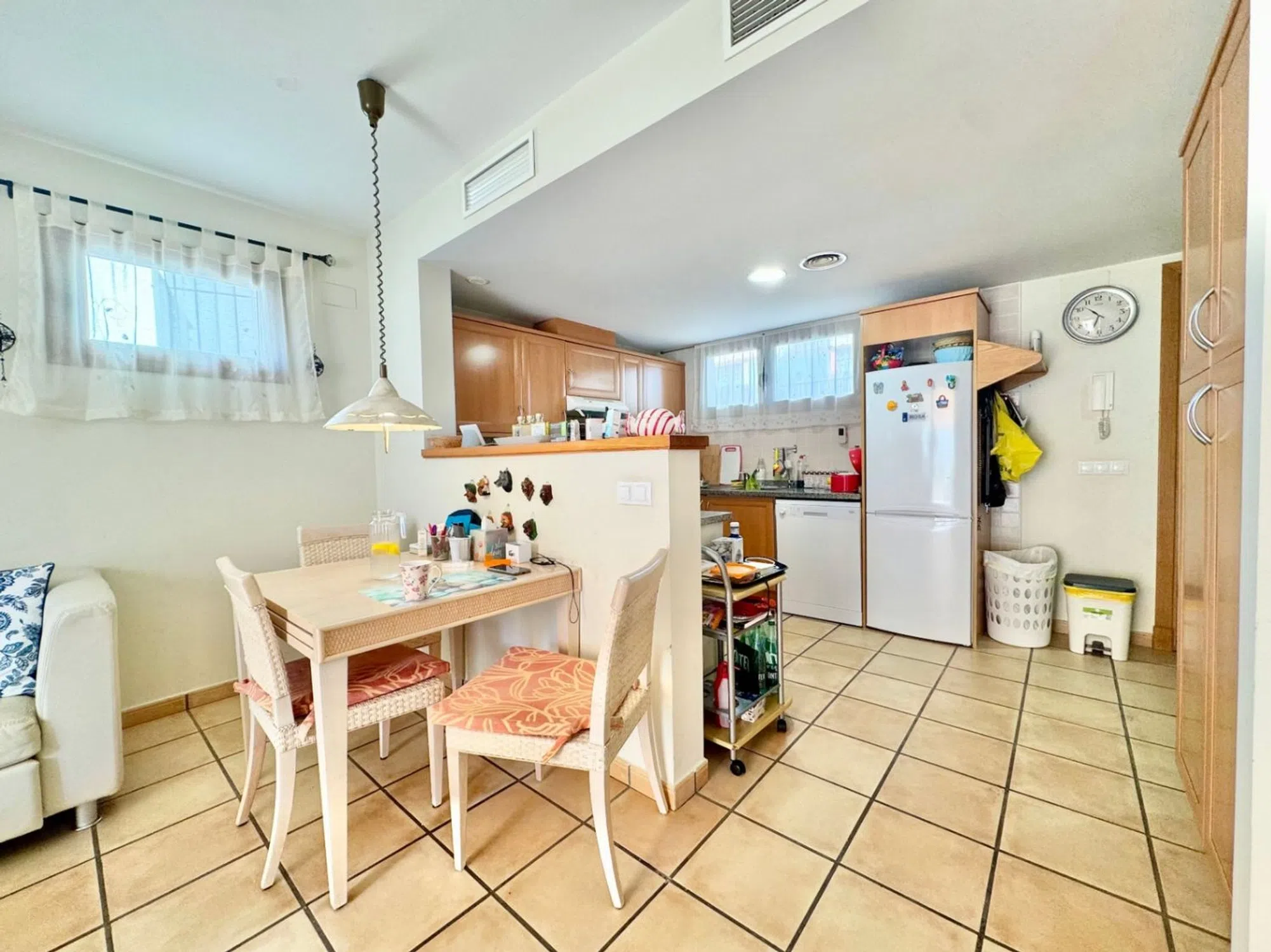 Apartamento en Alfaz del Sol, Alfaz del Pi Ubicado en el exclusivo área de Alfaz del Sol, en la encantadora ciudad de Alfaz del Pi, este apartamento es un refugio ideal para quienes buscan un equilibrio perfeito entre comodidad y estilo de vida mediterráneo. Con una construcción en óptimo estado, esta propiedad de 60 m² ofrece un diseño diáfano que maximiza la luminosidad y el confort en cada rincón. Distribución y Características Este acogedor apartamento cuenta con una habitación bien dimensionada y un baño equipado que cumple con todas las necesidades cotidianas. La cocina americana se abre hacia el salón, creando un espacio social perfecto para compartir con amigos y familiares. Además, cuenta con un lavadero que añade funcionalidad a este encantador hogar. Terraza Privada Uno de los mayores atractivos de esta propiedad es su terraza de 20 m², donde puedes disfrutar del sol del sur, creando un ambiente ideal para relajarse o entretenerse al aire libre. Ya sea para tomar el desayuno bajo el cálido sol mediterráneo o disfrutar de cenas al fresco durante las suaves noches, este espacio es un verdadero santuario. Comodidades y Equipamiento Este apartamento está equipado con características modernas que hacen la vida diaria más placentera. La calefacción por suelo radiante y el aire acondicionado centralizado garantizan un clima interior perfecto durante todo el año. Para mayor tranquilidad, la propiedad cuenta con doble acristalamiento y una puerta de seguridad. Área Común y Servicios Los residentes pueden disfrutar de una piscina climatizada en el complejo, perfecta para refrescarse en los días soleados. El jardín bien cuidado añade un toque de naturaleza al entorno, ideal para paseos tranquilos o momentos de relajación. Además, la propiedad ofrece fácil acceso a un ascensor y a servicios cercanos, creando una experiencia de vida cómoda y sin complicaciones. Ubicación Ideal Alfaz del Sol es conocido por su ambiente tranquilo y su cercanía a una variedad de servicios, restaurantes y actividades al aire libre. Con un clima privilegiado durante todo el año, esta ubicación es perfecta tanto para residir de forma permanente como para disfrutar de unas vacaciones relajadas. Descubre la oportunidad de vivir en este encantador apartamento en Alfaz del Sol y experimentar un estilo de vida lleno de sol, comodidad y tranquilidad.