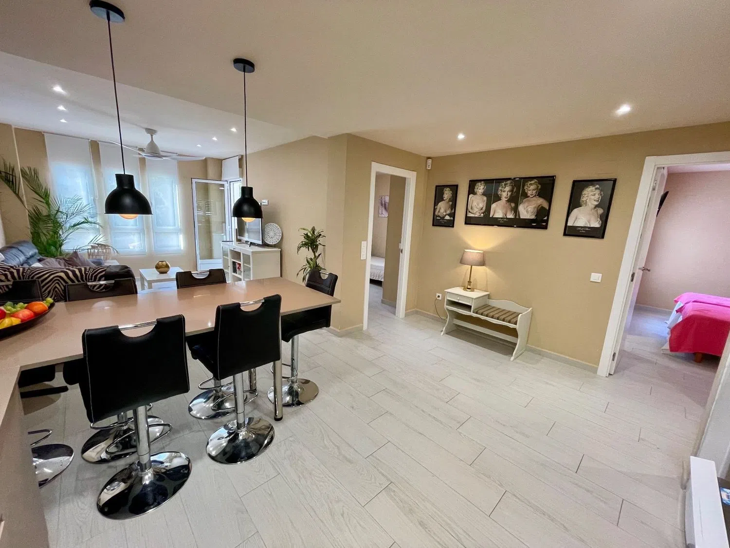 To jasne mieszkanie o powierzchni 70 metrów kwadratowych oraz dodatkowym 15-metrowym miejscu parkingowym, składa się z dwóch przytulnych sypialni oraz dwóch eleganckich łazienek, w tym jedną z nich z dostępem bezpośrednim, która oferuje ogrzewanie podłogowe oraz nowoczesną kabinę prysznicową na poziomie podłogi. W pełni wyposażona kuchnia typu open space to idealne miejsce do wspólnego spędzania czasu oraz kulinarnych przygód.