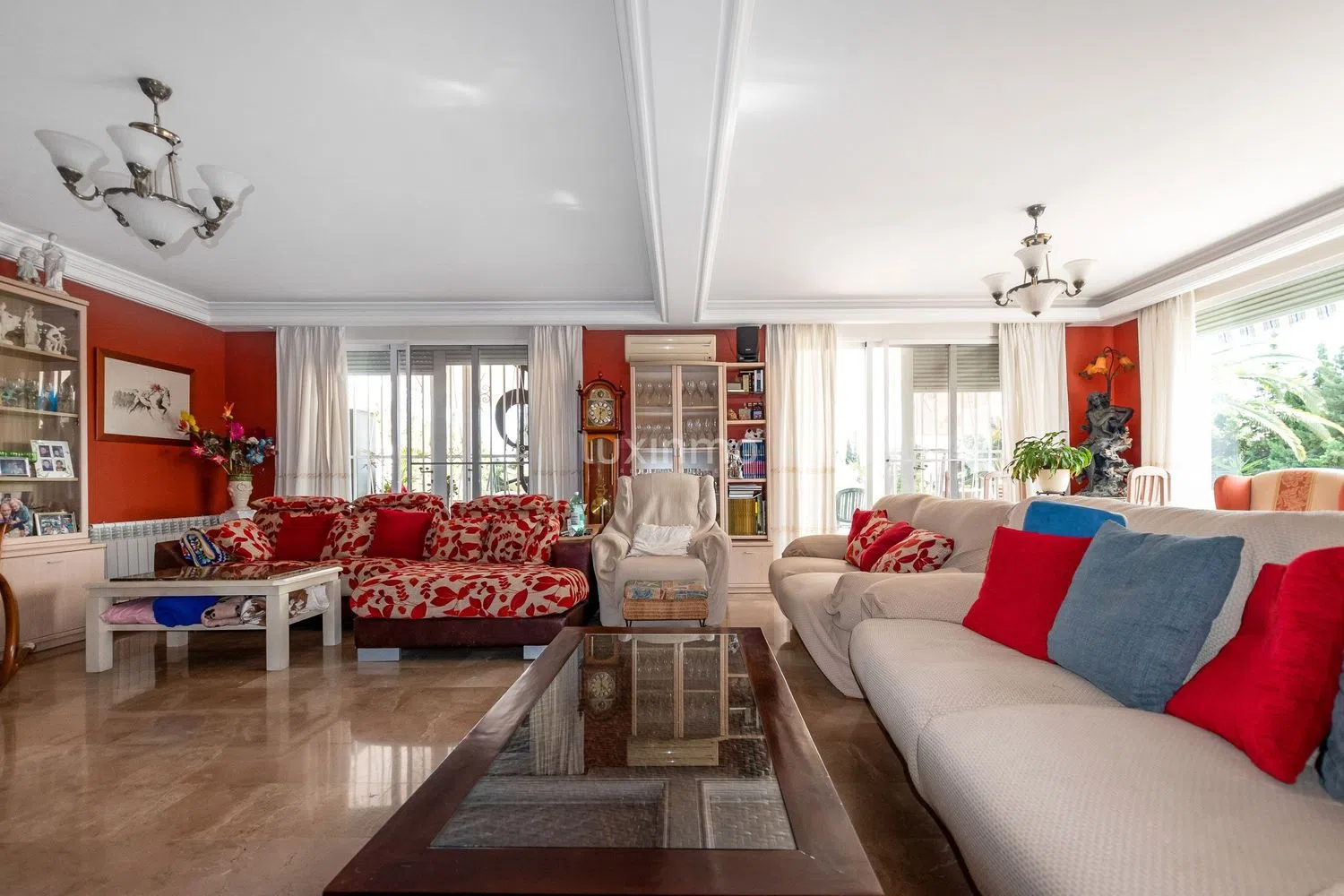 Ta urocza posiadłość oferuje szereg funkcji i udogodnień, które zapewniają wygodny i przyjemny pobyt. Kuchnia jest w pełni wyposażona, posiada małą spiżarnię oraz bezpośredni dostęp do strefy parkingowej. W jednym z dwóch salonów i w głównej sypialni znajduje się kominek, co dodaje uroku wnętrzu. Do dyspozycji jest także jacuzzi oraz garderoba w sypialni głównej, a pozostałe sypialnie wyposażone są w szafy wnękowe. Dom posiada 17 grzejników centralnego ogrzewania zasilanych gazem oraz 3 jednostki klimatyzacyjne, co zapewnia komfort przez cały rok. Bezpieczeństwo nieruchomości gwarantuje wzmocnione drzwi oraz podwójne szyby, a także przestronny parking na 4 samochody.