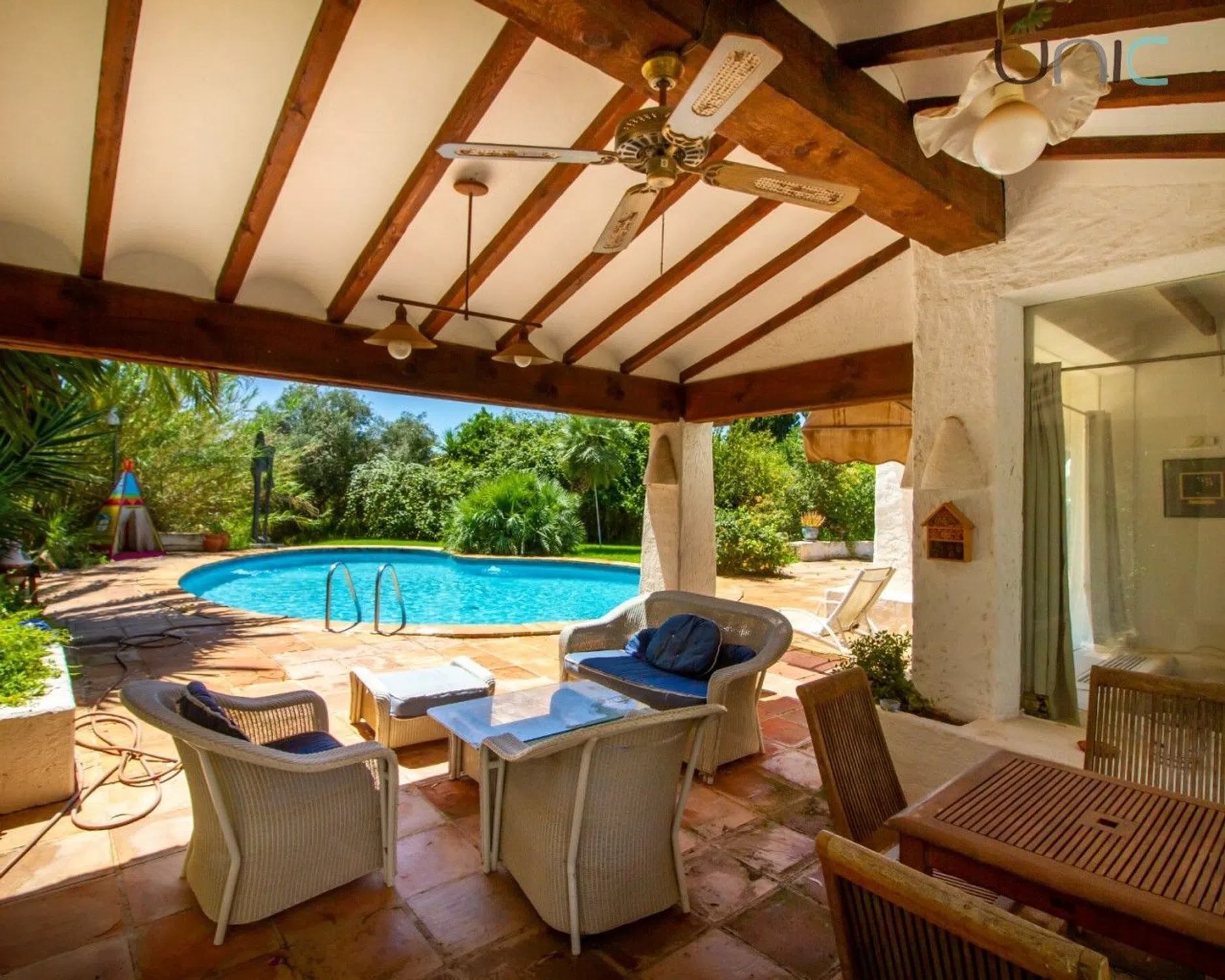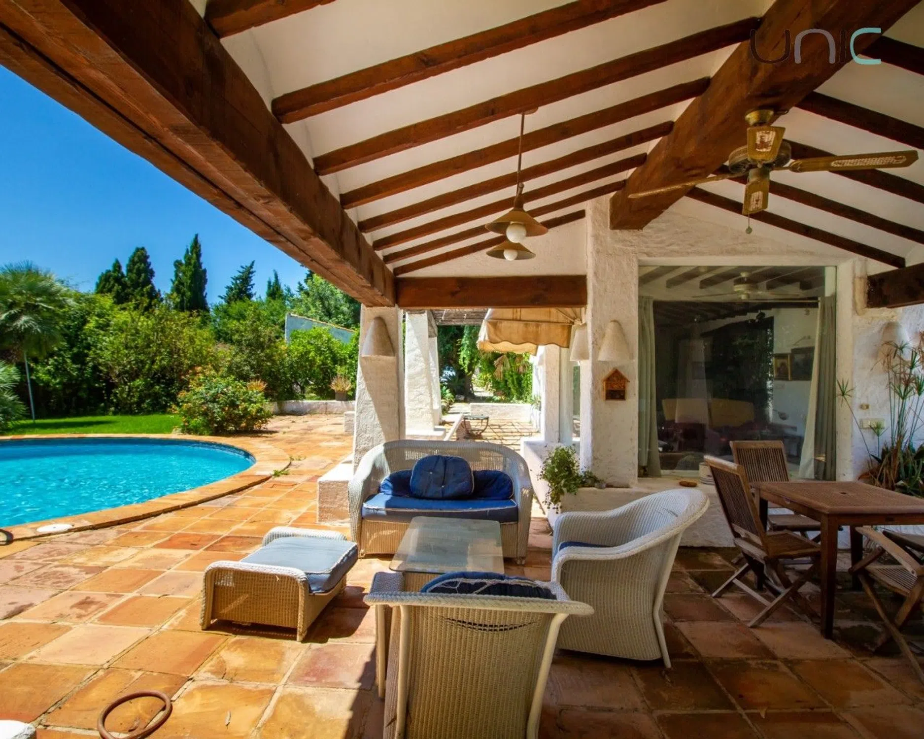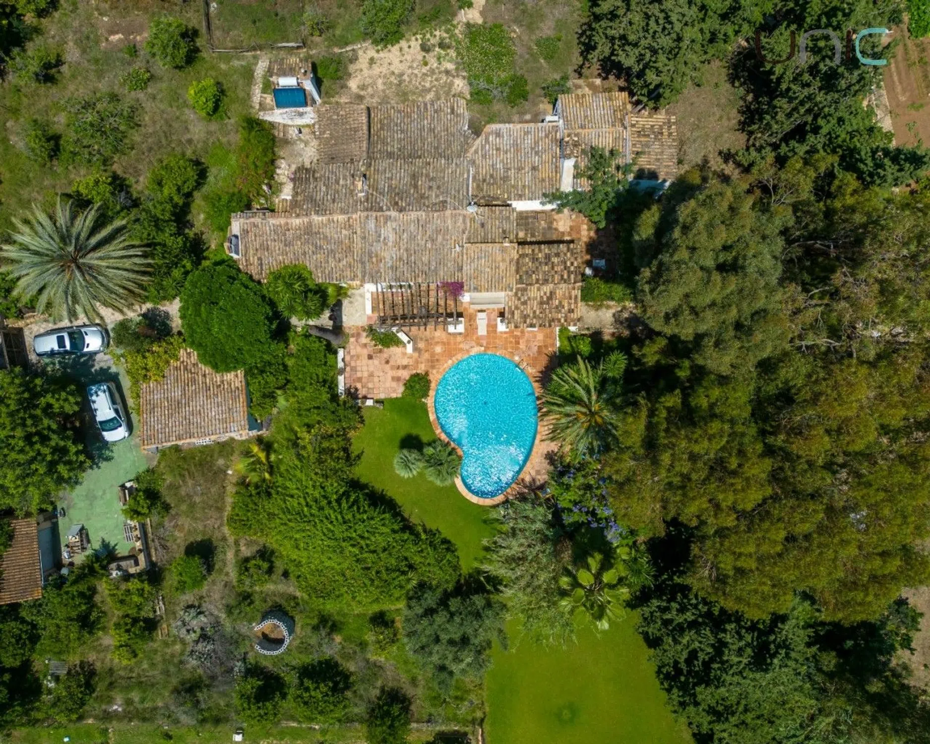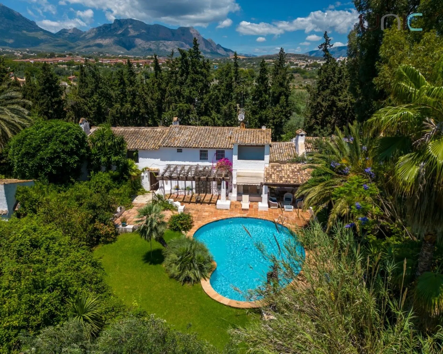 ¡Encantadora y amplia finca con casa de invitados y un terreno espacioso con mucha historia! Situada en un lugar tranquilo y privado, rodeada de vegetación, pero a pocos pasos del centro de Alfaz del Pi, donde se pueden encontrar todos los servicios necesarios, como supermercados, restaurantes, transporte público e instalaciones deportivas. La propiedad consta de 2 casas: la casa principal de 337 m² y una casa de huéspedes conectada de 40 m². La casa principal se extiende en 2 plantas. La planta baja ofrece 2 salones (uno de verano y otro de invierno con chimenea), un despacho con chimenea, una cocina, un comedor, una sala de billar, una bodega y un aseo. En el primer piso hay 4 dormitorios y un baño con WC separado. El dormitorio principal tiene baño en suite. La casa de huéspedes también se extiende sobre 2 plantas. La planta baja ofrece cocina, salón comedor con chimenea y aire acondicionado; y un baño. En el primer piso hay un dormitorio. La propiedad ofrece muchas características, como calefacción central con radiadores y aire acondicionado split, ventiladores, agua caliente con paneles solares, video portero, cámaras de seguridad y sensores en toda la casa y puerta de entrada automática. La villa tiene mucha luz natural y vistas al jardín ya la piscina. La villa se asienta sobre una gran parcela de 5749 m² y ofrece un hermoso jardín. Aquí se puede disfrutar de una hermosa piscina, jacuzzi para 6 personas, área de parrillas, terrazas techadas y descubiertas, 2 marquesinas abiertas - una de 45 m2 con capacidad para 2 autos y otra de 15 m2 con capacidad para 1 auto; un garaje cerrado de 25 m2, un trastero bajo la piscina de 10 m2 y otro trastero bajo la casa de invitados de 10 m2; y una amplia zona con palmeras y varios árboles frutales. ¡Hermosa finca rústica con una hermosa casa de huéspedes y una ubicación tranquila!