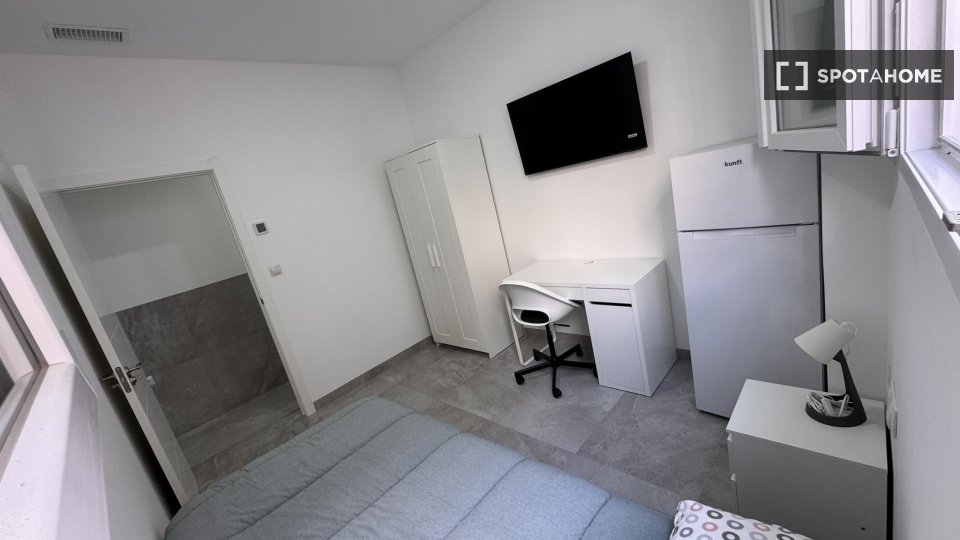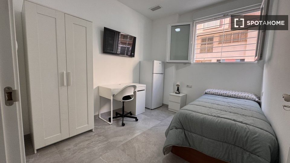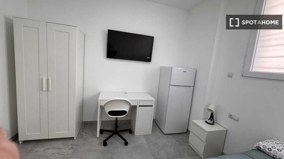 Ten pokój jest częścią wspólnego 5-pokojowego mieszkania w Elche. Nieruchomość jest w pełni umeblowana i wyposażona w centralnie zainstalowaną klimatyzację dla wygody. Najemcy mają dostęp do wspólnej, w pełni wyposażonej kuchni, w której znajduje się zmywarka, piekarnik i wiele innych. Nieruchomość oferuje również wliczone w cenę połączenie WiFi i wspólną pralkę. Rachunki za prąd, gaz, wodę i WiFi są wliczone w cenę. Należy jednak pamiętać, że palenie i zwierzęta domowe są zabronione, a nieruchomość jest najbardziej odpowiednia dla profesjonalistów i studentów.