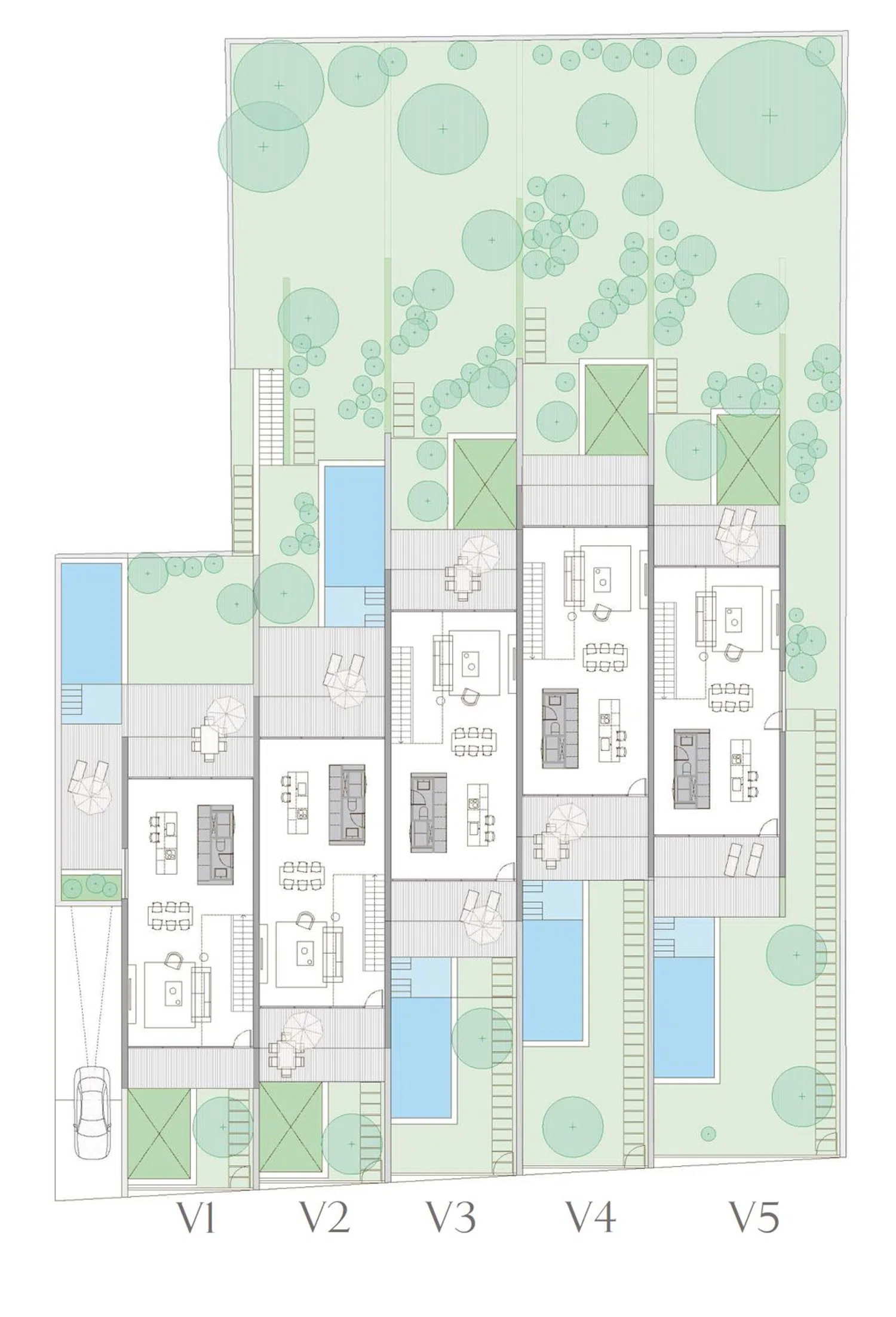 Mieszkanie blisko morza, blisko pola golfowego, w pobliżu wszystkich usług — to wszystko oferuje ten luksusowy kompleks. 5 willi zlokalizowanych na dużej działce, rozmieszczonych w układzie schodkowym zapewniającym maksymalną prywatność, oraz wykorzystanie nasłonecznienia i przestrzeni prywatnej. Nowoczesna architektura proponująca otwarte przestrzenie na światło i otaczającą je przyrodę, z pięknymi tarasami, prywatnymi ogrodami i dialogiem między wnętrzem a zewnętrzem dzięki szklanym fasadom, które dominują w projekcie.