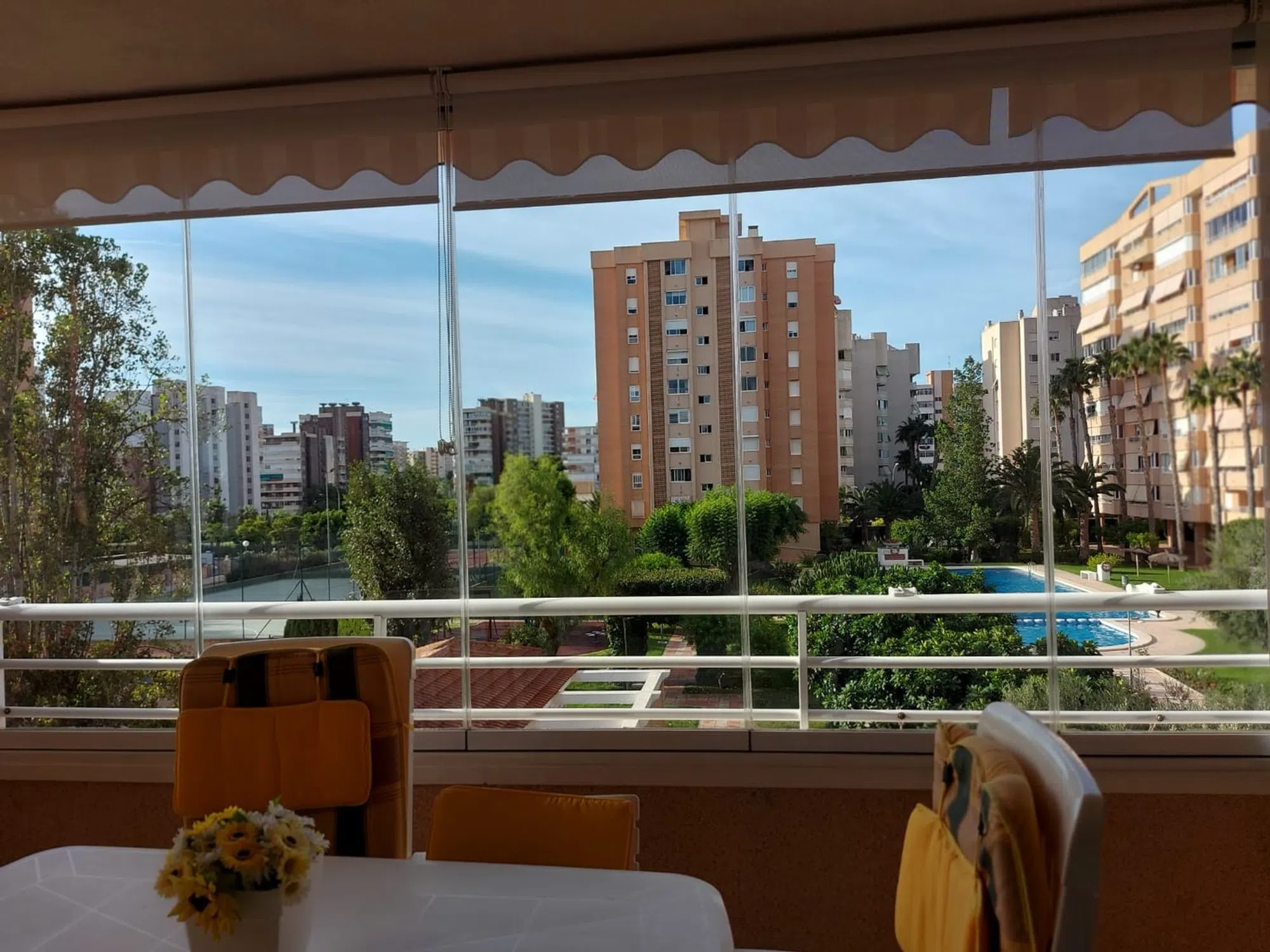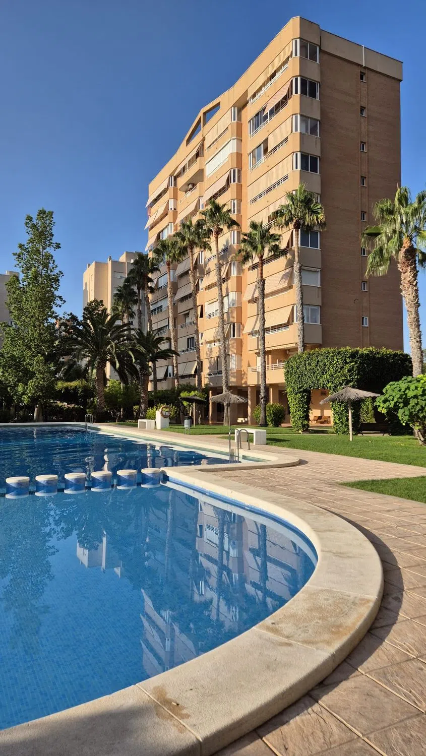 ABSTENERSE AGENCIAS, SÓLO PARTICULARES. Urbanización Parque Cristina. Amplio y luminoso piso en segunda planta de 3 habitaciones dobles, 2 baños completos (uno de ellos en suite), cocina con office y plaza de garaje incluida en el precio. Orientación sur-este, sol de mañana. Amplia terraza con precioso cerramiento de cortina de cristal perfecta para aprovechar al máximo de ella tanto en invierno como en verano. Aire acondicionado con bomba frío/calor. Calefacción eléctrica y agua caliente mediante calentador de gas individual. Urbanización tranquila, con zona de columpios, gran piscina de adultos y otra infantil, gimnasio, pista de paddle, tenis, fútbol sala, baloncesto, patinaje y petanca. Portero físico. Club social que puedes reservar para celebrar eventos familiares. Piso muy bien situado junto a la estación de TRAM Países Escandinavos (líneas 4 y 5), y Campo de Golf (1, 3 y 5), autobús 28 (línea directa al hospital de San Juan) L38A (Universidad de Alicante) y a 12 minutos caminando del paseo de la playa de San Juan.