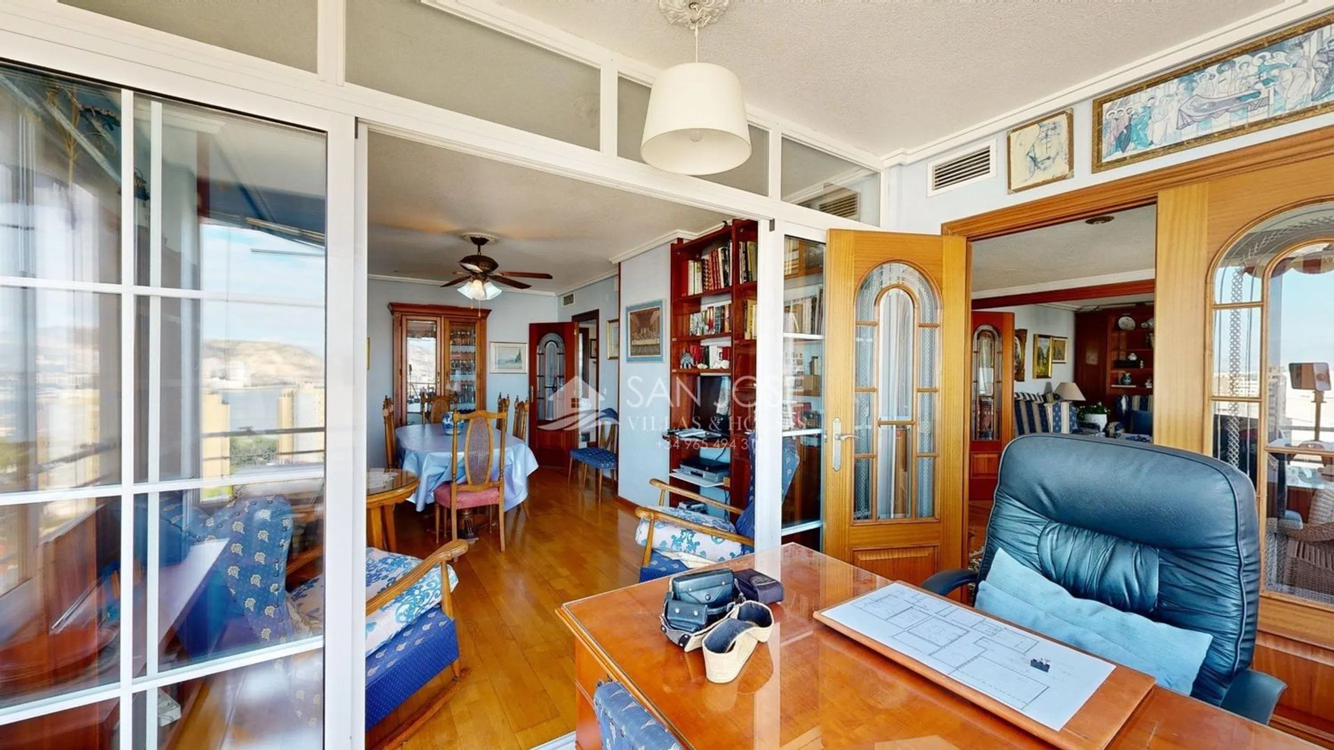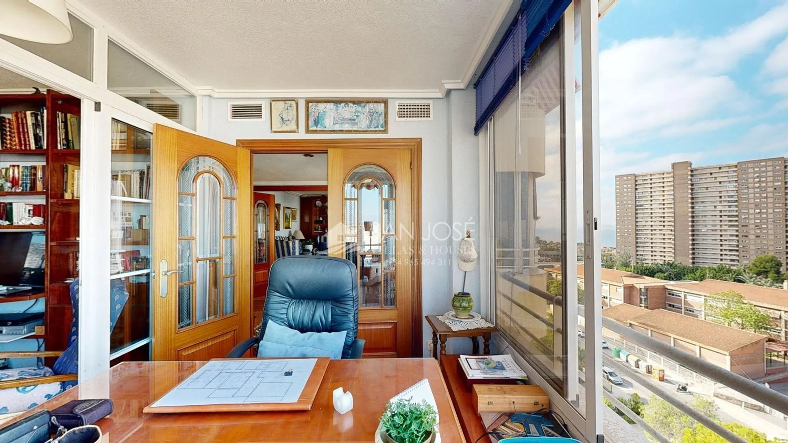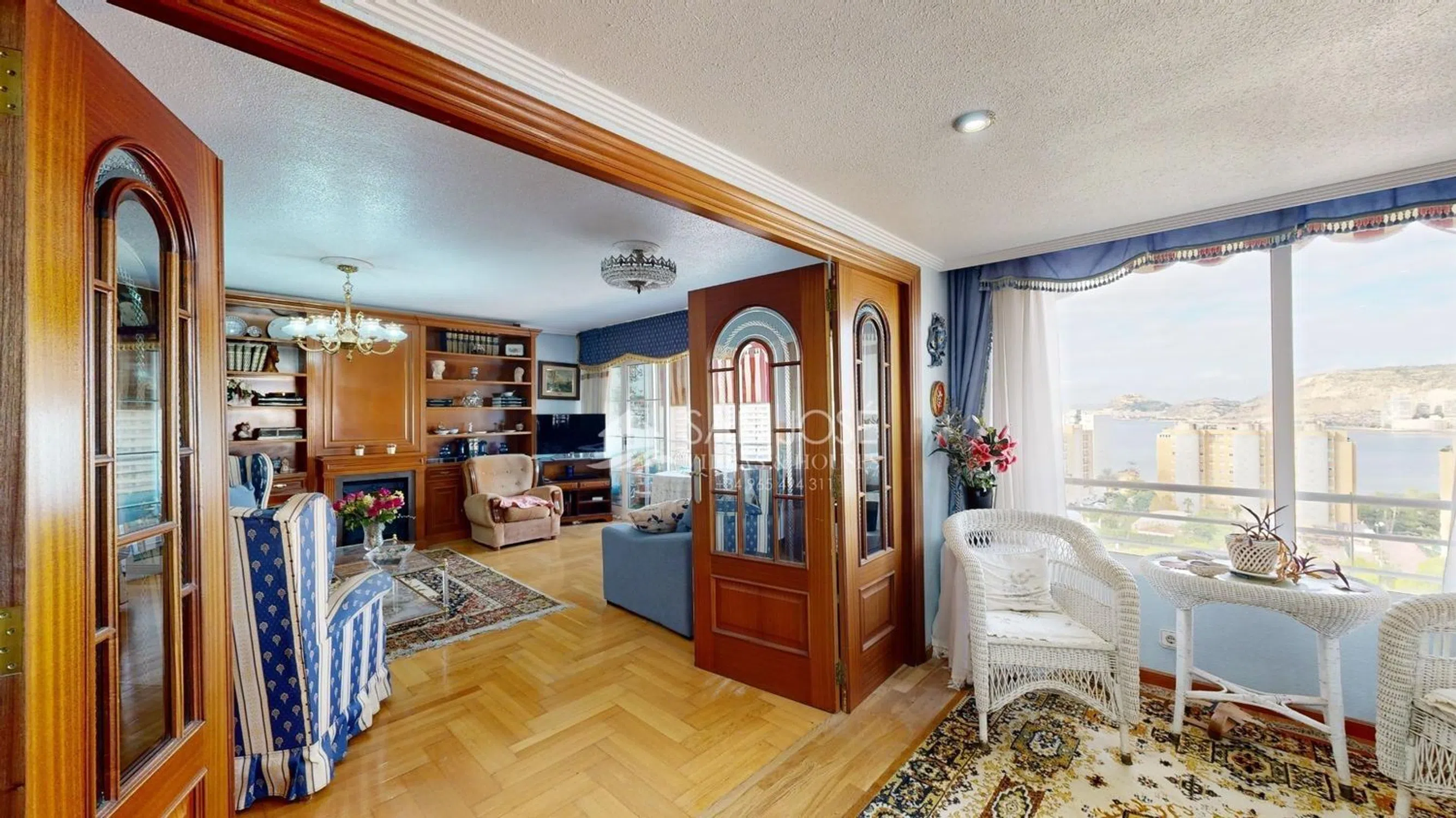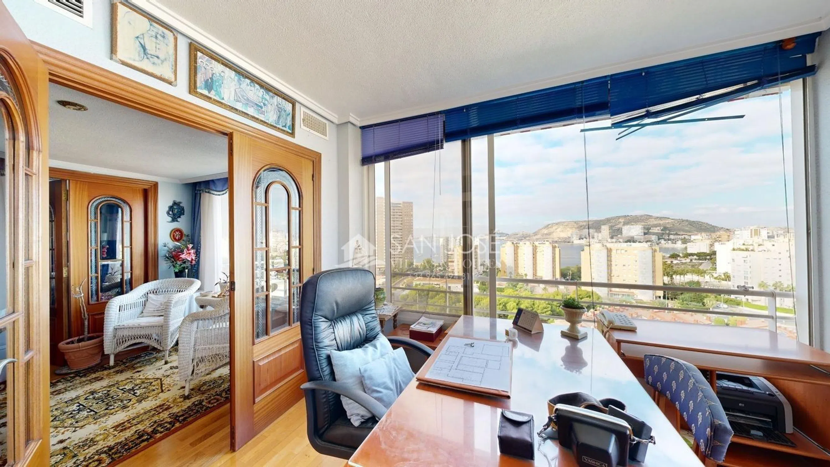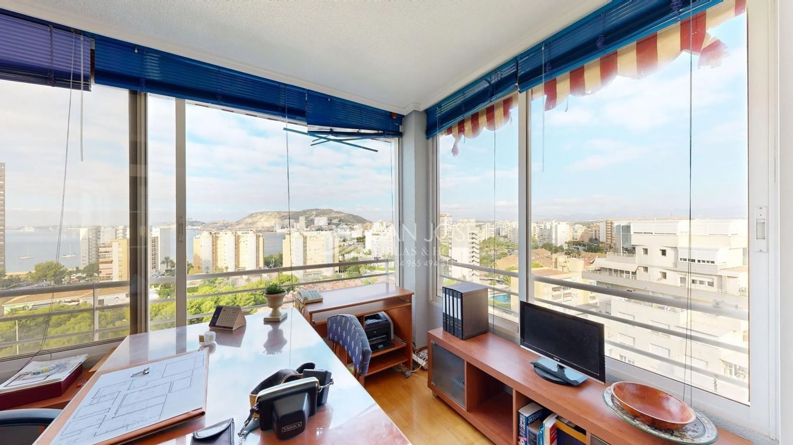 ¡PISO ESPECTACULAR A 100 METROS DE PLAYA DE SAN JUAN Y CABO LAS HUERTAS! . El edificio está perfectamente ubicado y tiene unas vistas preciosas al mar y a la montaña con orientación sur, . La propiedad cuenta con amplias terrazas que ofrecen excelentes opciones de reforma para modernizar aún más los espacios. Ubicado en la zona del Cabo de Huertas, playa de la Caleta. Este piso está en la planta 8ª ofrece una superficie de 165 m², con 4 habitaciones dobles con armarios empotrados y 2 baños, cocina independiente totalmente amueblada y equipada, dos excelentes salones con salida al balcón-terraza que tiene un acristalamiento de aluminio y despacho con unas vistas impresionantes. En el edificio la vivienda cuenta con zona ajardinada muy tranquila con zonas con césped y esplendida piscina comunitaria barbacoa común, parking privado y un garaje-almacén independiente con doble planta de 25m2 cada planta. Además, cuenta con estas calidades: Carpintería exterior de aluminio/climalit, Carpintería interior de madera, video portero, pre-instalación de aire acondicionado por conductos Este piso es perfecto para familias gracias a la excelente zona en la que se encuentra rodeada de servicios, colegios, centro de salud, hospital, centros comerciales, de ocio, deportivos y comercial, grandes parques con juegos infantiles y piscina comunitaria.