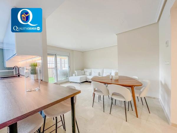 Referencia K3238 Este extraordinario piso planta baja se encuentra en zona céntrica de Sant Joan d'Alacant. Situado junto a avenida principal, dispone de urbanización privada y se halla rodeado de todos los servicios y zonas comerciales. Se trata de una propiedad totalmente exterior, amplia y luminosa, con una excelente distribución y grandes posibilidades para dotarla de nuestro estilo personal. Con una construcción sólida y de calidad, la vivienda se ofrece semiamueblada, se encuentra en inmejorable estado tras reforma integral a estrenar con primeras calidades, contando con suelos de mármol y gres porcelánico, AA. CC centralizado con bomba de calor, puerta blindada, rejas, mosquiteras, toldos, carpintería lacada en blanco, techos en cámara de pladur y ventanas aluminio climalit, entre otras mejoras. El luminoso salón, muy bien comunicado, cuenta con dos ambientes y magnífica terraza exterior, totalmente acondicionada y con toldo integral. La moderna y espaciosa cocina, con zona de office, se encuentra totalmente equipada, cuenta con todos los electrodomésticos y se encuentra integrada en el salón, compartiendo su luminosidad. La vivienda cuenta con 3 dormitorios con armarios empotrados y 2 baños completos, disponiendo el dormitorio principal de terraza exterior y baño en suite. La finca dispone de ascensor y la vivienda cuenta además con plaza de garaje y trastero en la urbanización privada con piscinas para adultos y niños. Todo un lujo de vivienda en magnífica zona de Sant Joan, para quien sabe apreciar la calidad, exclusividad y posibilidades que ofrece. Concierte ahora una visita y compruebe personalmente la oportunidad que supone la adquisición de esta propiedad. La presente publicación tiene carácter meramente informativo, orientativo y no vinculante, por lo que no supone información contractual alguna, siendo su uso estrictamente comercial. Este anuncio puede contener errores, se muestra a título informativo de la información recibida, sin ser responsable la inmobiliaria de dichos errores.