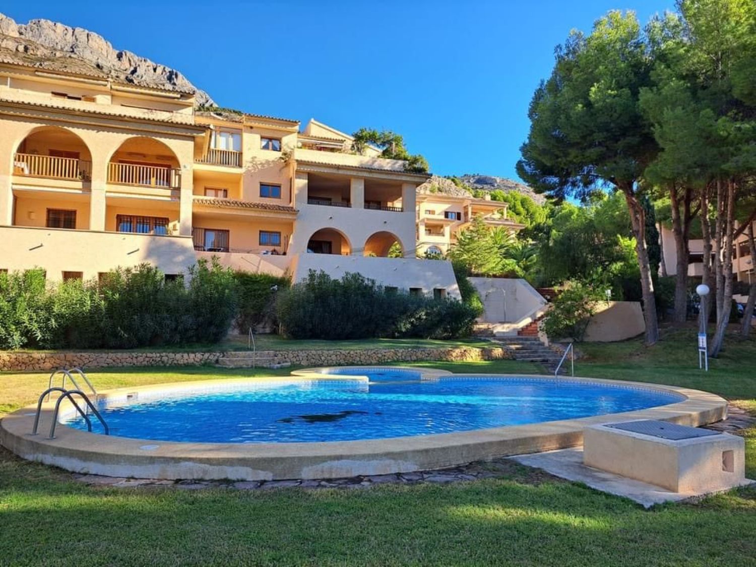 Se alquila para larga temporada precioso y amplio apartamento de 3 dormitorios (166 m2) con todas las comodidades, 2 baños, cocina totalmente equipada, amplia superficie habitable de 113 m2, todas las habitaciones con armarios empotrados.Sistema de aire acondicionado y calefacción centralizado a todas las estancias.Amplio garaje subterráneo (plaza de aparcamiento) con trastero cerrado.Situado en uno de los entornos naturales y tranquilos más bellos y cotizados de la región, con preciosos jardines y una gran piscina.Muy cerca del campo de golf local y a 2,5 km del centro de Altea Vella con sus numerosos restaurantes, tiendas y supermercado.Y a 5 minutos de las preciosas y famosas playas de Olla. El centro de Altea está a 8 minutos. El edificio está ubicado en una de las zonas más cotizadas de la Sierra Alteana. Este apartamento es muy adecuado para residencia permanente con una familia.