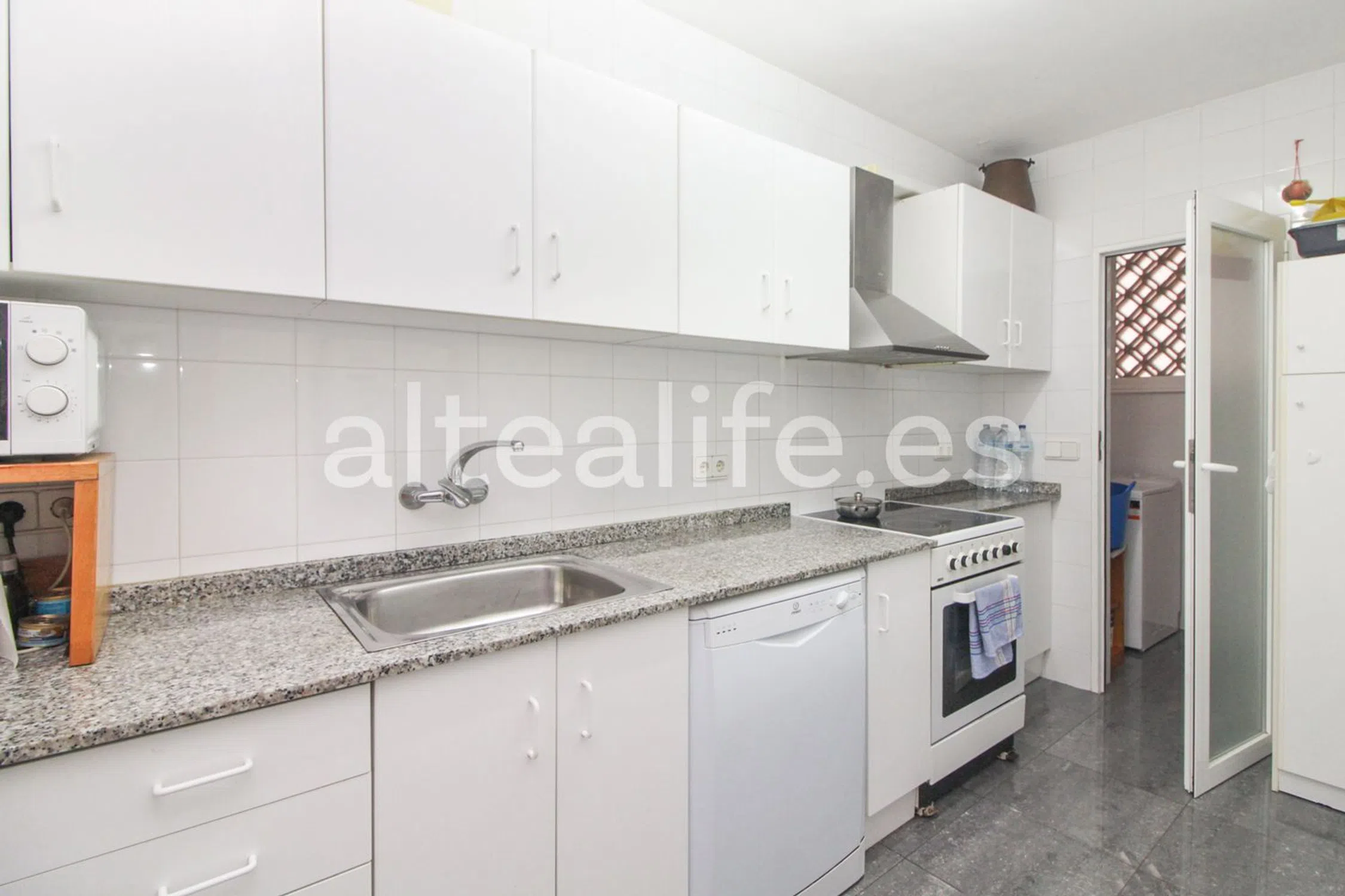 Apartamento en esquina de 130 m², ubicado en la zona del Puerto de Altea, a tan solo 2 minutos andando del puerto, del paseo marítimo, la playa, y de algunos servicios como restaurantes y supermercado. A 20 minutos a pie del centro del pueblo. Distribución de la propiedad: 3 dormitorios con armarios empotrados. 1 baño completo y 1 aseo. Cocina independiente. Lavadero independiente. Salón-comedor amplio y luminoso, con acceso a la terraza. Terraza en esquina, accesible desde el salón y 2 dormitorios, con espacio para mesa, sillas, zona de relax y hamacas, con vistas parciales al puerto y al mar. El apartamento está equipado con aire acondicionado. Además cuenta con parking techado, una gran ventaja en esta zona. Con orientación Sureste, asegura luz natural y calidez durante prácticamente todo el año. La última reforma ser realizó en 2010 y se encuentra en buen estado. El edificio cuenta con ascensor. Un apartamento amplio y con una gran terraza, ideal tanto para vivir todo el año como para disfrutar de una segunda residencia junto al mar. ZONA PUERTO DE ALTEA La zona del Puerto de Altea, formada principalmente por la Avenida del Puerto, parte de la Calle La Mar y parte de la Calle San Pedro, es una zona muy solicitada por las vistas al mar de muchas de sus propiedades. Junto al Paseo Marítimo San Pedro y la Playa de la Roda, dispone de numerosos comercios, bares y restaurantes; cerca de grandes supermercados como el Consum y el MasyMas. También encontrarás la Farmacia Galiana en la zona. Junto al Puerto de Altea se sitúa también el Club Náutico de Altea, el Puerto Deportivo y varios establecimientos para alquiler de barcos. La zona dispone de parking público el mismo Puerto. En la zona se encuentra la Estación de Tren de Altea (TRAM Metropolitano) que conecta Alicante con Denia. ACCESO ALTEA Altea se encuentra a 50Km. de Alicante, 10Km. de Benidorm y a 130Km. de Valencia. Altea tiene fácil acceso por carretera tanto por autopista como por carretera Nacional N-332, pero además está comunicada por autobús con las dos capitales de provincia y con Benidorm, así como un servicio de TRAM que la conecta con Benidorm y Alicante. Para llegar a Altea por carretera se puede hacer tomando la carretera Nacional N-332 o la autopista del Mediterráneo AP-7, en la salida 64. Tiene fácil acceso a dos aeropuertos: -Alicante, a 57 Km. -Valencia, a 140Km.