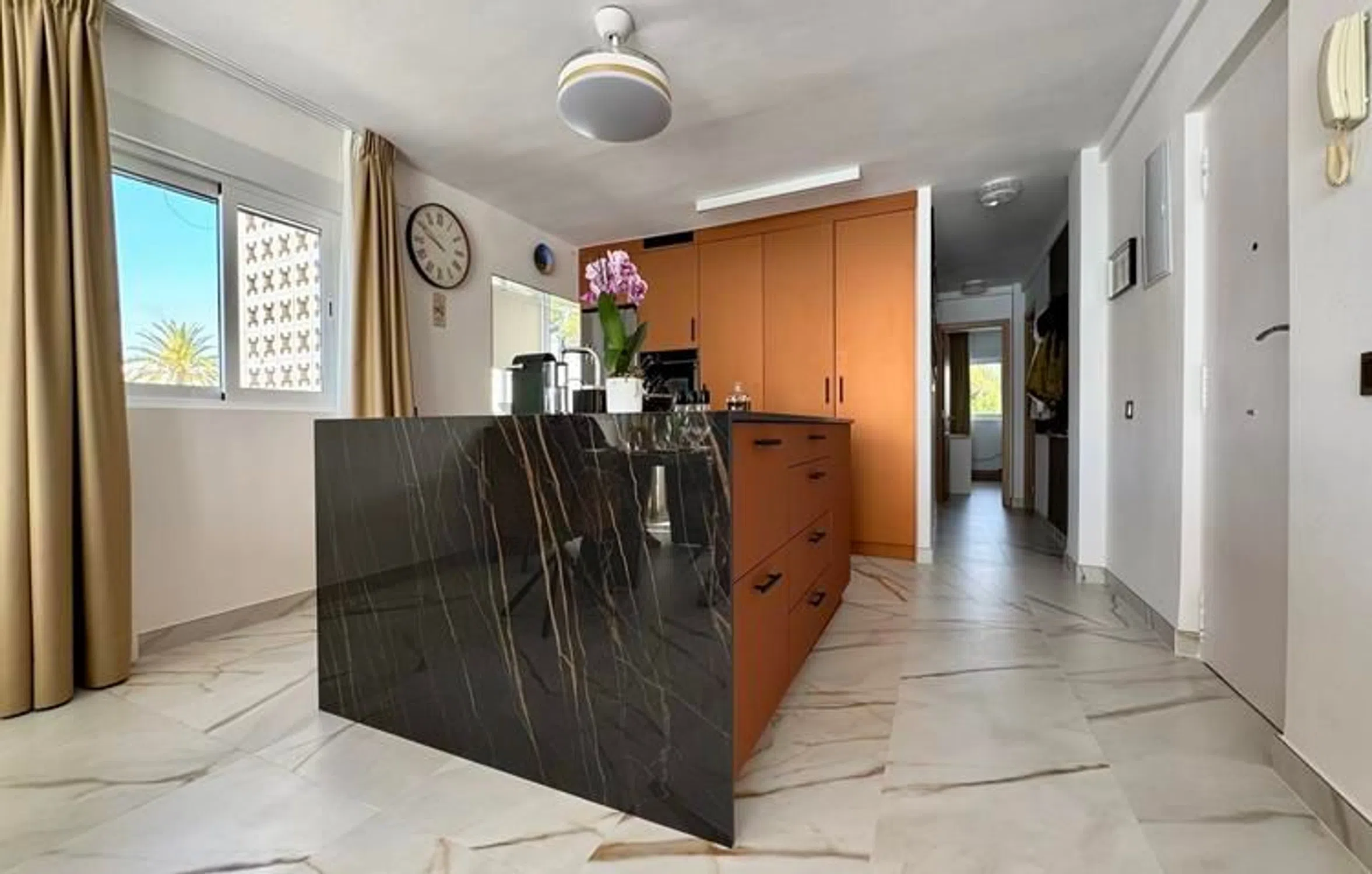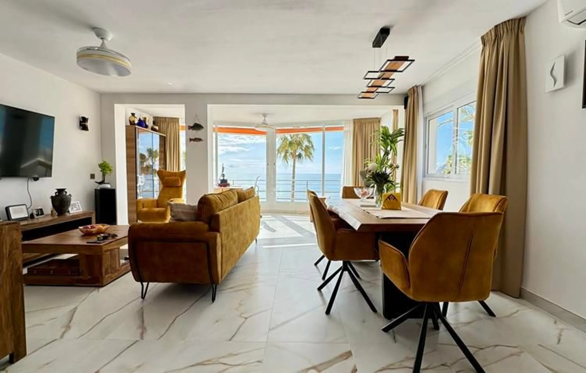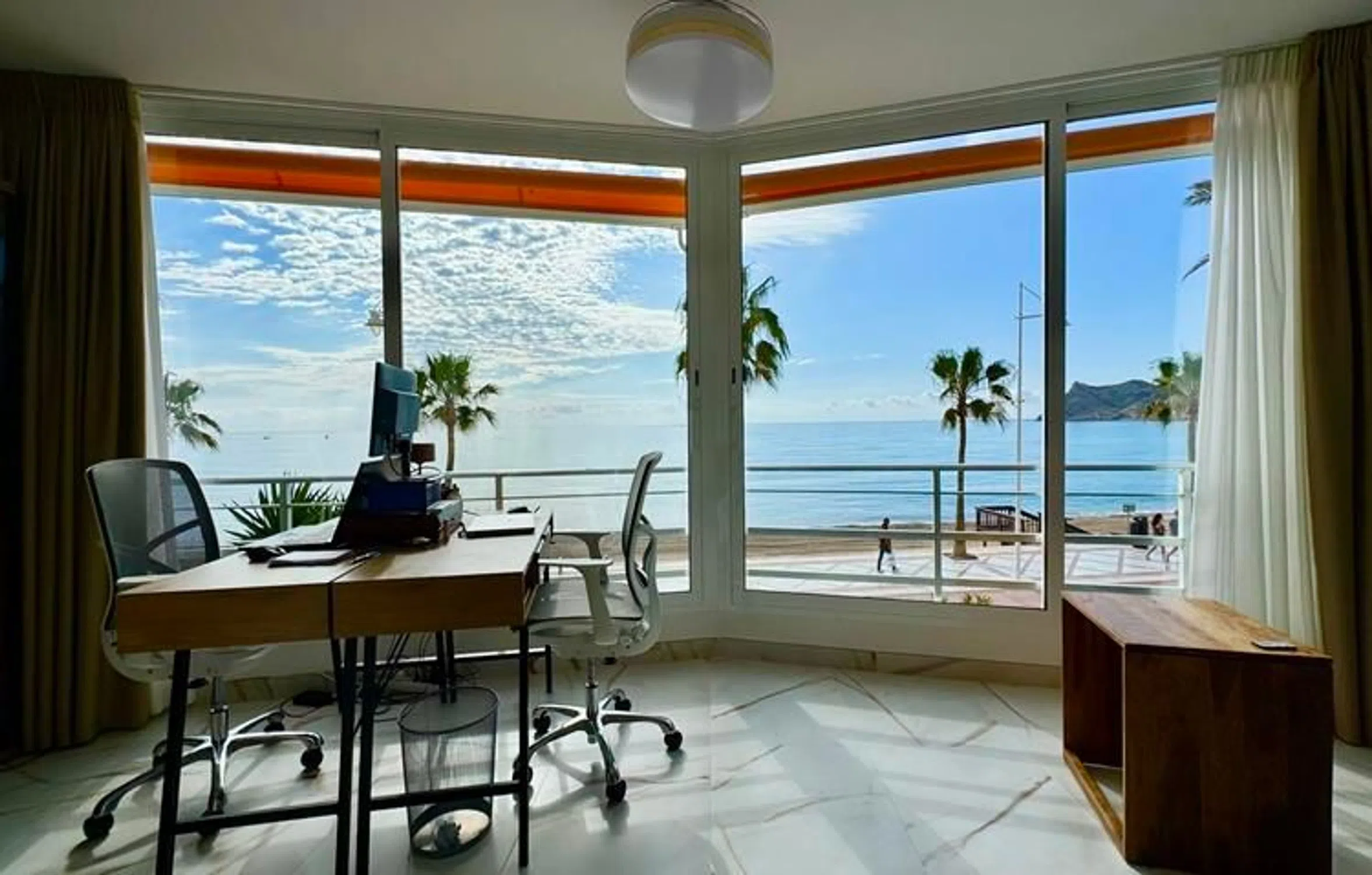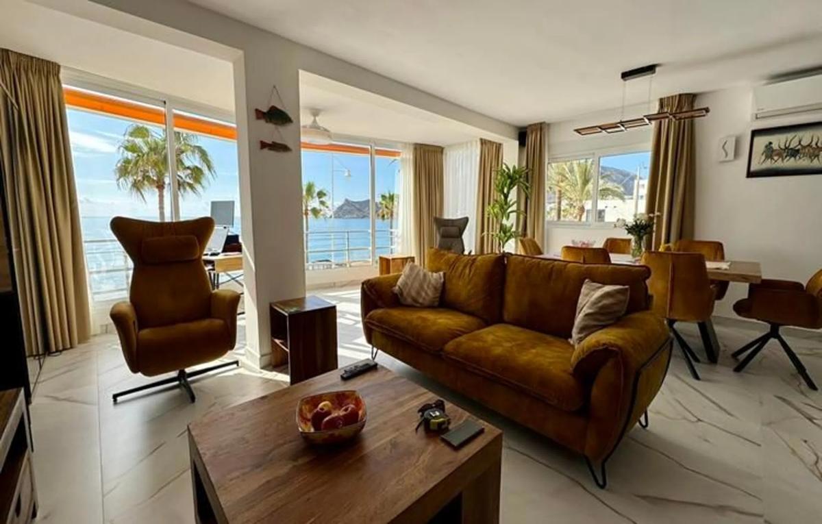 En venta con su agencia inmobiliaria nardia: ¡un apartamento en esquina totalmente reformado con impresionantes vistas al mar! Se trata de un extraordinario apartamento en el codiciado bulevar frente al mar de El Albir, una excelente oportunidad para vivir a pocos pasos del mar Mediterráneo, la playa, los restaurantes y todos los servicios esenciales. Este apartamento en esquina, totalmente reformado en 2025 con materiales de primera calidad, ofrece vistas panorámicas del Mediterráneo desde el amplio salón de 50 m² con cocina abierta. Gracias a su ubicación en esquina, la zona de estar cuenta con mucha luz natural gracias a las ventanas laterales adicionales. El apartamento cuenta con 2 dormitorios dobles y 2 baños con duchas a ras de suelo, todos ellos acabados con los más altos estándares. El corazón de la vivienda es la impresionante cocina abierta con una gran isla central, ideal para recibir invitados o simplemente disfrutar de las vistas mientras cocina. Este apartamento está situado en un complejo residencial muy bien cuidado, con piscina comunitaria y zona de descanso. La venta incluye un trastero privado y hay una plaza de aparcamiento en la zona de aparcamiento comunitario. Tanto si busca una residencia permanente, una lujosa casa de vacaciones o una inversión inteligente, este apartamento cumple todos los requisitos. Y lo más importante: la ubicación es inmejorable y las vistas son aún mejores. ¡No se pierda este fantástico apartamento en primera línea de mar en El Albir! ¡Póngase en contacto con nosotros hoy mismo para concertar una visita privada!
