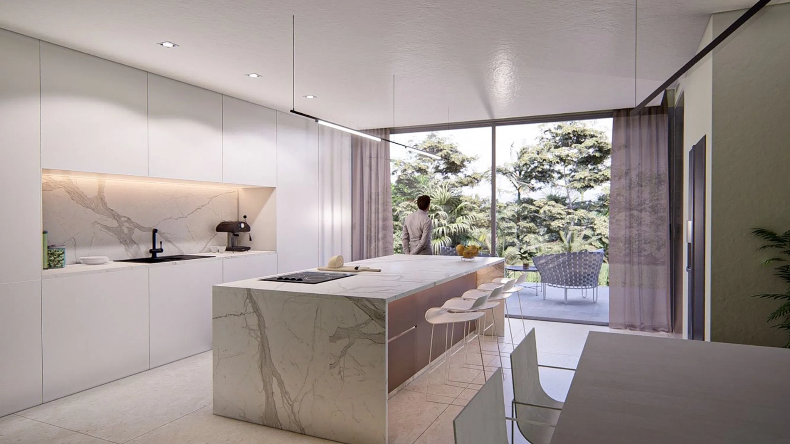 Elegante villa de lujo en nueva construcción con vistas al mar ubicada en la prestigiosa zona de Altea Hills. La villa se distribuye en 3 plantas. La planta sótano tiene garaje y es un espacio totalmente diáfano. En la planta baja encontramos un amplio y luminoso salón comedor junto a la cocina abierta con unas espectaculares vistas a la bahía de Altea. En esta misma planta encontramos un cuarto de lavandería, un aseo de invitados y tres amplios dormitorios con baño en suite en cada uno de ellos y armarios empotrados. En la planta alta se encuentra el dormitorio principal en el que hay un amplio vestidor y baño en suite con jacuzzi. Todas estas estancias cuentan con terraza. En el exterior podemos disfrutar de una magnifica zona chill-out junto a la piscina de estilo moderno y las zonas ajardinadas de la parcela. .