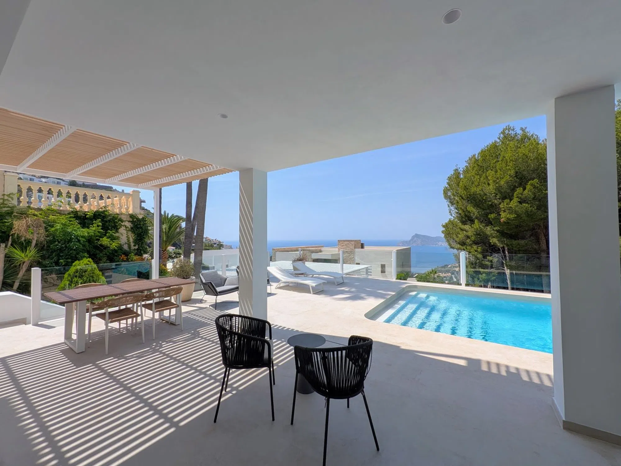 VILLA DE LUJO CON VISTAS AL MAR EN ALTEA HILLS Descubra esta elegante villa moderna en venta en la exclusiva zona residencial de Altea Hills, una de las urbanizaciones privadas más codiciadas de la Costa Blanca. Con seguridad 24 horas y preciosas vistas al mar Mediterráneo, esta propiedad combina comodidad, privacidad y un alto nivel de vida. La villa se distribuye en dos plantas. La planta principal cuenta con un luminoso salón con acceso directo a una soleada terraza y piscina infinita privada, una moderna cocina totalmente equipada y un baño de invitados. En la planta superior se encuentran tres dormitorios, dos de ellos con baño en suite. Todos los dormitorios tienen acceso a una terraza con vistas al mar. Con orientación suroeste, la villa disfruta de excelente luz natural durante todo el día. Además, cuenta con una cocina de verano para comer al aire libre y aparcamiento privado para dos vehículos. La propiedad está convenientemente ubicada cerca de un campo de golf, un club de tenis y un puerto deportivo, ideal para quienes disfrutan de un estilo de vida mediterráneo activo y relajado. Ubicada en la exclusiva zona residencial de Altea Hills, esta villa de nueva construcción ofrece la combinación perfecta de lujo, confort y espectaculares vistas al Mediterráneo. Con orientación suroeste en una parcela de 800 m², la propiedad disfruta de abundante luz natural y vistas al mar impresionantes. Características destacadas: • 3 amplios dormitorios y 3 baños completos, además de un aseo para invitados • Cocina abierta de diseño con electrodomésticos de alta gama • Piscina privada y jardín ajardinado • Garaje privado cerrado • Comodidades modernas como aire acondicionado, calefacción central, armarios empotrados, lavadero y amplia terraza • Seguridad mejorada con puerta reforzada, sistema de intercomunicación y sistema de ventilación adecuado Finalización prevista para 2025, esta villa es ideal para quienes buscan un estilo de vida contemporáneo en un entorno tranquilo y exclusivo, a solo minutos de la playa, campos de golf y servicios locales.