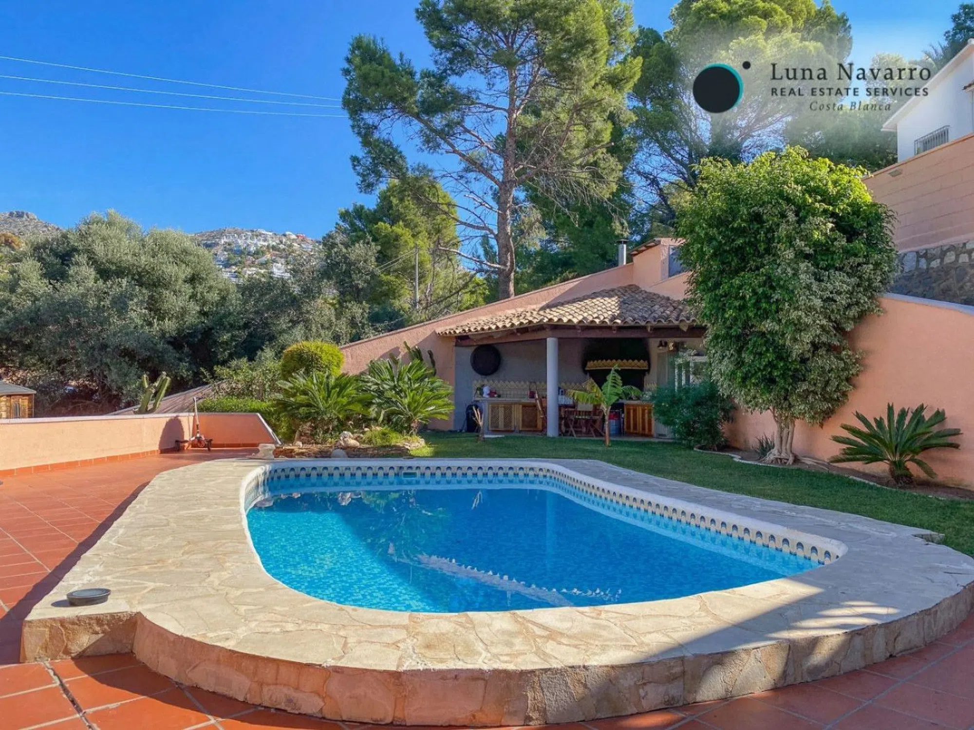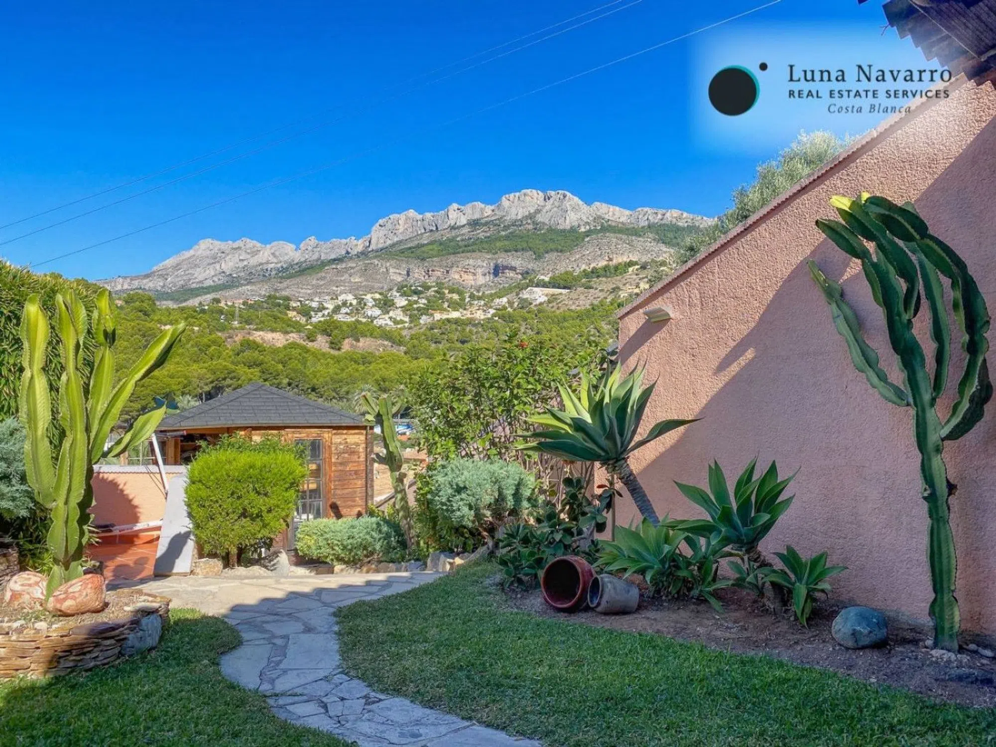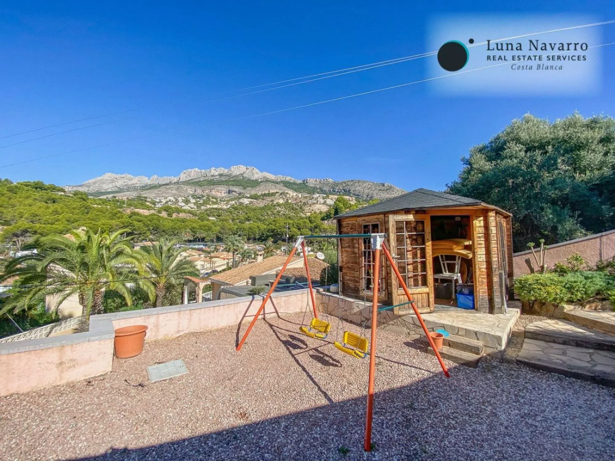 Imagina despertarte con estas vistas, y salir a disfrutar del café en una terraza como la de este chalet, ubicado en una de las urbanizaciones mas exclusivas de Altea, la Galera Baja. Zona tranquila, pero no alejada de todos los servicios y muy cerca de la playa. La vivienda cuenta con 200 m2 construidos repartidos en sus dos plantas aunque abajo también dispone de garaje cerrado donde caben dos coches y una moto. Al entrar nos recibe el amplio salón dividido en dos estancias, una que da al jardín y la piscina y la parte del fondo utilizada como comedor. A la derecha y llena de luz, tenemos la cocina de unos 12 m2 con isla y vistas a la montaña. También hay un dormitorio doble y un baño completo en esta planta. En la primera planta hay tres dormitorios mas y dos baños, uno de ellos ensuite. En esta planta hay otra habitación usada como trastero o lugar de almacenaje. Desde la terraza anexa podemos ver el mar y gozar del espectacular tiempo que tenemos en esta zona. ¿Lo mejor de la casa? El porche y la zona de jardín junto a la piscina. Al fondo tenemos la barbacoa cubierta que es como una cocina exterior ya que cuenta con todo lo necesario para poder utilizarla todo el año Ademas desde allí se puede disfrutar tanto de vistas a la montaña de Altea Hills, con sus famosas luces de noche, como al mar, visible desde sus amplias terrazas y desde el jardín. Al haber pocas viviendas en esta zona ya que es una urbanización de las mas antiguas y estar en un lugar tan privilegiado, esto le confiere un valor añadido a esta propiedad. ¿A quien no le gusta vivir rodeado de naturaleza y al mismo tiempo tener todo a un paso? El pueblo de Altea a 7 minutos y Alicante a tan solo 40 y si quieres ir a la playa, con andar 5 minutos ya tienes un pie en el agua! No lo pienses y visita con nosotras esta encantadora villa! ¡Obtén tu Golden Visa con esta casa!