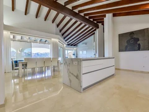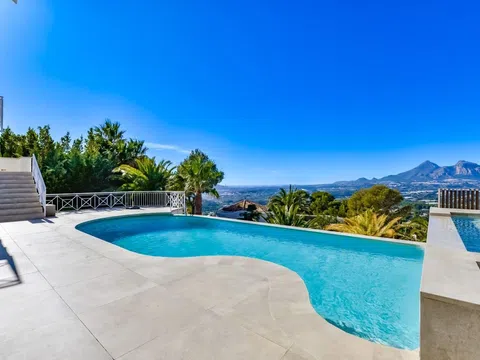 Ubicada en la prestigiosa Sierra de Altea, esta impresionante villa moderna es el epítome de la sofisticación, la exclusividad y el confort inigualable. Una verdadera joya arquitectónica, combina a la perfección el encanto mediterráneo con un diseño contemporáneo, prometiendo un estilo de vida de absoluto lujo. Desde el primer momento en que entras, esta excepcional villa cautiva con su grandeza. Sus amplios espacios bañados de luz natural crean un ambiente de calidez y elegancia. El impresionante salón, con una chimenea de diseño, se abre a vistas fascinantes al mar, mientras que el comedor de concepto abierto y la cocina de alta gama, equipada con electrodomésticos Bosch de primera línea y una elegante encimera de porcelana, ofrecen el entorno perfecto tanto para momentos familiares íntimos como para grandes recepciones. Cada detalle ha sido cuidadosamente seleccionado para garantizar el máximo confort. La suite principal, un oasis de serenidad, cuenta con vistas panorámicas al mar, un lujoso baño en suite con bañera exenta y armarios empotrados a medida. Dos dormitorios adicionales en suite brindan a los huéspedes la misma experiencia refinada, con baños privados y acabados exquisitos. La planta baja está diseñada tanto para el relax como para el entretenimiento. Una segunda sala de estar, con su propia cocina y comedor, es ideal para recibir invitados, mientras que un gimnasio de última generación y amplios espacios de almacenamiento garantizan funcionalidad sin comprometer el estilo. Un garaje cerrado con capacidad para tres vehículos ofrece seguridad y comodidad. En el exterior, te espera un oasis de tranquilidad. La piscina infinita se funde perfectamente con el horizonte, ofreciendo impresionantes vistas al Mediterráneo, mientras que un jardín meticulosamente ajardinado, lleno de árboles maduros y flora vibrante, realza la atmósfera serena de la villa. Un lujoso jacuzzi, un estanque de koi y múltiples terrazas crean el retiro al aire libre definitivo. Sumando aún más exclusividad a esta propiedad, se encuentra una casa de huéspedes de inspiración marroquí, un santuario independiente con un espacio de vida totalmente equipado, aire acondicionado, internet de alta velocidad y un jardín privado con vistas al mar. La parcela independiente en la que se encuentra ofrece una oportunidad única de desarrollo futuro, en caso de que desees construir otra villa de lujo. Esto es mucho más que una casa: es un estilo de vida extraordinario. Ubicada a pocos minutos de las doradas playas de Altea, campos de golf de clase mundial y el encantador centro de la ciudad, esta villa ofrece privacidad y tranquilidad sin renunciar al acceso a las mejores comodidades que ofrece la Costa Blanca. Una oportunidad única para poseer un pedazo de paraíso en uno de los destinos más exclusivos de España. No solo sueñes con el lujo, vívelo. [IW].