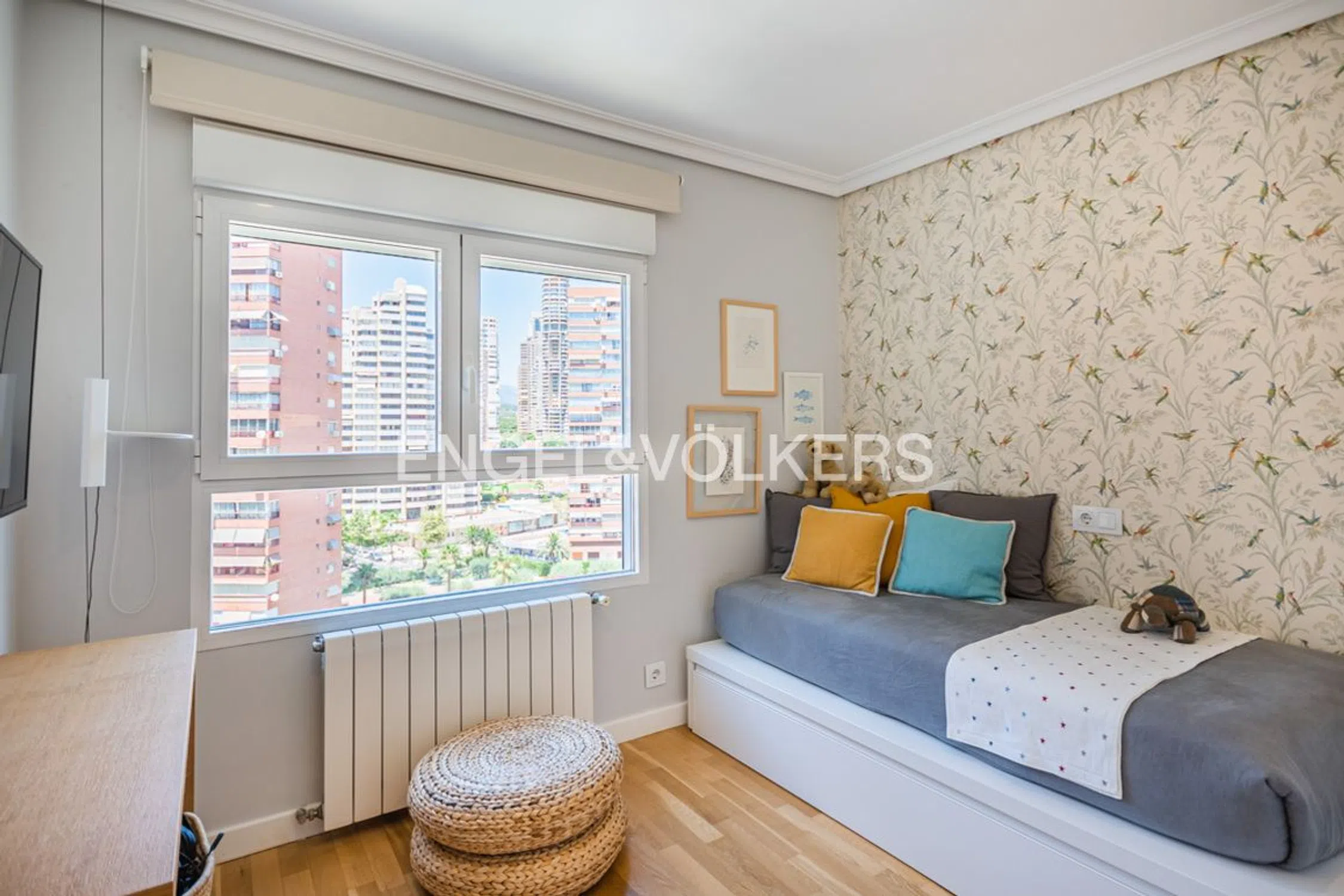 Lujo y diseño en el corazón de Benidorm La propiedad cuenta con una superficie de 162 m2, donde destacan la amplitud y comodidad en cada una de sus estancias gracias a las altas calidades de sus acabados e instalaciones. Se distribuye en un gran salón y comedor con magníficas vistas al mar y a la ciudad, dormitorio principal con vestidor y cuarto de baño en suite, 2 dormitorios dobles, aseo de cortesía, y cocina. Al tratarse una planta onceava en esquina la luminosidad está asegurada en cualquier momento de día. Ubicado a tan sólo 300 m de la playa de Levante de Benidorm y en pleno centro de la ciudad, con todos los servicios alrededor: supermercados, farmacias, tiendas, bancos, restaurantes, pubs, discotecas, etc… El edificio dispone de ascensor y video-vigilancia, tanto en su interior como en exterior, además la parcela está vallada para disfrutar con tranquilidad de todas las zonas comunes: piscina, zonas deportivas y jardines. Destacar la ausencia de locales comerciales en sus bajos así como una plaza de parking subterránea numerada. Una vivienda de alto standing que cubrirá las necesidades del cliente más exigente. Benidorm es la capital por excelencia de la Costa Blanca, foco turístico principal de todo el litoral levantino, donde encontramos también importantes localidades como Alicante, Torrevieja, Elche, Villajoyosa, Altea, o Calpe. Y con fácil conexión por autopista al Aeropuerto Internacional de Elche, desde donde conectamos rápidamente tanto con las grandes capitales nacionales Madrid y Barcelona, como europeas. También por autopista llegamos fácilmente a la capital de la Comunidad Valenciana, Valencia, o a Dénia desde donde podemos embarcarnos rumbo a las maravillosas islas de Ibiza o Mallorca. Benidorm es un lugar enigmático y único, conocido desde el punto de vista urbanístico como el Manhattan español. Ciudad atractiva sobre todo por su microclima gracias a su orientación sur y a la protección que ejercen las montañas que la rodean y que ofrece a sus habitantes inviernos templados y veranos agradables. Su situación privilegiada frente a una bellísima bahía de dos playas de arena dorada con aguas cristalinas y cálidas, y la gran oferta de servicios, ocio, campos de golf cercanos, clubes náuticos, restauración, etc… la convierten en una ciudad paraíso para vivir con comodidad, tranquilidad y diversión. La Zona de Levante es la más concurrida y animada de Benidorm. Es el barrio más extenso de la ciudad y donde se concentra el mayor número de edificaciones de gran altura con privilegiadas vistas al mar. Durante la mayor parte del año suele gozar de un carácter cosmopolita y festivo. Es la zona que nunca duerme, repleto de restaurantes, cafeterías y comercios, y un cuidado paseo marítimo.