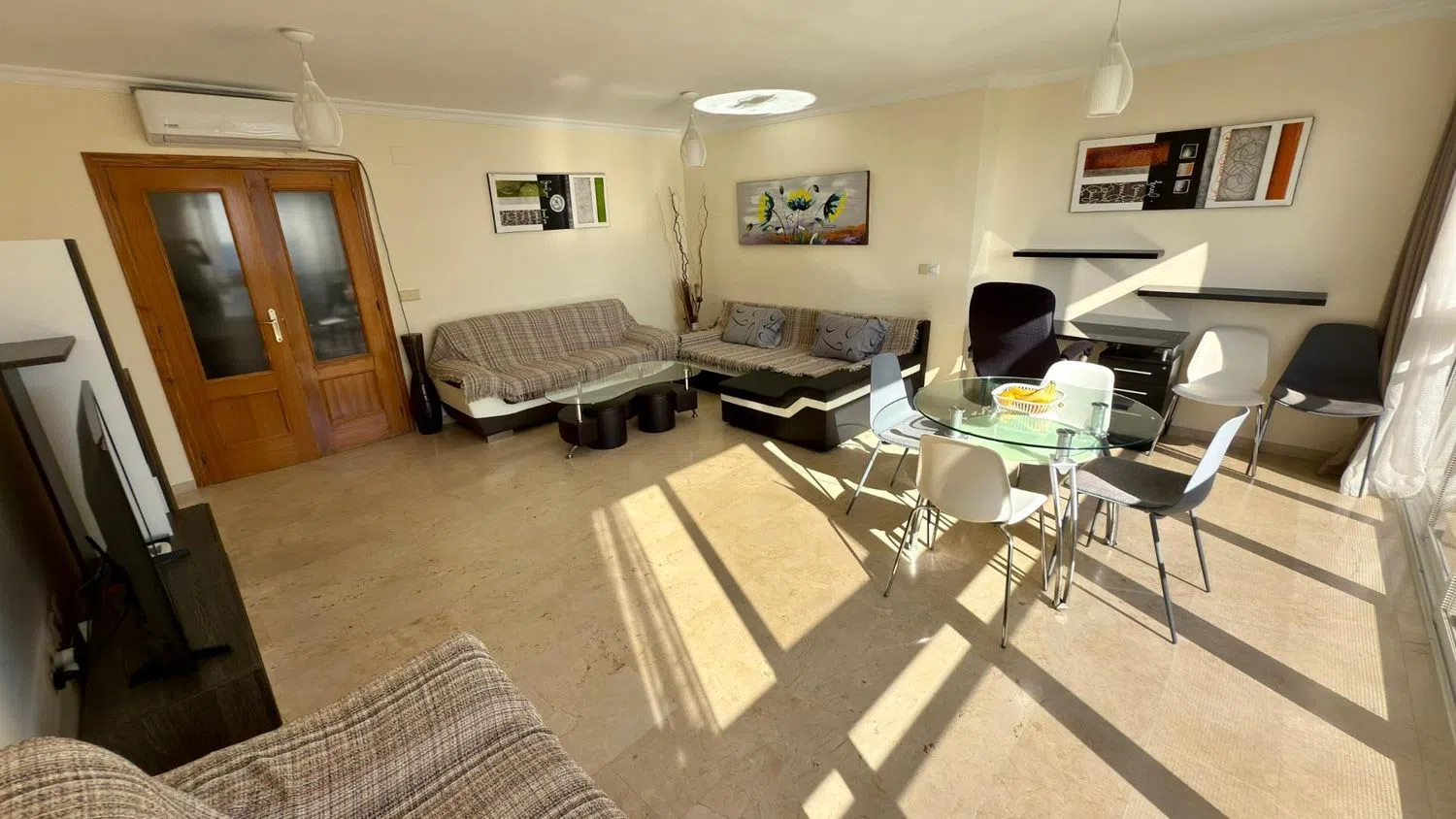 **Duży, jasny salon** z naturalnym światłem.