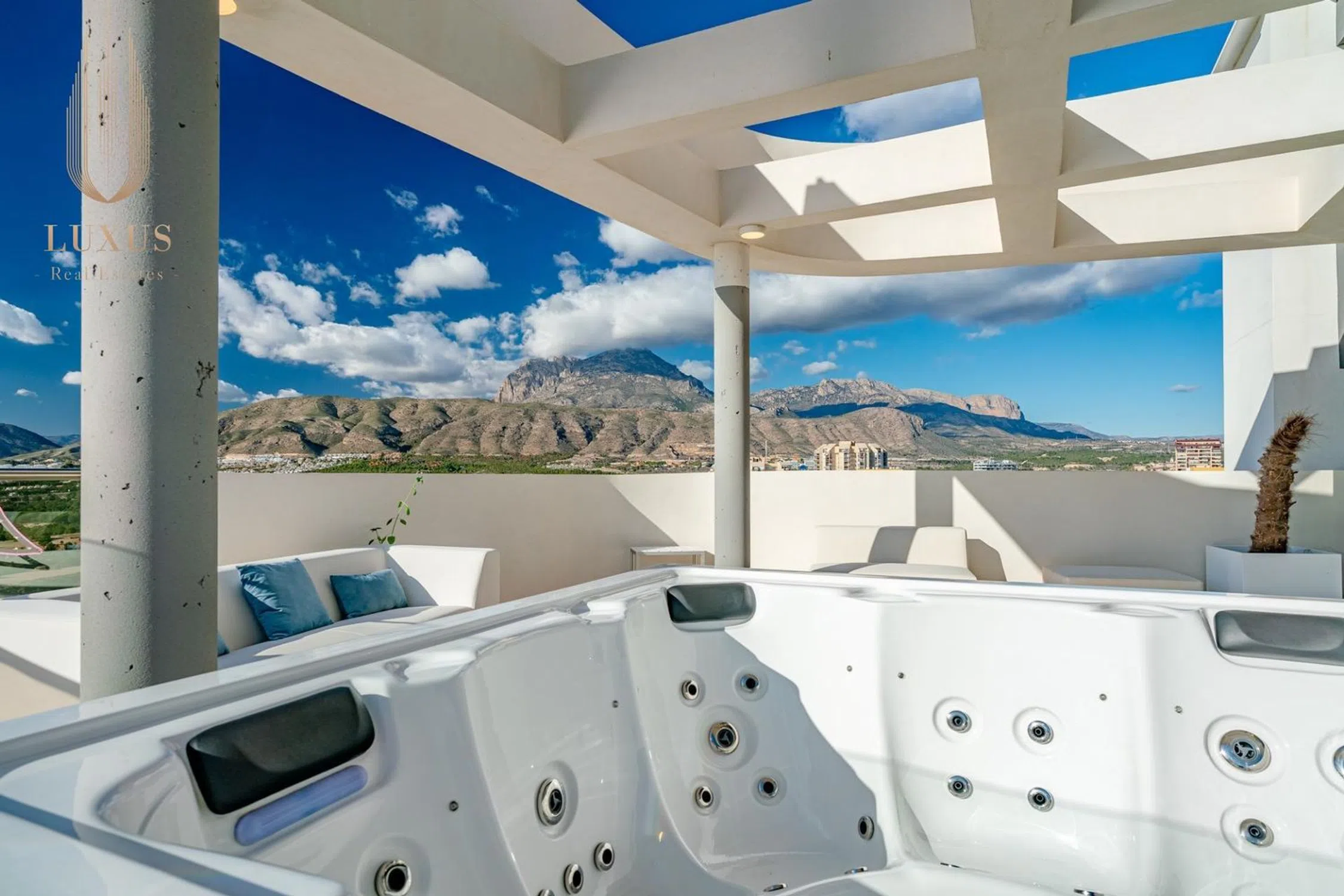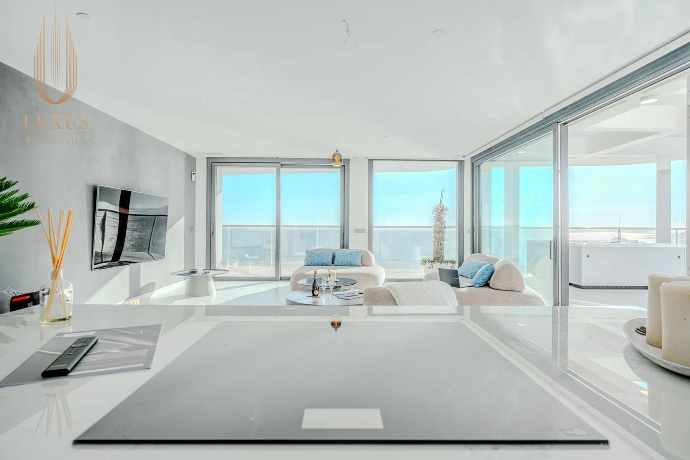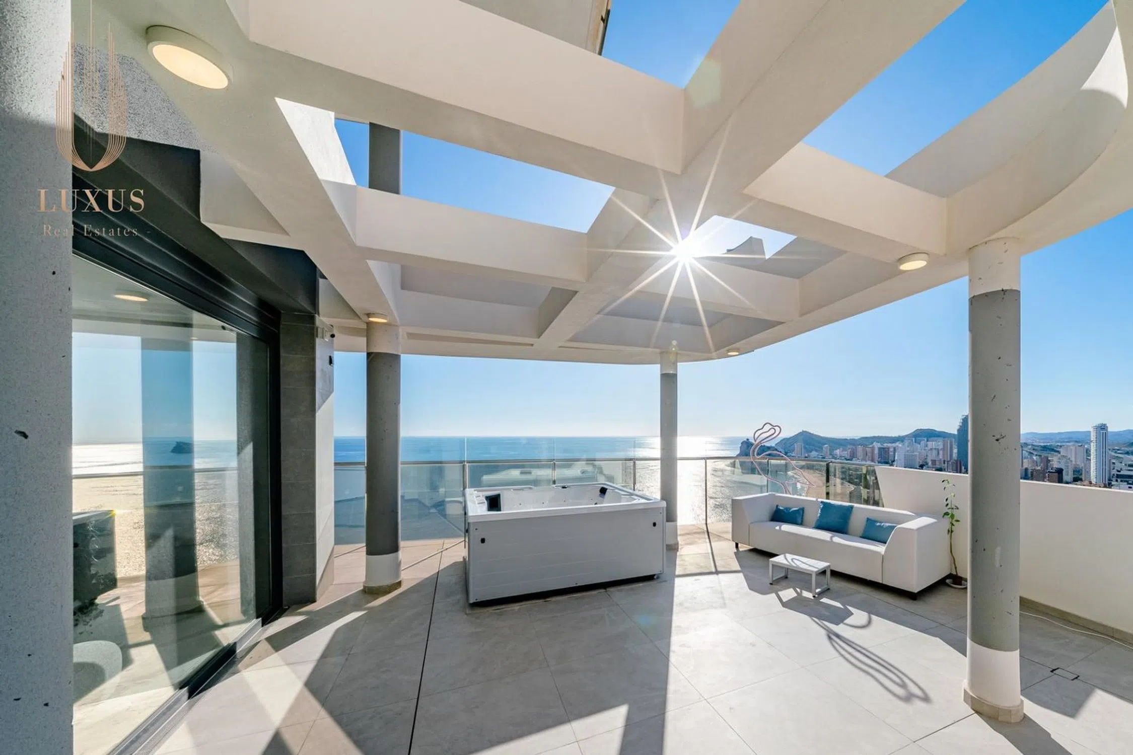 Vistas al mar de ensueño desde cualquier zona de la propiedad, vivienda dotada de amplios ventanales donde el principal protagonista es la luz natural y el azul del mar. Con acabados Premium y mobiliario seleccionado a medida y con mucho gusto, cuidando al milímetro todos los detalles para vivir una vida cómoda y lujosa. Sus 186m2 de vivienda con 82m2 de terraza abierta se distribuyen de manera funcional, esta última dotada de un gran espacio con jacuzzi climatizado para 4 personas con vistas despejadas al mar. Características de la vivienda: - 2 dormitorios - 2 baños - vestidor y armarios empotrados - Salón comedor -Cocina totalmente amueblada y equipada con electrodomésticos de alta gama Samsung - Lavadero - 1 cuarto técnico: trastero junto al apartamento, ideal para almacenamiento. - 1 trastero adicional: ubicado junto a la plaza de aparcamiento en el garaje subterráneo. - 1 plaza de aparcamiento: incluida en el precio del apartamento. (posibilidad de comprar otra plaza de aparcamiento aparte del precio) A tan solo 300m de la arena de la playa se ubica el residencial que completa el skyline de Benidorm, pensado para disfrutar de la vida en el Mediterráneo sin límites. Con un total de 277 viviendas, Sunset Cliffs (año de construcción: 2023) cuenta con más de 12.000m2 de zonas comunes, distribuidas en diferentes alturas, asegurando vistas al mar desde todos los puntos: - Piscina climatizada - piscinas comunitarias - piscina infantil con zonas de juegos - gimnasio panorámico - jacuzzis - zonas chill-out - sala Kid’s Club - sala de videojuegos y diferentes pistas de deporte Ven a Benidorm y descubre tu nuevo hogar, Benidorm es una ciudad reconocida tanto por su diversidad de nacionalidades como también por su oferta en el ocio para todas las edades: parques temáticos (Aqualandia, Terra Mítica Aqua Natura), campos de golf, zonas comerciales con variedad de tiendas, bares, restaurantes, salas de baile, discotecas y pubs para todos los gustos. Además, cabe destacar su gastronomía con jornadas diversas como platos de cuchara, arroces, tapas y pinchos o comida internacional. � Luxus Real Estates: Tel. : Contáctanos para más información o para programar una visita y descubrir tu nuevo hogar.