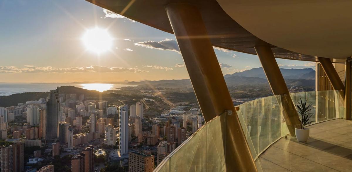 Presentamos una propiedad única y exclusiva en la planta 45 de un rascacielos de lujo en un entorno distinguido de la Playa Poniente. Es el edificio singular y emblemático de 202 metros de altura y 47 plantas, no solo es más alto del mediterráneo si no también es el edificio residencial más alto de Europa. Gran apartamento lleno de luz, de 243 m 2, con 3 dormitorios, 3 baños, salón, comedor, cocina totalmente equipada, amplias terrazas privadas ofrecen las vistas impresionantes y únicas de 360º al mar Mediterráneo, montañas y Sky line. Se trata de un resort de lujo de 6.500m2 con exclusivas zonas comunes y servicios de los que pueden disfrutar sus propietarios entre los cuales destacan la piscina climatizada infinita, gimnasios, zona de bienestar, cafetería en la planta 46, jacuzzis y el sky bar de la planta 47 con impresionantes vistas panorámicas. Dispone también de piscina de verano, jardines, restaurante con 1.200 m2 de terraza, zona infantil de 1.000 m2, espacio de coworking, múltiples zonas de descanso al aire libre. Recepción y seguridad 24/7, seis ascensores de alta velocidad, servicios exclusivos para residentes. El icónico edificio en el que se ubica la propiedad, es ya un emblema de Benidorm y de la costa mediterránea, visible desde todos los puntos, identifica el enorme desarrollo de alta gama que se está llevando a cabo en la Playa de Poniente. Su inmejorable ubicación en una de las mejores playas del Mediterráneo, el estilo de vida de la zona, o la infinidad de servicios disponibles a pocos minutos, restaurantes, campos de golf, parques o beach clubs, son sólo una muestra de todo lo que podrá disfrutar. [IW].