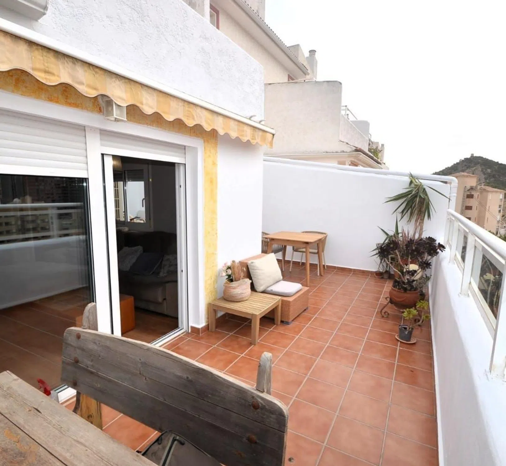 Este impresionante dúplex de 150 m² construidos te ofrece todo lo que necesitas para disfrutar de una vida cómoda y relajada. Con 4 amplios dormitorios y 3 baños, incluyendo 2 completos y 1 aseo, este espacio es perfecto para familias que buscan amplitud y confort. El salón comedor, amplio y luminoso, se convierte en el corazón del hogar, ideal para reuniones familiares o momentos de relax. La joya de este dúplex es su terraza con vistas panorámicas. La cocina independiente está totalmente equipada y a solo unos pasos de las playas. Este dúplex cuenta con aire acondicionado y armarios empotrados. Dispone de zonas comunes, piscina comunitaria con vistas al mar, aparcamiento comunitario y ascensor. No pierda la oportunidad de vivir en este paraíso mediterráneo. (108.9 SOB) [IW].