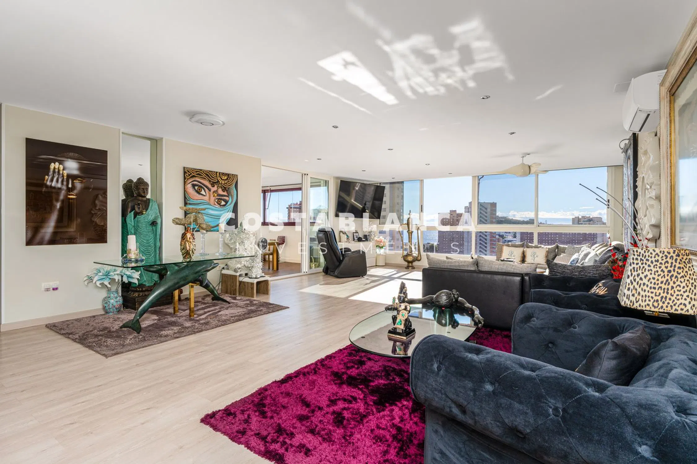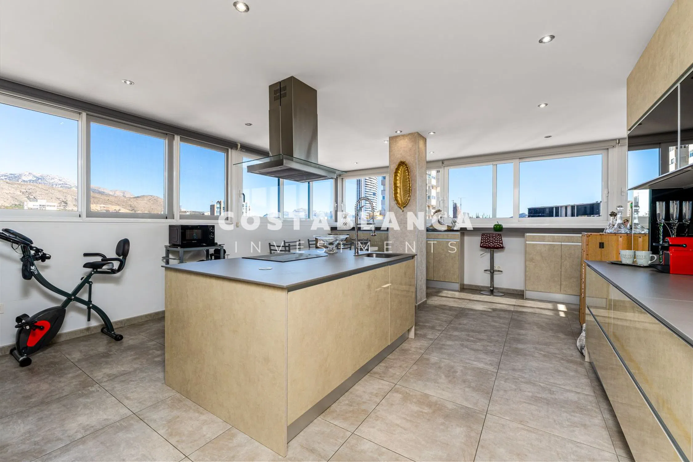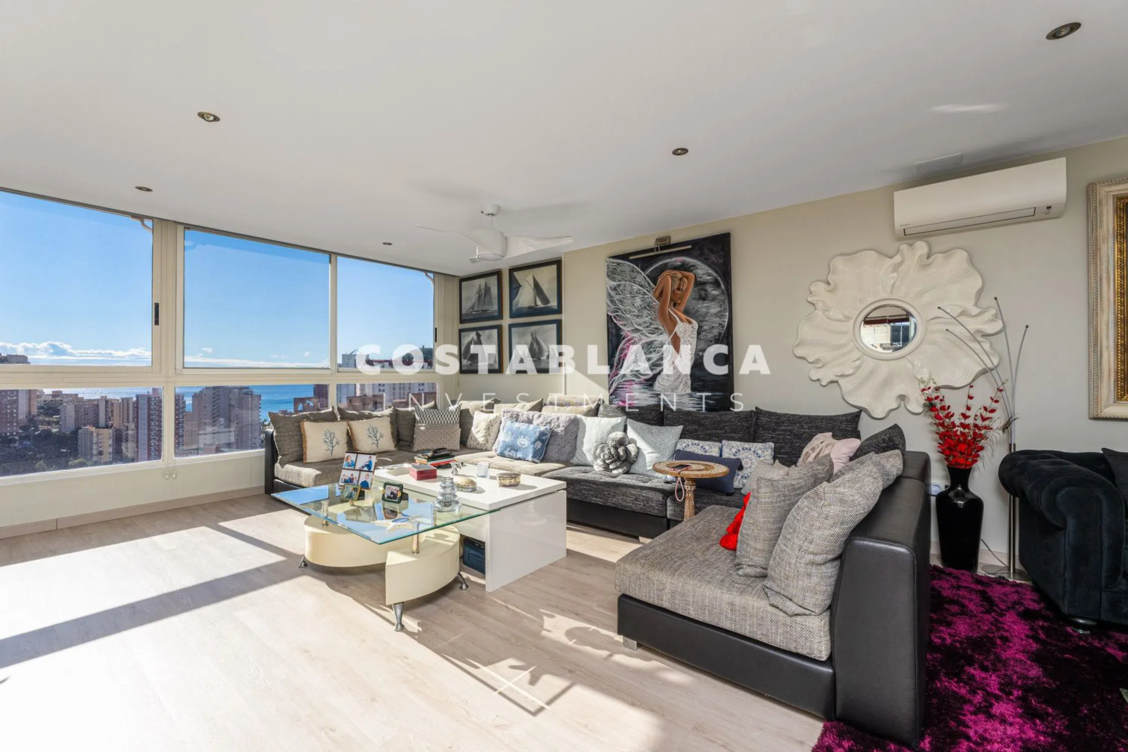 Residencia de Lujo con Vistas Panorámicas al Mar – 17ª Planta, Poniente (Benidorm) Este espectacular apartamento en un rascacielos en la 17ª planta combina diseño, luz natural y el Mediterráneo para crear una experiencia de vida verdaderamente excepcional. Su posición elevada y las ventanas de suelo a techo ofrecen vistas panorámicas de 180º del mar, el horizonte de Benidorm y las montañas circundantes, visibles desde casi cada habitación. La propiedad ofrece 185 m² de espacio interior bellamente distribuido, luminoso, espacioso y completamente exterior. La zona de estar y comedor de concepto abierto se conecta a una terraza acristalada con un sistema Lumon, permitiendo disfrutarla durante todo el año como un salón adicional, rincón de relax o espacio para comer al aire libre. La cocina independiente presenta un diseño contemporáneo con una isla central, un área de comedor y una lavandería separada. Hay tres dormitorios dobles, todos con grandes ventanas y vistas impresionantes, y dos baños completos con luz natural y acabados de alta calidad. Entre las características destacadas se incluyen espacios abiertos, una excelente distribución, ventanas de doble acristalamiento de gran formato, la terraza cerrada con Lumon, y un alto nivel de confort térmico y acústico. La propiedad incluye una plaza de aparcamiento privada con acceso directo en ascensor. El complejo residencial privado ofrece una piscina comunitaria, jardines paisajísticos y servicio de conserjería en el lugar. Su ubicación es ideal, en una tranquila zona residencial a solo cinco minutos a pie de la Playa de Poniente, con todos los servicios esenciales a alcance inmediato: un supermercado Mercadona en la planta baja, farmacia, centro de salud, gimnasio y cafeterías. Un hogar perfecto como residencia principal, segunda vivienda de alta gama o inversión en alquiler premium en una de las áreas más exclusivas y demandadas de Benidorm. Una oportunidad rara en los cielos de Benidorm. Distancias: • Playa: 5 minutos caminando • Aeropuerto de Alicante: aproximadamente 45 minutos • Valencia: aproximadamente 1 hora 30 minutos.