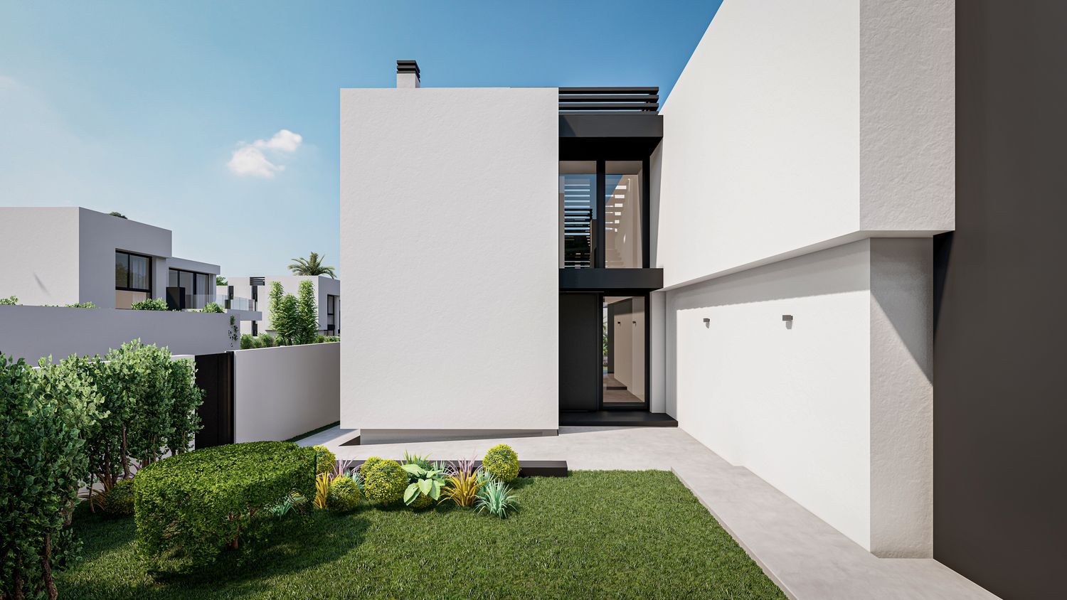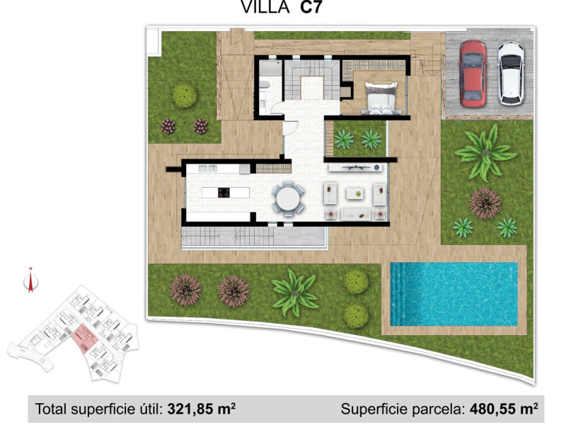 NOA GARDEN residencial, colindante a la Urb. Coblanca en Benidorm, está compuesto por 9 villas independientes, cada una con su jardín, piscina al aire libre y terraza solárium. Se trata de la urbanización más segura de la zona, con seguridad perimetral y vigilante nocturno.Las villas con muy amplias y tienen más de 300 m2 construidos (aprox. 100 m2 por planta). Se distribuyen en dos plantas sobre rasante, el semisótano y, además, la terraza solárium con vistas panorámicas desde Calpe hasta Benidorm.En la planta baja se encuentran 1 dormitorio doble, 1 baño, cocina americana totalmente equipada, la zona del comedor y salón con acceso al porche, al jardín y a la piscina descubierta.En la primera planta se hallan 3 dormitorios dobles y 3 baños (dos de ellos en-suite). El dormitorio principal, además, dispone de terraza descubierta de unos 19 m2.La planta semisótano tiene acceso independiente desde la parcela. Cuenta con jardín interior que proporciona luz natural y ventilación cruzada, así como con el cuarto de lavado y plancha hasta donde desciende el conducto de lavandería. Existe la posibilidad de habilitar en el sótano un apartamento de invitados con 1 dormitorio, 1 baño y salón-comedor con cocina americana.Las villas vienen equipadas con placas solares para el calentamiento de agua sanitaria, aire acondicionado por conductos, sistema de purificación de aire, así como sistema de descalcificación de agua sanitaria. Construidas con materiales de gran eficiencia energética aprovechando al máximo su orientación sur. Cada villa, además, dispone de un enchufe para coche eléctrico.