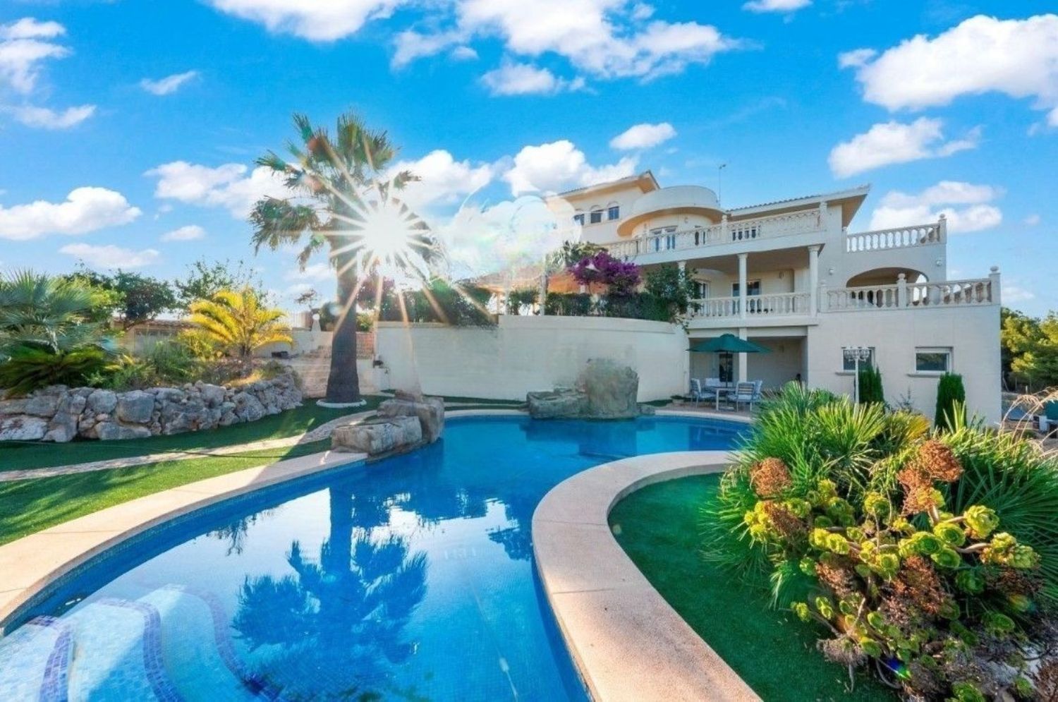 Usytuowanie z południową ekspozycją zapewnia wyjątkowe widoki na Morze Śródziemne, dodatkowo wzbogacone piękną panoramą okolicy. Ta imponująca willa znajduje się na obrzeżach miasta, zaledwie kilka minut samochodem od głównych atrakcji. W bliskim sąsiedztwie znajdują się ekskluzywne pola golfowe, restauracje, plaże oraz luksusowe hotele.