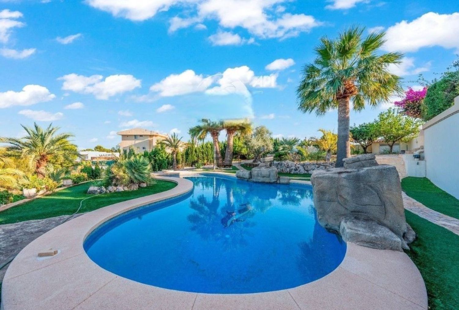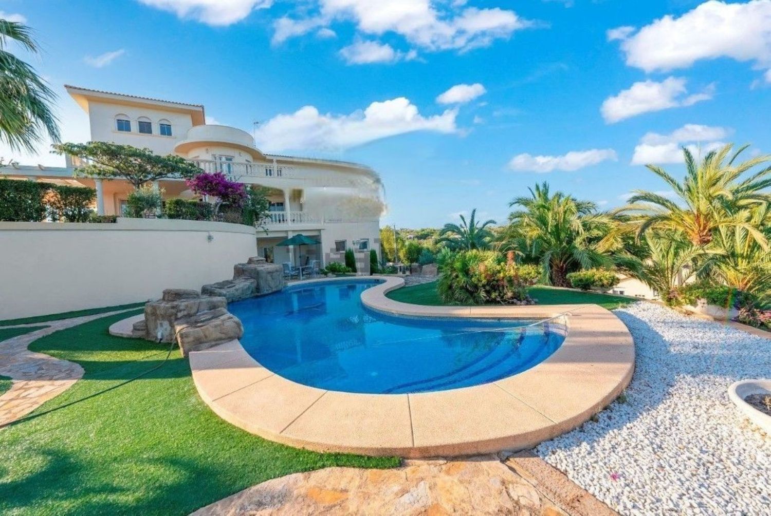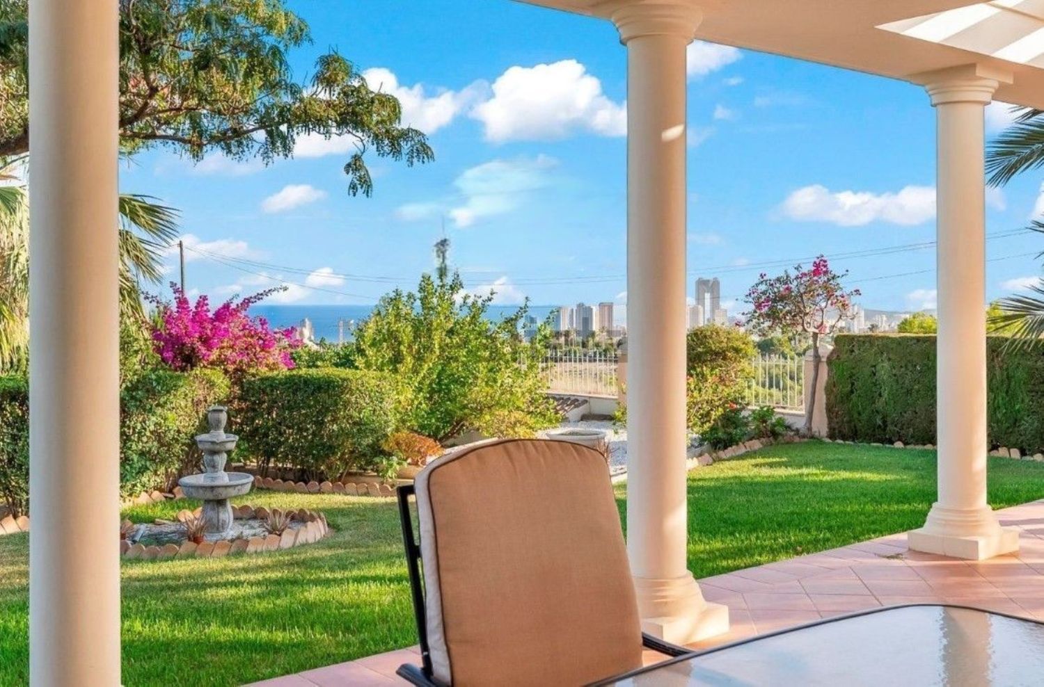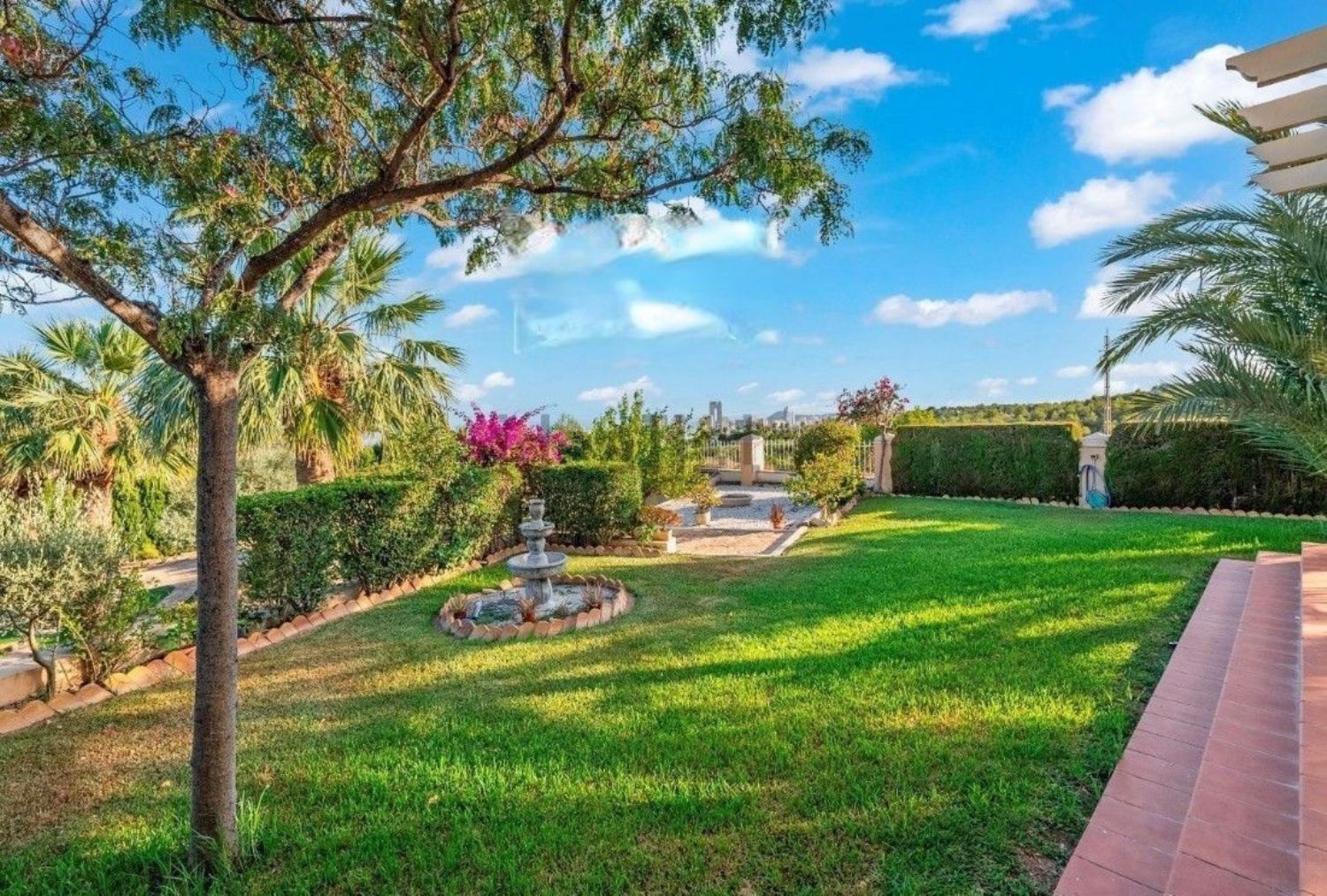 Jej elegancki design architektoniczny otoczony jest pięknym ogrodem, a całość usytuowana w otoczeniu bujnej zieleni. Nieruchomość znajduje się w pobliżu wszystkich niezbędnych usług oraz jest oddalona o zaledwie kilka minut jazdy od tętniącego życiem centrum.