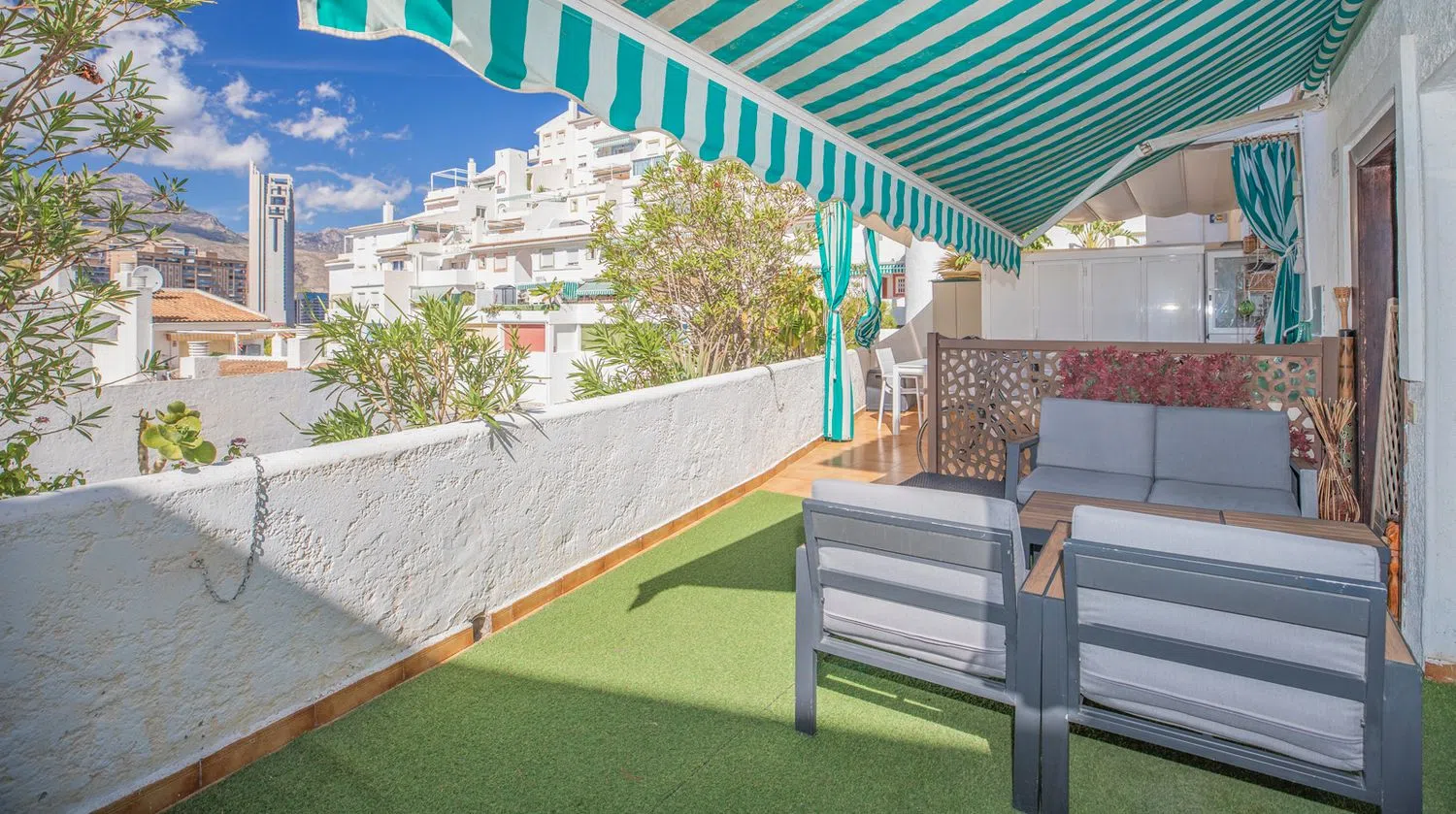 Zarówno Playa de Poniente, jak i plaża La Cala de Finestrat znajdują się w niewielkiej odległości pieszo. Mieszkanie składa się z dwóch sypialni, jednej łazienki i dodatkowego WC, a jego powierzchnia wynosi 100 m². Dúplex oferuje przestronną taras o powierzchni 49 m², jasny i obszerny salon oraz niezależną kuchnię. W kompleksie dostępna jest wspólna basen, idealna do relaksu w słoneczne dni.