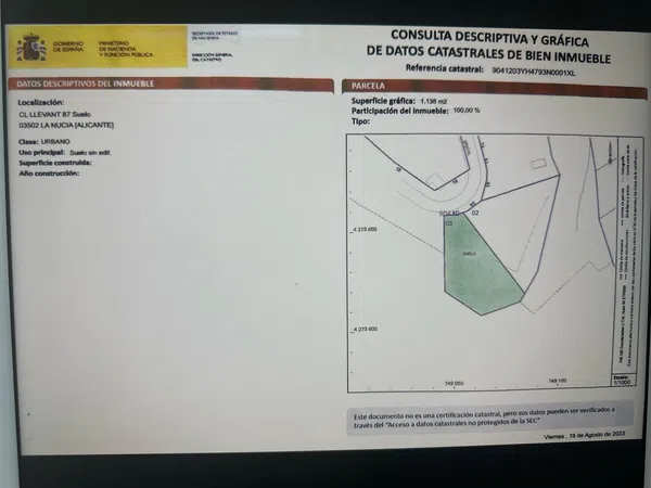 **Exclusividad en La Nucia: Su Oasis Privado con Vista al Mar** Aproveche esta rara oportunidad de adquirir un terreno edificable excepcional de 1.139 m² en La Nucia. Ubicado en el corazón de un entorno natural protegido, este terreno le promete una privacidad absoluta y una vista espectacular al mar. Ninguna construcción futura perturbará la tranquilidad de su futuro refugio. **Puntos destacados: ** - **Superficie Ideal**: 1.139 m², perfecto para construir la villa de lujo de sus sueños. - **Proyecto de Construcción**: Ya está en marcha un proyecto de alto nivel para una casa de 180 m² en dos plantas, con piscina privada. Los permisos están obtenidos, asegurando un inicio rápido y una entrega prevista para junio de 2025. - **Entorno Natural Protegido**: Disfrute de una vista inmejorable de un parque natural protegido, garantizando una serenidad absoluta. - **Ubicación Privilegiada**: Fácil acceso al norte, espacios libres al sur, y un vecindario prestigioso al este y al oeste, en un entorno residencial de lujo. Esta oferta exclusiva le permite no solo adquirir este terreno único, sino también la posibilidad de construir una casa de alto standing completamente personalizable, con entrega llave en mano en junio de 2025. No pierda esta oportunidad única de construir la casa de sus sueños en uno de los entornos más codiciados de La Nucia. **Precio del Terreno: 299 000€** sin incluir el proyecto de construcción de la casa. **Precio de la Casa: En evaluación** Para más información, contáctenos ahora a través de WhatsApp al +33.