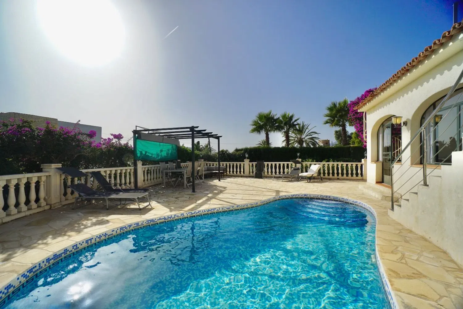Oddzielna, w pełni wyposażona kuchnia oferuje przestrzeń oraz nowoczesny sprzęt dla miłośników gotowania, z łatwym dostępem do strefy jadalnej i wypoczynkowej, co zwiększa komfort i swobodę w użytkowaniu. Zrelaksuj się przy prywatnym basenie, który otacza szeroki taras, gdzie można opalać się i ochłodzić w gorące letnie dni. Do dyspozycji gości jest również praktyczny prysznic na zewnątrz.